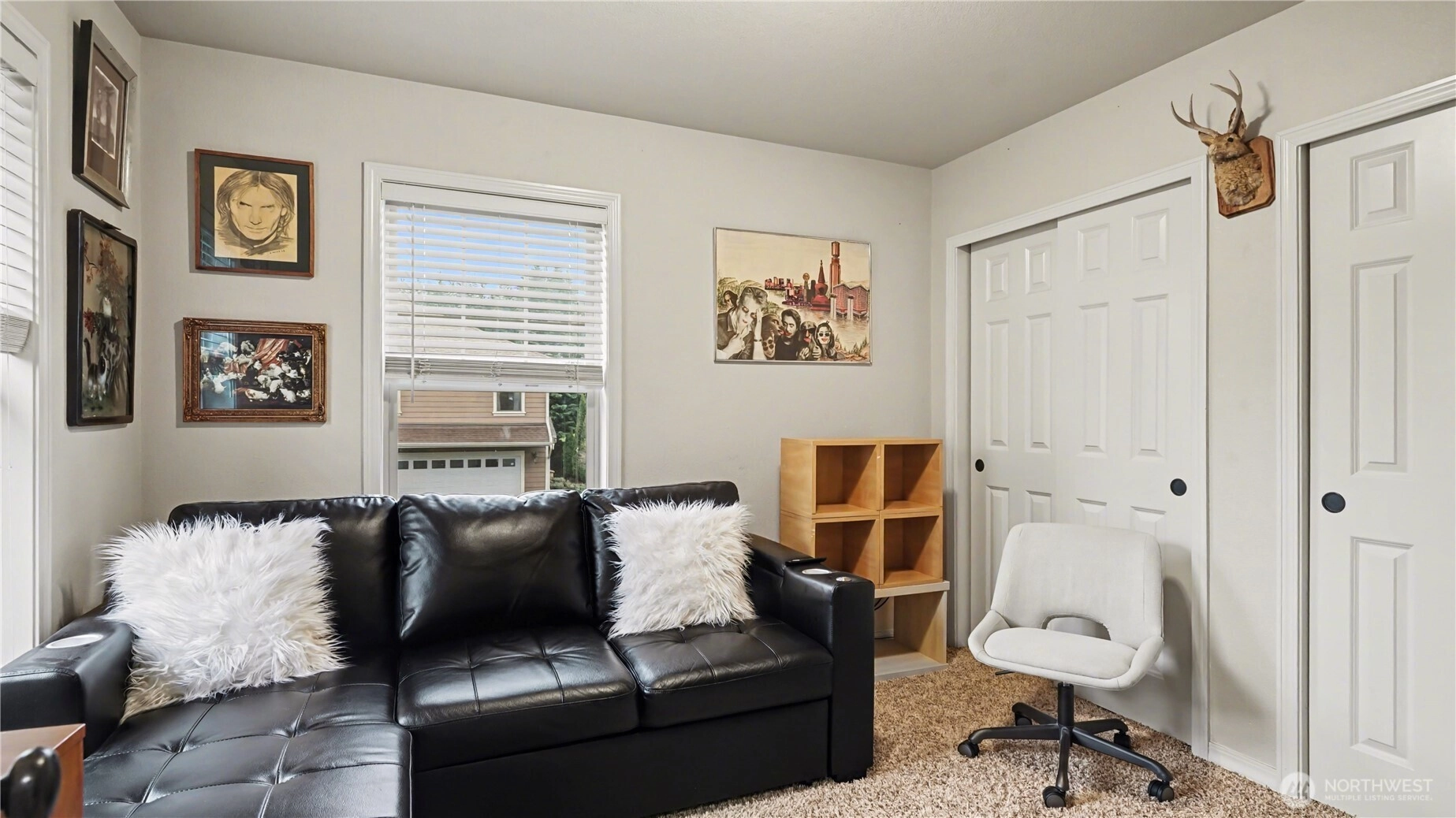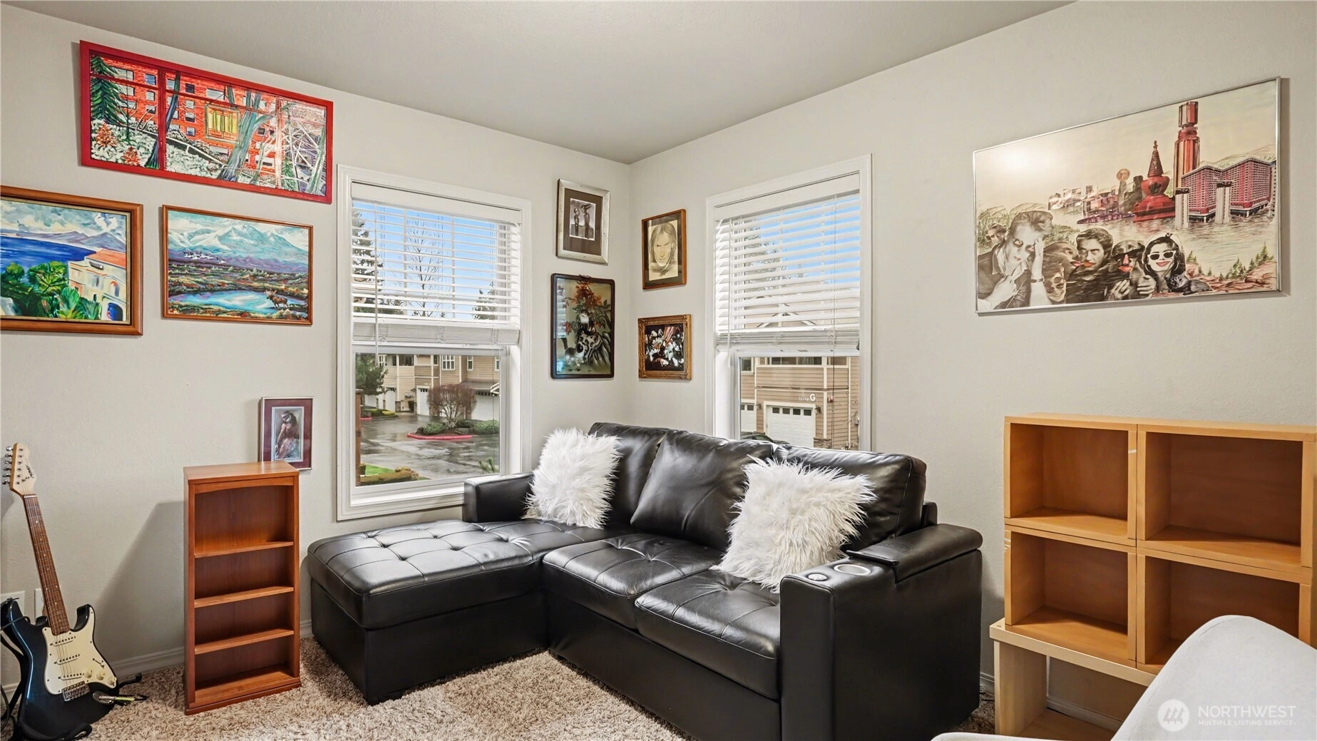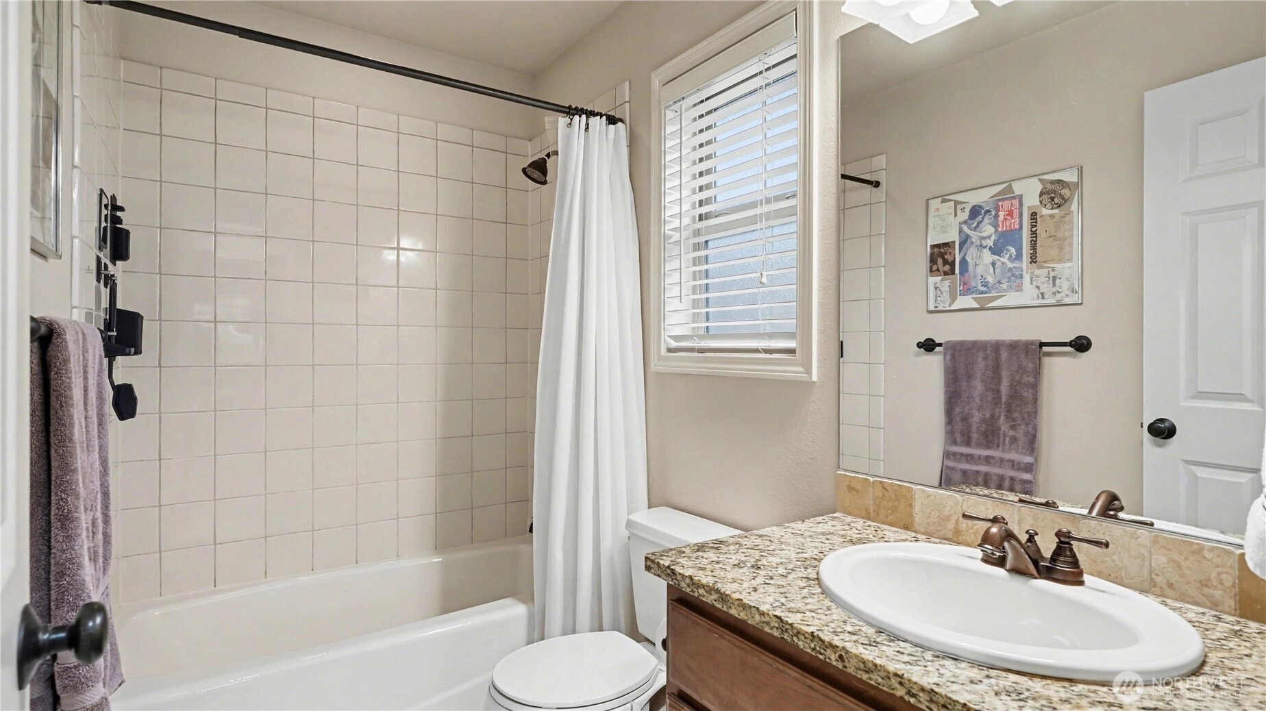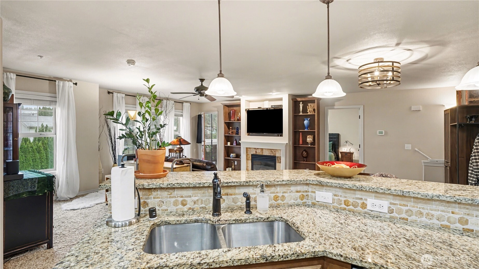 Enjoy comfortable living in this spacious 2-bedroom, 1.75-bath condo filled with natural light from its eastern-facing exposure, offering lovely morning and afternoon sunshine. The open floor plan creates an inviting atmosphere, highlighted by a cozy fireplace in the living room—perfect for relaxing evenings at home. The gorgeous kitchen boasts a breakfast bar, abundant rich cabinetry, granite countertops, and stainless-steel appliances, making it both functional and stylish. The thoughtful layout places the large primary suite on one end of the home and the guest bedroom and bath on the other, providing excellent privacy and separation. The primary suite features a generous walk-in closet, and the covered balcony offers the perfect spot to relax and enjoy the peaceful surroundings. Additional highlights include a private garage and a prime location at the end of a quiet cul-de-sac within the private, gated Trails at Tiburon community. Residents enjoy gated private access to the Green River to Cedar River Trail, while the home’s convenient location offers easy access to nearby shopping and dining and is within the desirable Tahoma School District.
