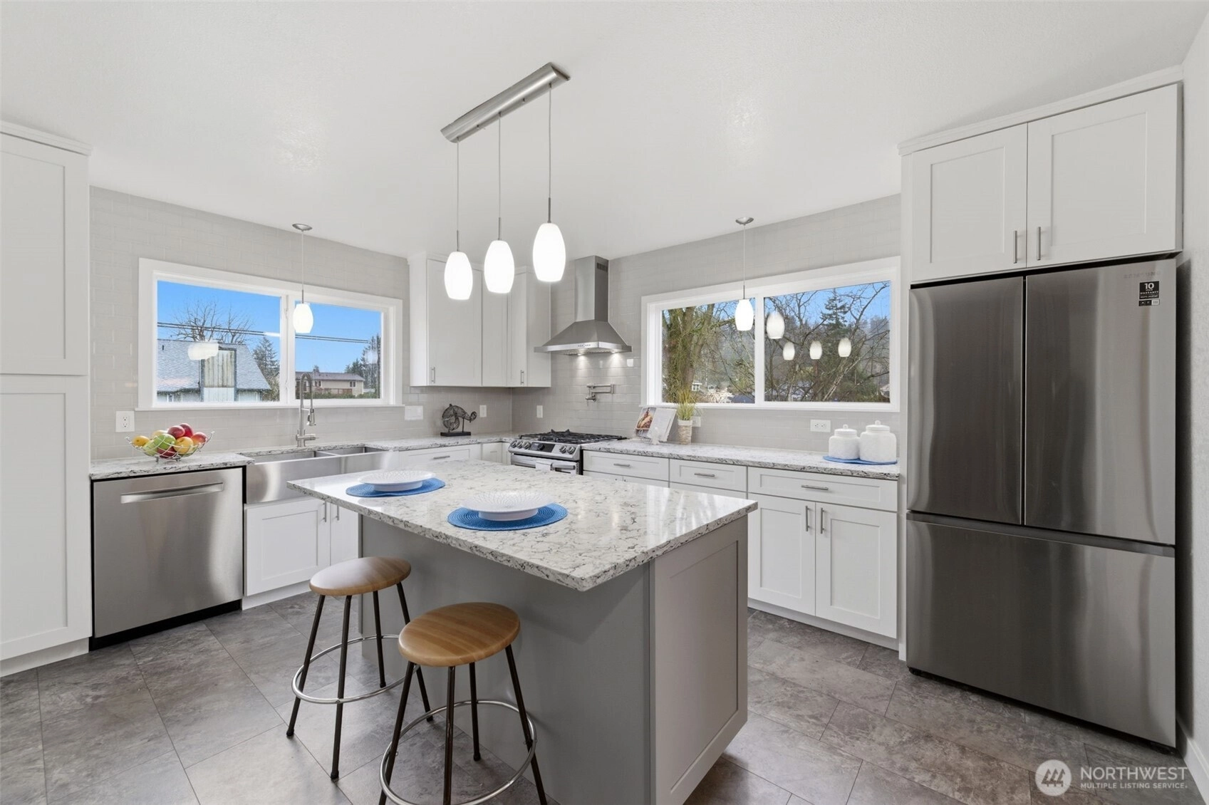 Located in the quiet community of Algona, this beautifully updated mid-Century home sparkles. Situated on a large corner lot, complete with RV parking and hookups, it is a commuter’s dream with easy access to Hwys 167, 18 and I-5. Inside is light and bright with brand new luxury laminate flooring throughout and a completely remodeled kitchen. The gorgeous quartz counters are highlighted by stainless steel appliances and custom lighting. Upstairs the large primary suite flows seamlessly to the gorgeous remodeled ¾ primary bath. Two large additional bedrooms upstairs AND an oversized bonus room that can also be used as a bedroom. The oversized 2-car garage has room for everything as does the custom-built outbuilding. Large deck is perfect for entertaining as it overlooks the peaceful backyard. Complete with a newer high-efficiency furnace, tankless water-heater, central AC, AND a new foundation (transferable warranty included). This home is a must see!