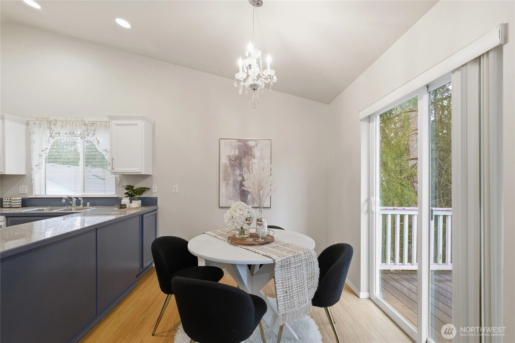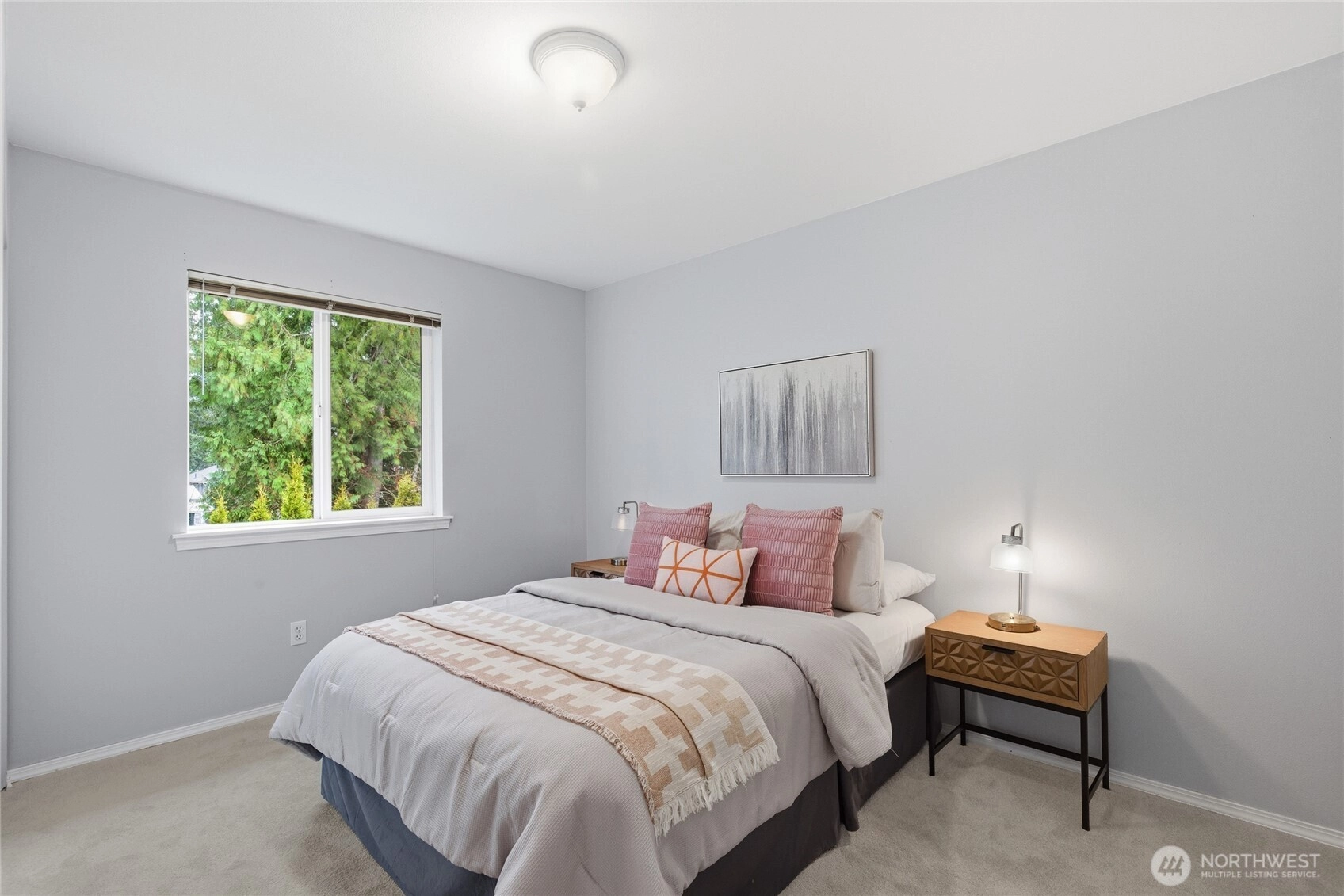 Welcome to the peaceful comfort of this home in a privately gated community of just 18 homes. Situated on a corner lot, the flexible layout offers 2 bedrooms, 1 bath, kitchenette, and bonus space on the main level—ideal for MIL living, guests, or house-hack potential. Upstairs features bright, vaulted living spaces with a spacious kitchen and eating area, open living and dining areas, and a cozy family room with gas fireplace—perfect for everyday living and entertaining. Step onto the private balcony with composite decking to relax and unwind. This level also includes an additional bedroom and a primary suite with a walk-in closet featuring a built-in closet system and a bathroom with new LVP flooring. Recent updates include NEW carpet, NEW furnace with 10-year warranty, 2022 roof with 20-year warranty, and 2020 water heater. Extra finished room off the 2-car garage adds flexibility. HOA covers gate and landscaping. Conveniently located near parks, trails, beaches, Boeing, Paine Field Airport, and easy access to Hwy 99, I-5, and 405. Located in the award-winning Mukilteo School District.