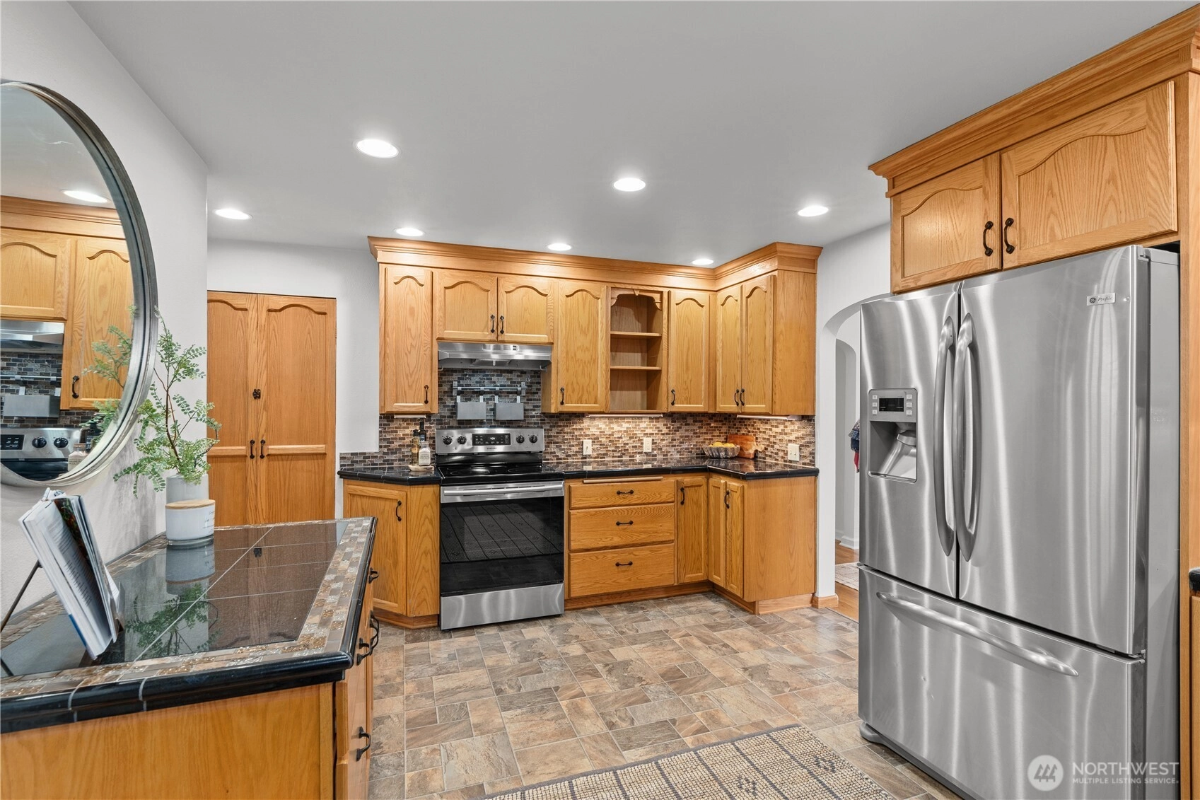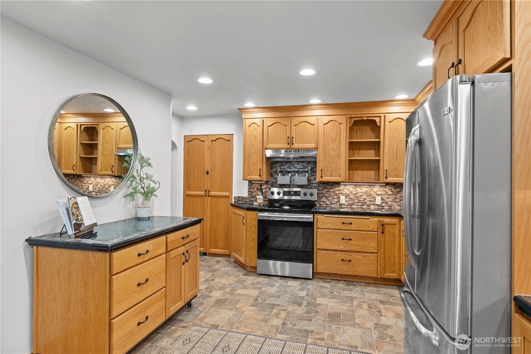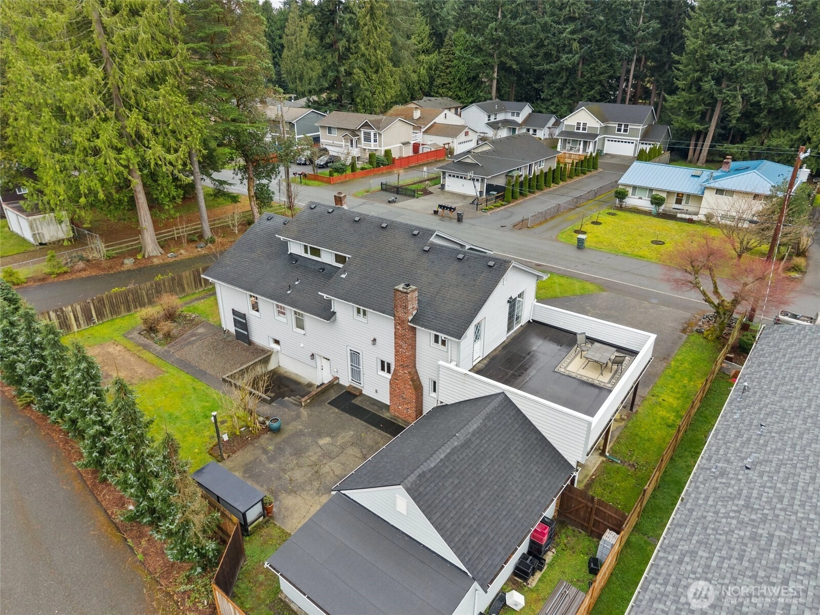 Generational living at its finest in this spacious 6 bedroom 2.5 bath Central Everett home! Offering 3,618 sq ft of flexible living space designed to accommodate multiple lifestyles under one roof. Full of 1940s charm, the main level features a formal living room, dining room & large spacious kitchen with oak cabinets, granite counters, and stainless appliances. 2 beds and a full bath are also located on the main floor. Upstairs, the private primary retreat offers access to a rooftop deck with stunning Mt. Pilchuck views, a perfect spot to enjoy morning coffee or unwind in the evening. The lower level showcases warm wood paneling, a cozy wood burning fireplace, and a large family room ideal for gathering. There is also a fully separate mother in law suite with private entrance that includes its own kitchen, living space, separate laundry, 2 additional beds, and a full bath, making it ideal for extended living or potential rental income. Situated on a large lot with a generous backyard a circular driveway, the property offers excellent parking with a detached two car garage with storage above + 2 covered carports. Recent updates include brand new hot water tank and new furnace. Located on a quiet dead end street with easy access to I-5 and just minutes to Boeing, this commuter friendly home offers space, versatility, and classic Everett charm. A must see opportunity!