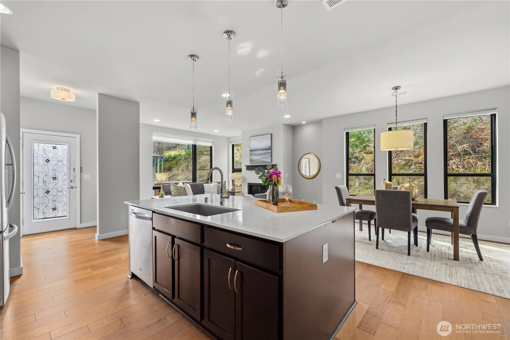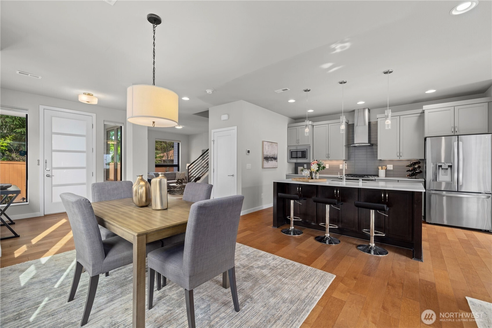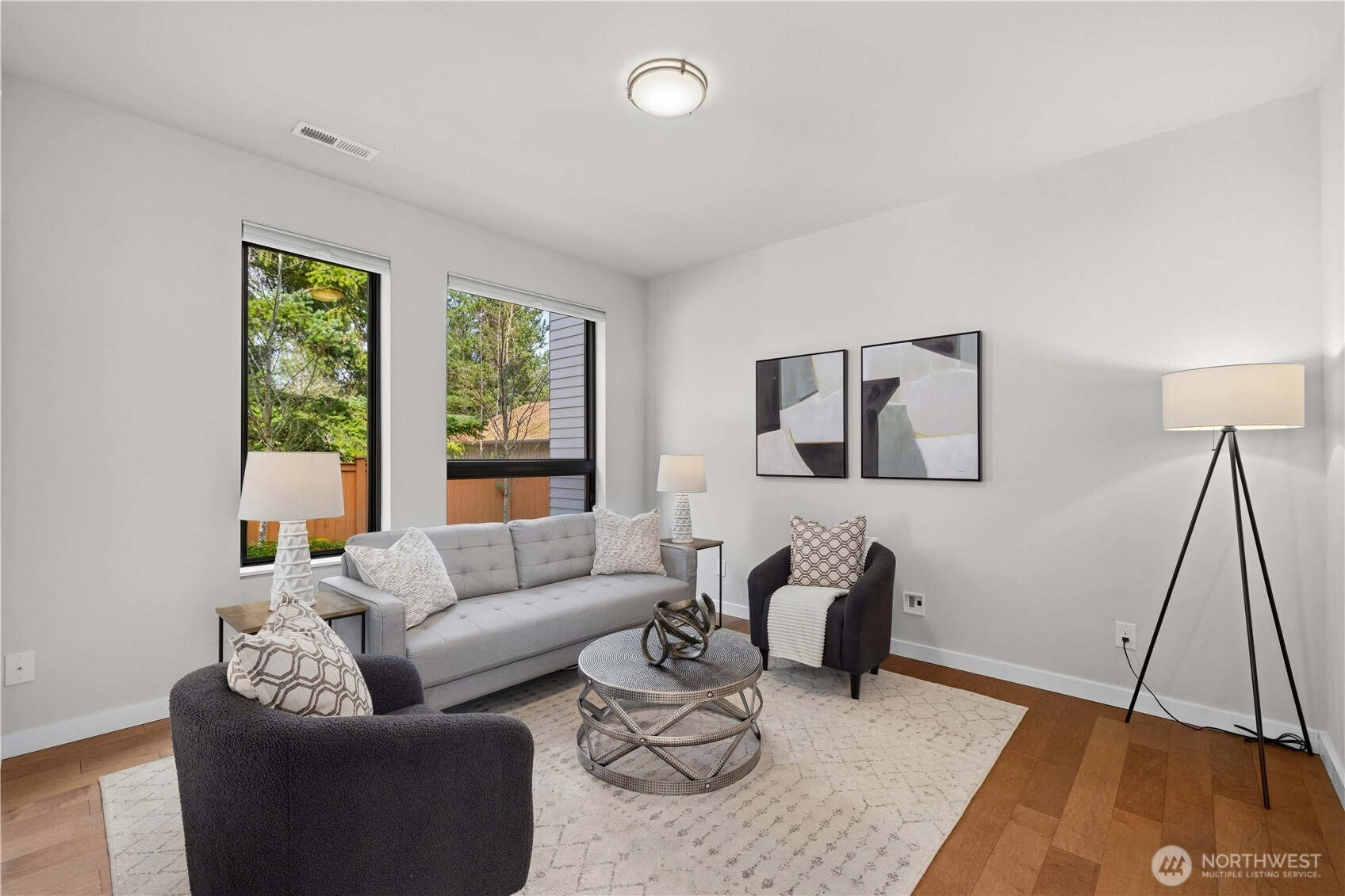 Fantastic townhome in the desirable Lakehouse community centrally located in the heart of Newcastle. Lives large like a single family home. Experience urban conveniences in a suburban area with this townhome that is steps away from the Newcastle Library, shops, grocery stores, restaurants, and scenic Lake Boren Park. Move in ready and offers the perfect blend of convenience and tranquility. Thoughtfully maintained featuring an open-concept floor plan with modern finishes, tall ceilings, engineered hardwood floors both upstairs and the main level, quartz countertops, stainless steel appliances, full-size side-by-side washer and dryer, plush carpeting, tankless water heater, and air conditioning for year-round comfort. Enjoy the privacy of a desirable end unit plus a spacious detached two-car garage separated by your own private backyard ideal for gardening and bbq'ing. Well-run HOA, and zoned to award winning Issaquah Schools. A rare resale opportunity to own a townhome in this community.