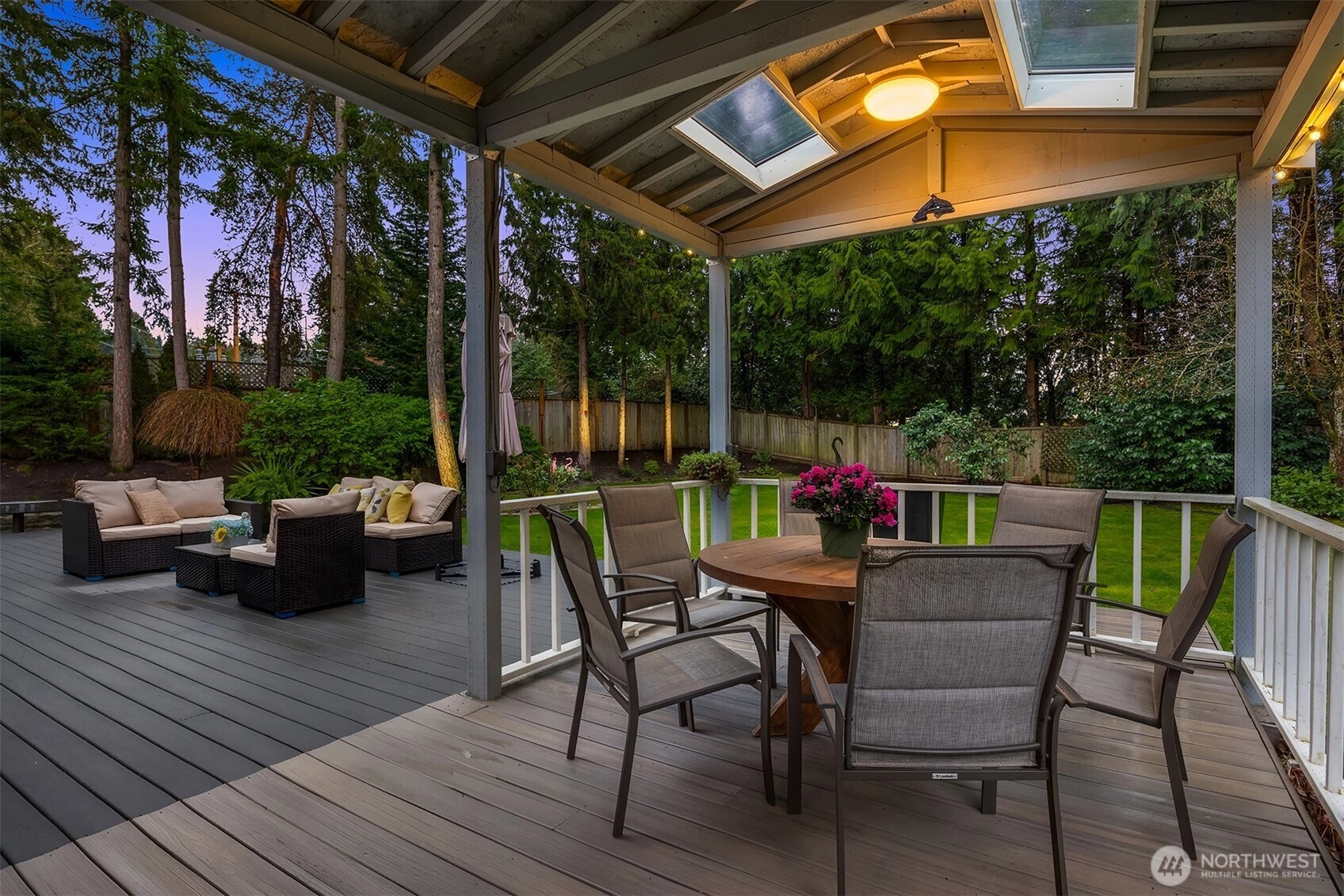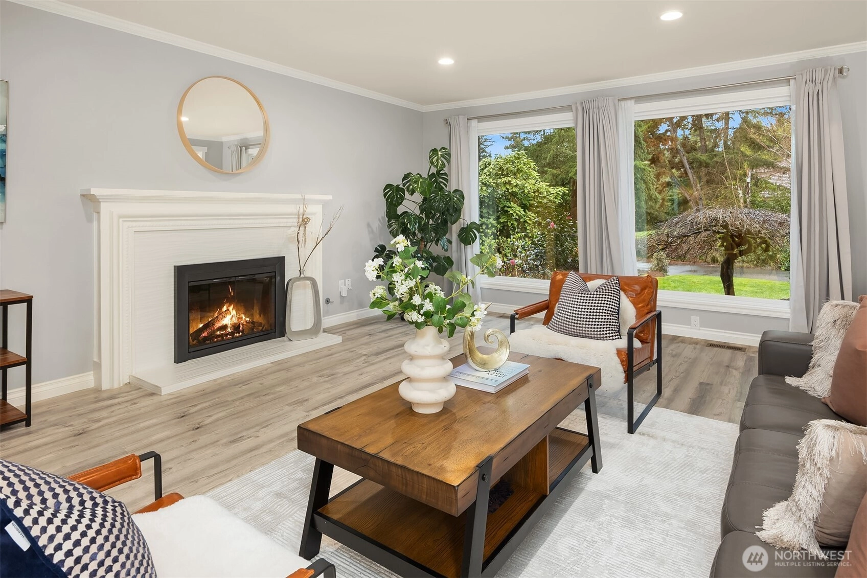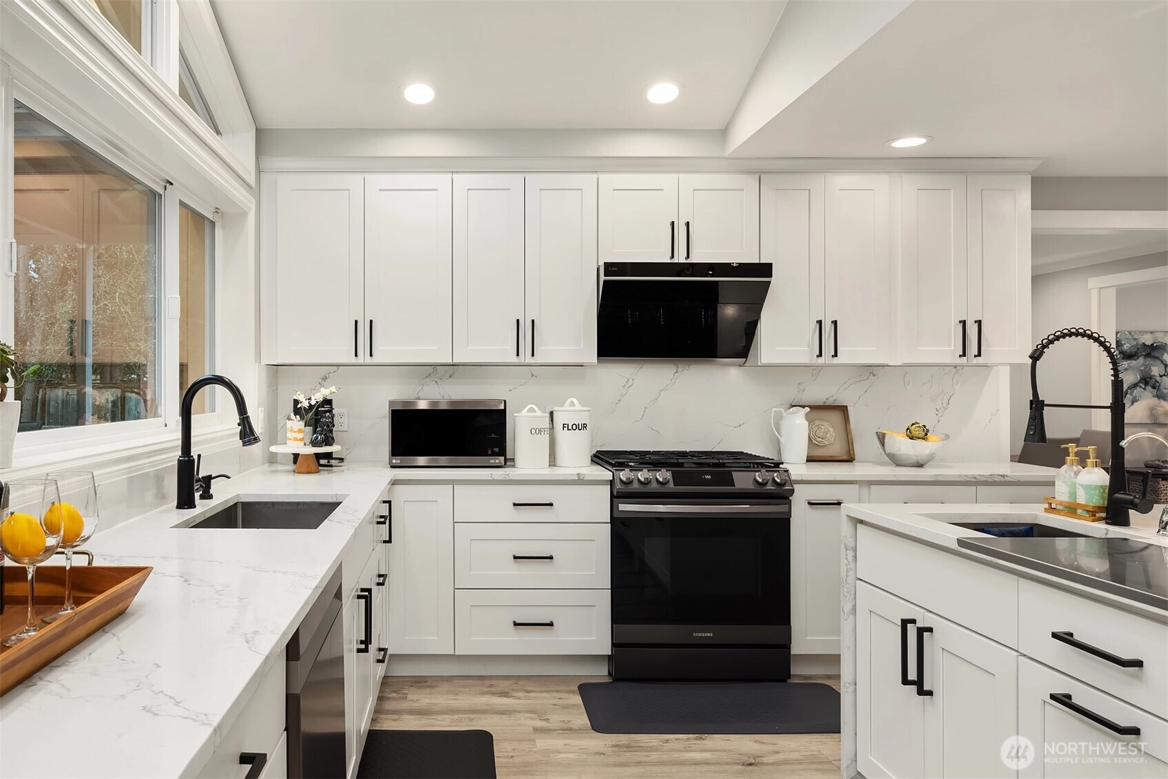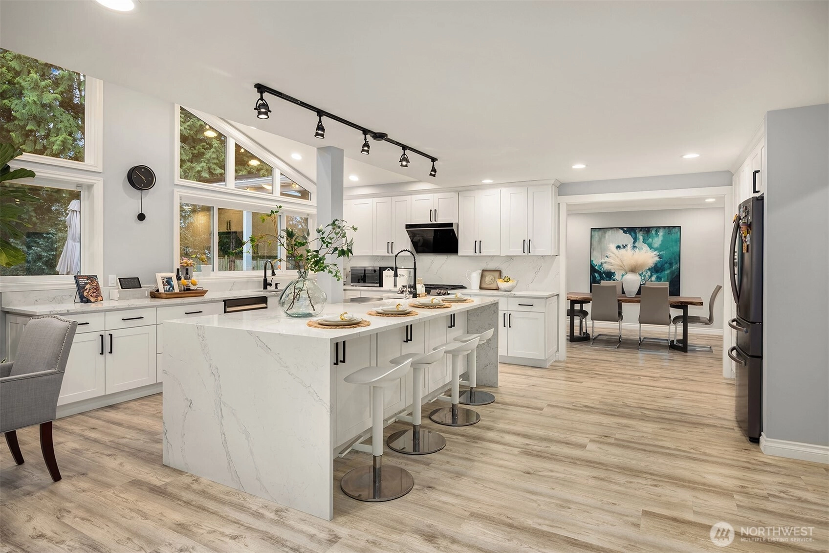 Welcome to this beautifully renovated 4-bedroom, 3-bath home in the heart of Medina, where location and lifestyle come together. Just minutes from Medina Park, Overlake Golf & Country Club, Bellevue shopping and dining, and the 520 commute, this home offers unbeatable convenience. Thoughtfully updated with newer flooring throughout, the home features a bright and open layout. The kitchen and family room boast vaulted ceilings, skylights, and an airy open-concept design, creating a welcoming space filled with natural light. The gourmet kitchen showcases premium cabinetry, quartz countertops, stainless steel appliances, and a large island that provides abundant prep space and storage. A main-level office or flex room adds versatility for work or hobbies. Upstairs offers four generously sized bedrooms with great privacy and natural light, plus a bonus room perfect for a gym or media room. Two bedrooms with ensuits, and the luxuriously renovated primary bath features floor-to-ceiling tile and a spa-like feel. Enjoy the expansive, level backyard with mature landscaping and a new entertainment deck—perfect for relaxing or hosting. Top rated Bellevue schools. Exceptional value in Medina.