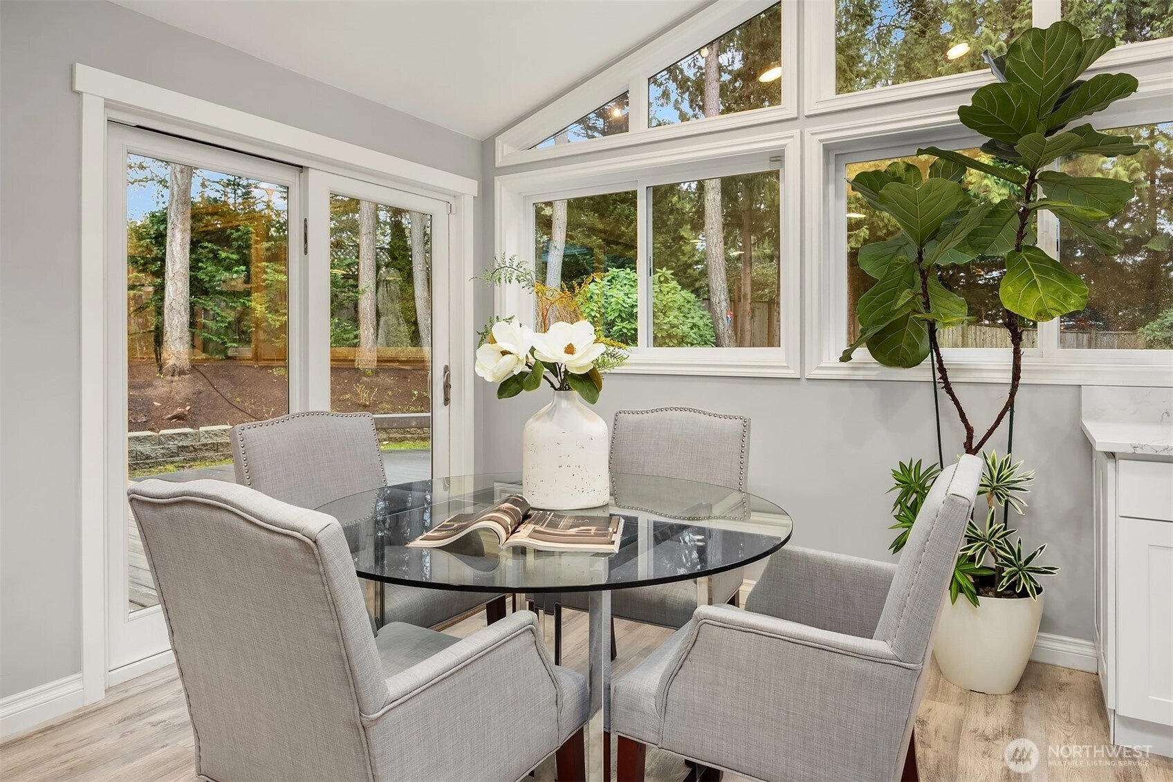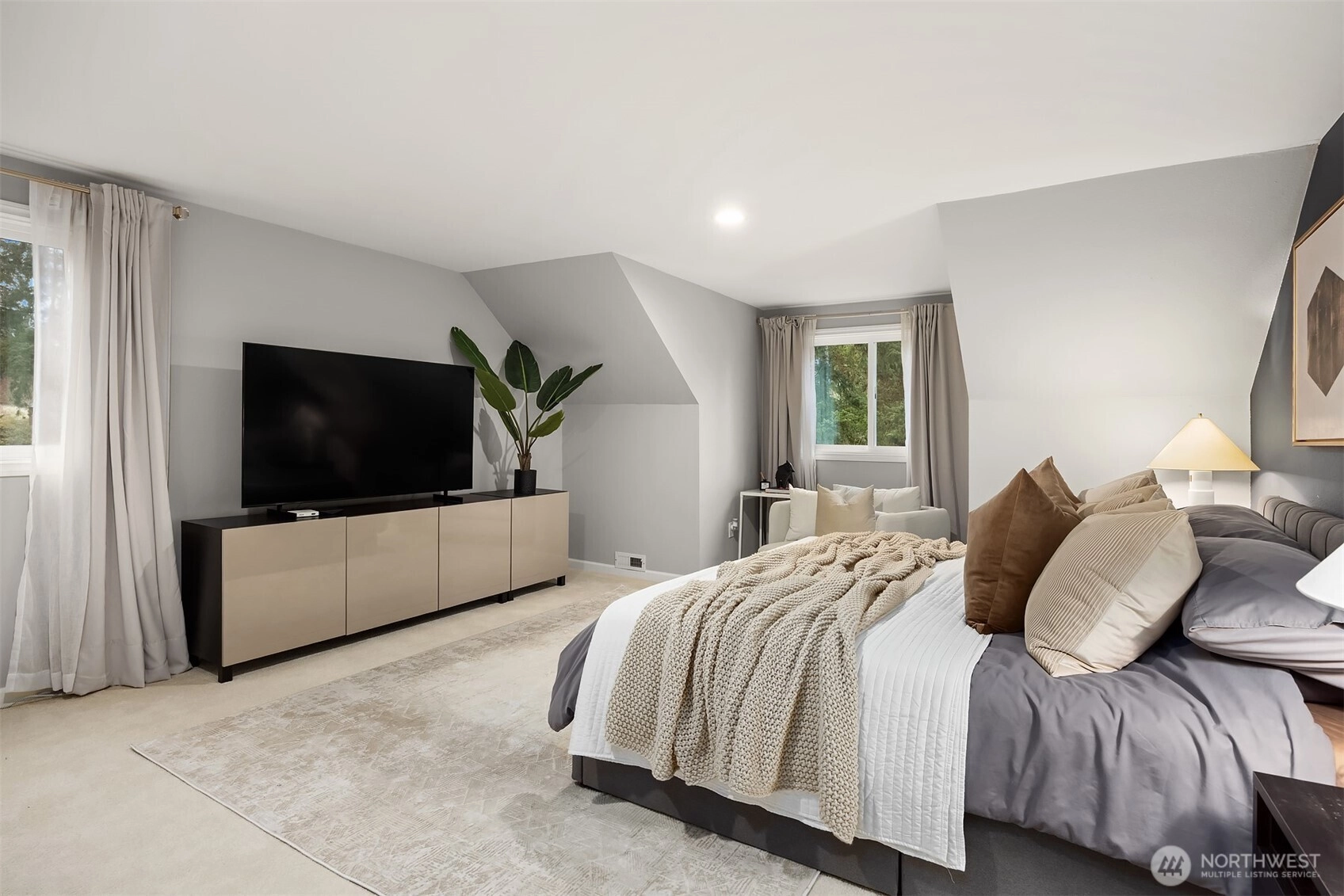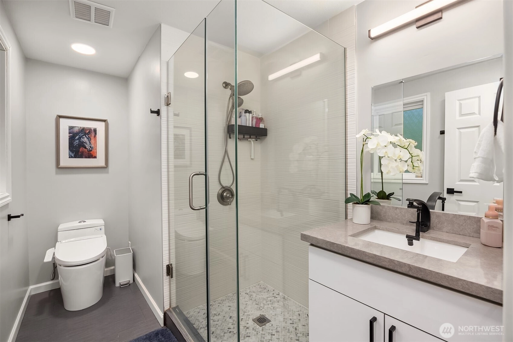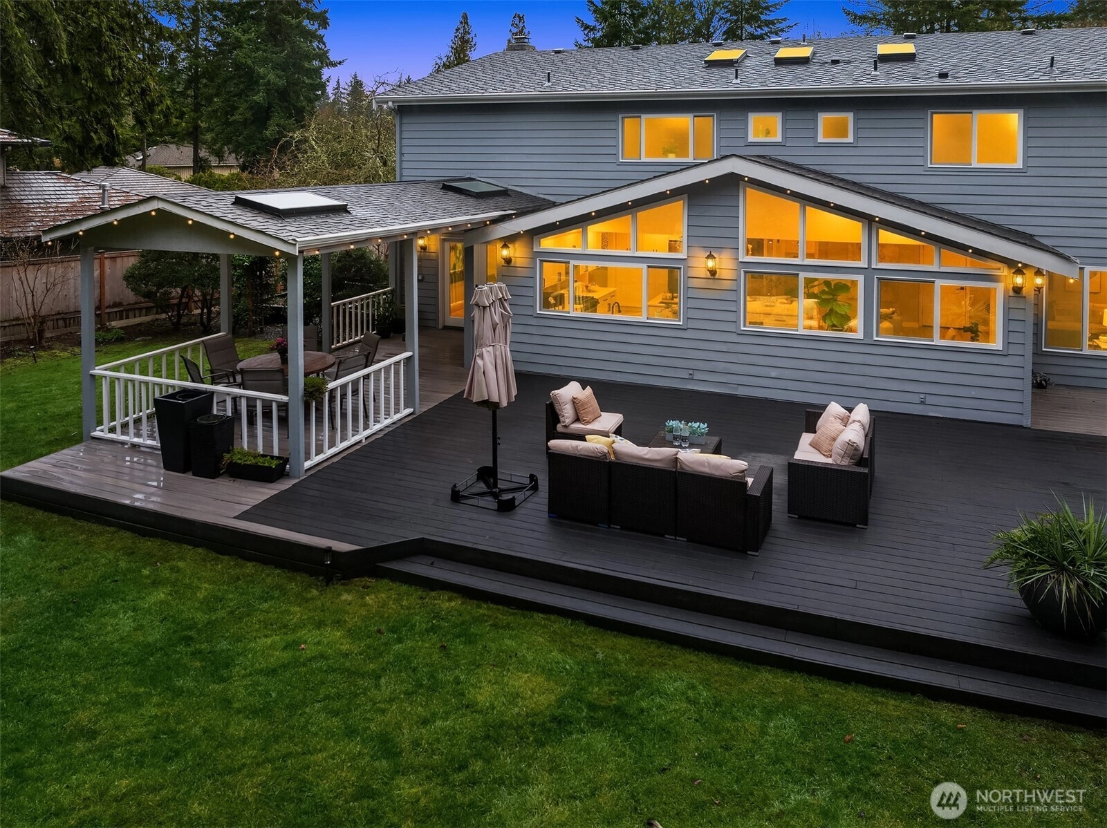 Welcome to this beautifully renovated 4-bedroom, 3-bath home in the heart of Medina, where location and lifestyle come together. Just minutes from Medina Park, Overlake Golf & Country Club, Bellevue shopping and dining, and the 520 commute, this home offers unbeatable convenience. Thoughtfully updated with newer flooring throughout, the home features a bright and open layout. The kitchen and family room boast vaulted ceilings, skylights, and an airy open-concept design, creating a welcoming space filled with natural light. The gourmet kitchen showcases premium cabinetry, quartz countertops, stainless steel appliances, and a large island that provides abundant prep space and storage. A main-level office or flex room adds versatility for work or hobbies. Upstairs offers four generously sized bedrooms with great privacy and natural light, plus a bonus room perfect for a gym or media room. Two bedrooms with ensuits, and the luxuriously renovated primary bath features floor-to-ceiling tile and a spa-like feel. Enjoy the expansive, level backyard with mature landscaping and a new entertainment deck—perfect for relaxing or hosting. Top rated Bellevue schools. Exceptional value in Medina.