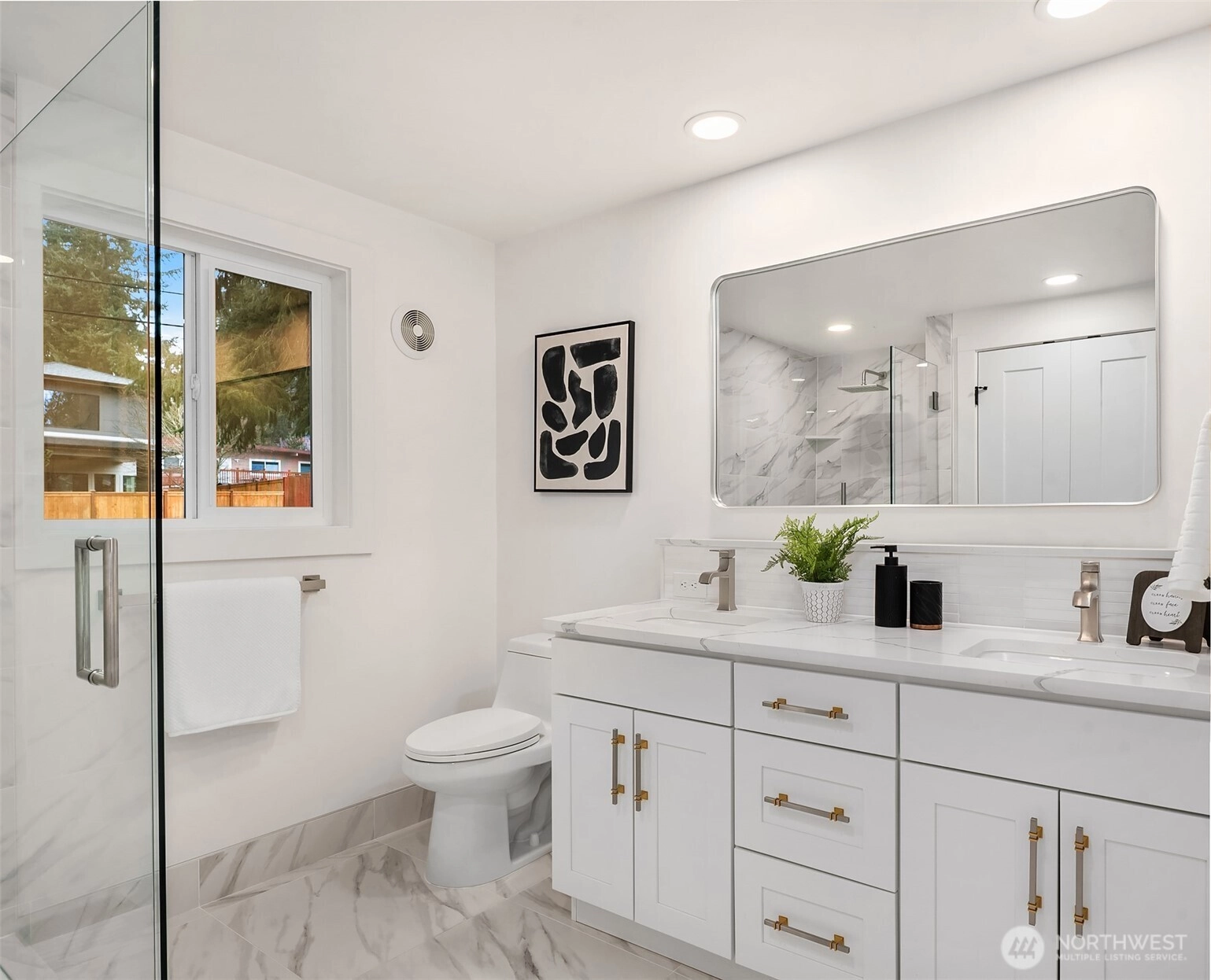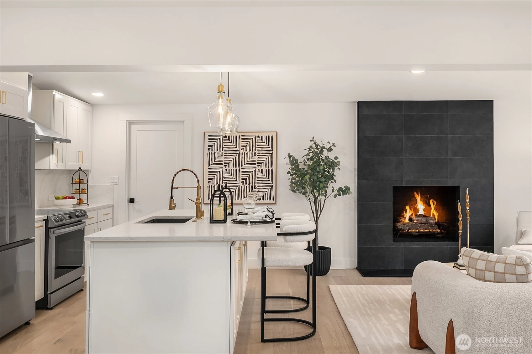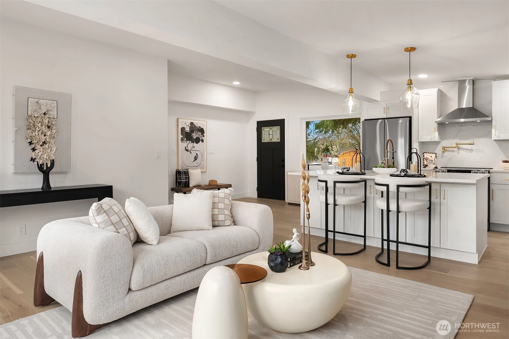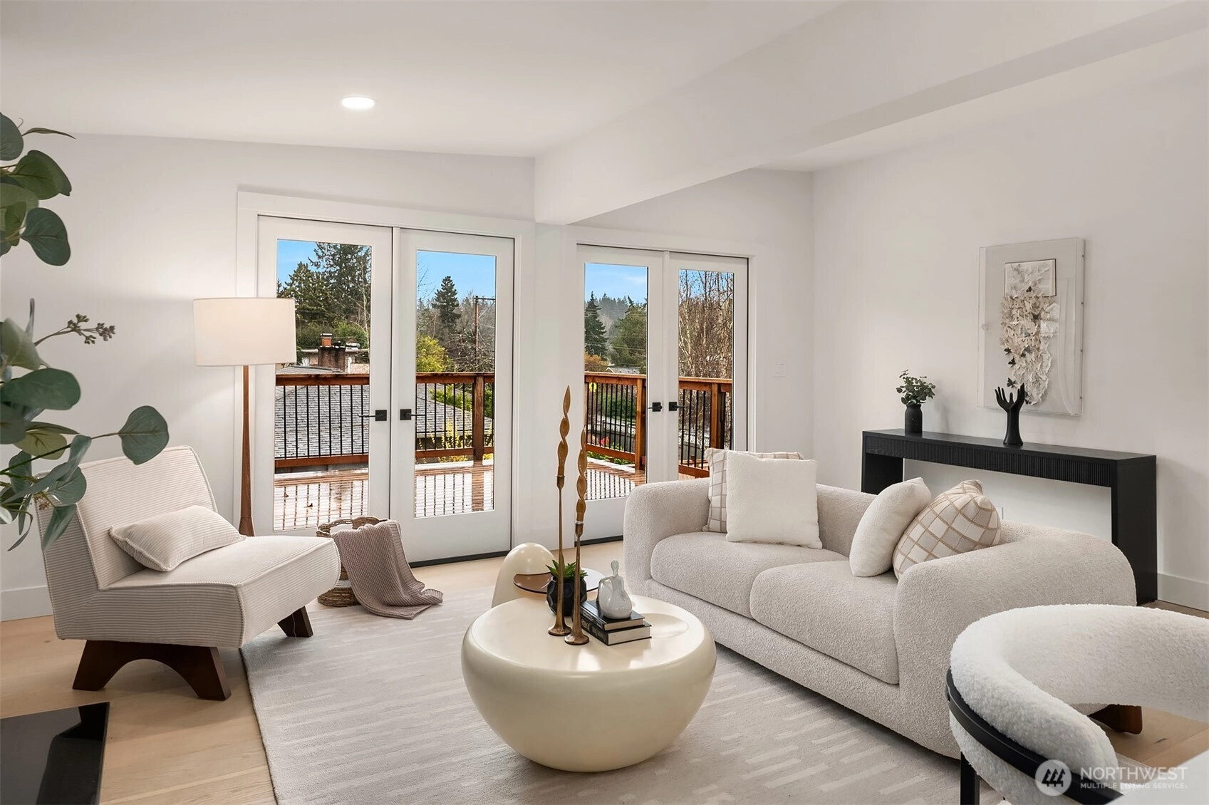 Experience refined living in this impeccably remodeled Lake Hills masterpiece, thoughtfully curated for both sophistication and comfort. Sleek contemporary finishes, including main floor primary suite, exceptional craftsmanship, and an open, light-filled layout create an atmosphere of modern elegance throughout. Set on a beautifully landscaped corner lot, the home offers seamless indoor-outdoor living with a fully fenced yard—perfect for relaxing afternoons or effortless entertaining. Take in sweeping territorial views from the expansive viewing deck, an ideal setting for unwinding at sunset or hosting guests. The versatile lower level provides outstanding flexibility, with potential for a private MIL suite or an inviting rec room—perfect for game nights, movie watching, or cheering on your favorite teams. Enjoy an unbeatable location just steps from the neighborhood park and the beloved Samena Swim & Recreation Club. A short stroll leads to Lake Hills Village, home to local favorite Shabu Shabu Kyoto Japanese Restaurant, while the Seattle Jewish Community School is conveniently located just blocks away. A rare opportunity to enjoy style, comfort, and community in one of Lake Hills’ most desirable settings.