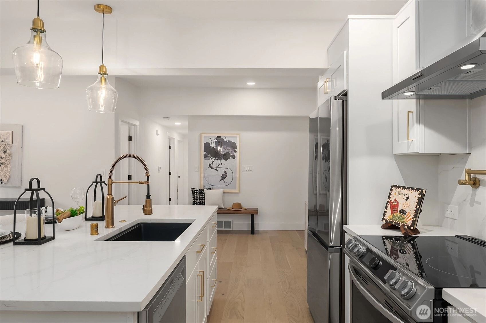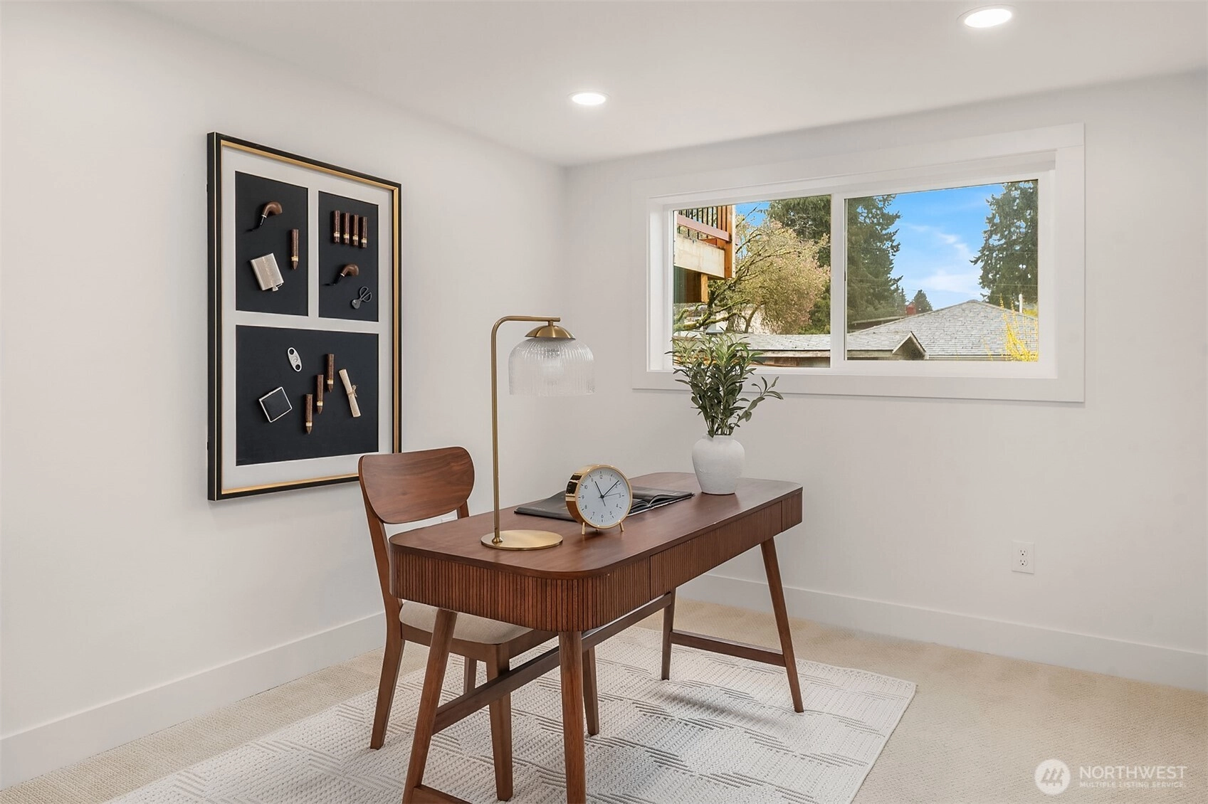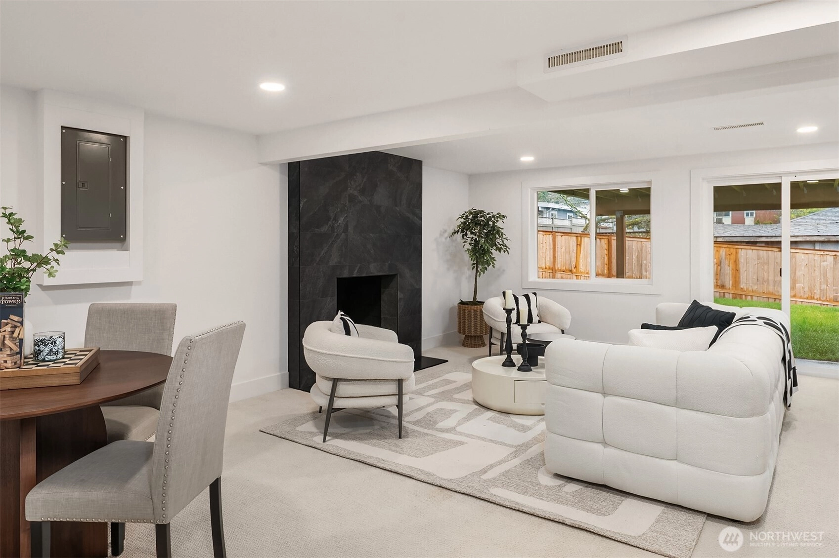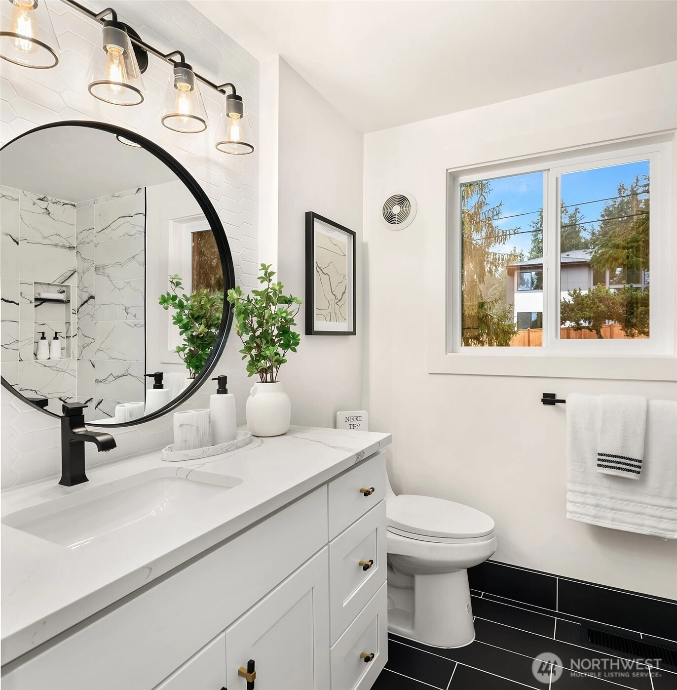 Experience refined living in this impeccably remodeled Lake Hills masterpiece, thoughtfully curated for both sophistication and comfort. Sleek contemporary finishes, including main floor primary suite, exceptional craftsmanship, and an open, light-filled layout create an atmosphere of modern elegance throughout. Set on a beautifully landscaped corner lot, the home offers seamless indoor-outdoor living with a fully fenced yard—perfect for relaxing afternoons or effortless entertaining. Take in sweeping territorial views from the expansive viewing deck, an ideal setting for unwinding at sunset or hosting guests. The versatile lower level provides outstanding flexibility, with potential for a private MIL suite or an inviting rec room—perfect for game nights, movie watching, or cheering on your favorite teams. Enjoy an unbeatable location just steps from the neighborhood park and the beloved Samena Swim & Recreation Club. A short stroll leads to Lake Hills Village, home to local favorite Shabu Shabu Kyoto Japanese Restaurant, while the Seattle Jewish Community School is conveniently located just blocks away. A rare opportunity to enjoy style, comfort, and community in one of Lake Hills’ most desirable settings.