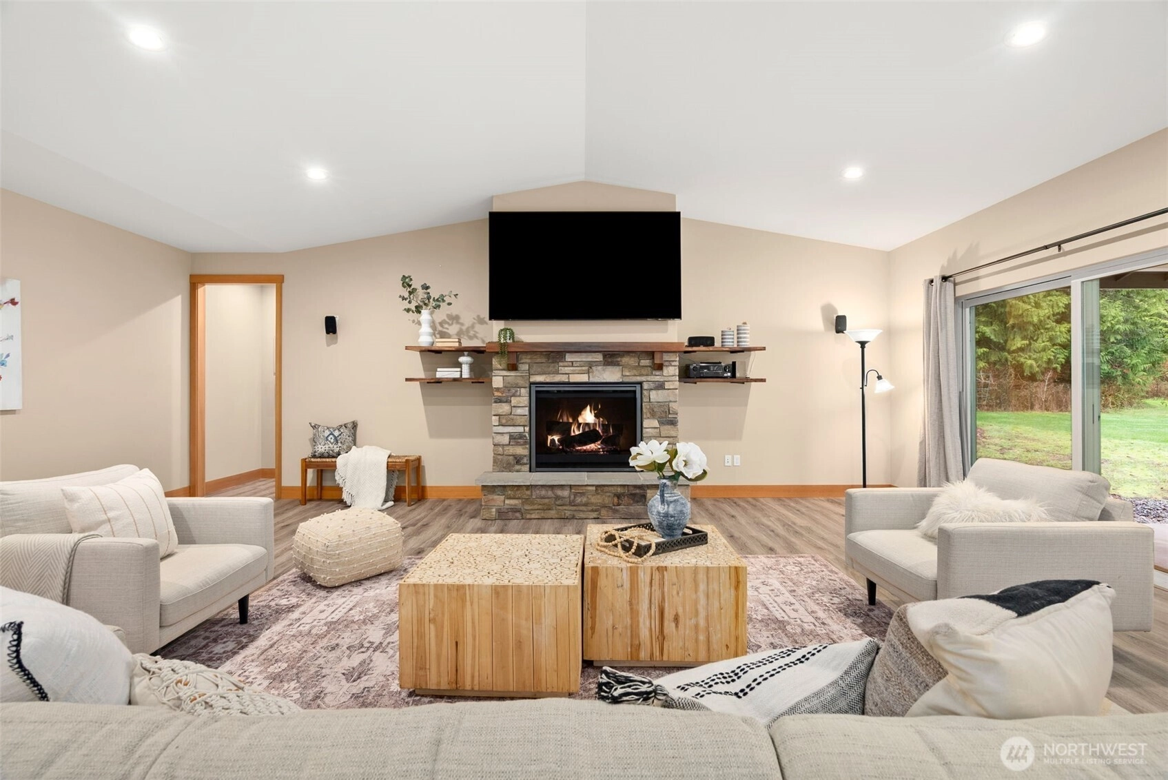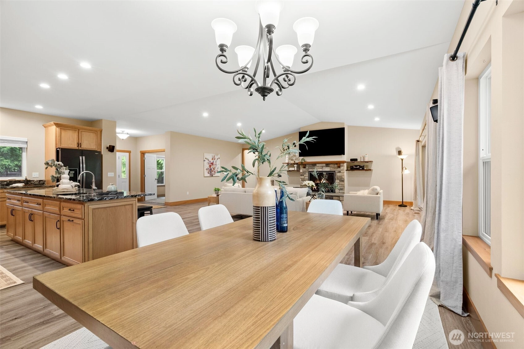 Better than new! Effortless one-level living in a serene, park-like setting.This custom-built, 4.99 private sun-drenched acres was built with meticulous attention to detail. The chef’s kitchen is a showpiece with massive one-piece granite slab, while the oversized primary suite serves as a true sanctuary with a spa-inspired bathroom and two large walk-in closets. The expansive, level grounds provide a rare blend of privacy and utility. ideal for gardening, play or future installations. A massive 3-car garage, providing ample room for vehicles, a workshop or storage. RV ready with a dedicated, level platform, making it easy to store your motorhome or adventure gear on-site. Truly a turnkey estate for the most discerning buyer.