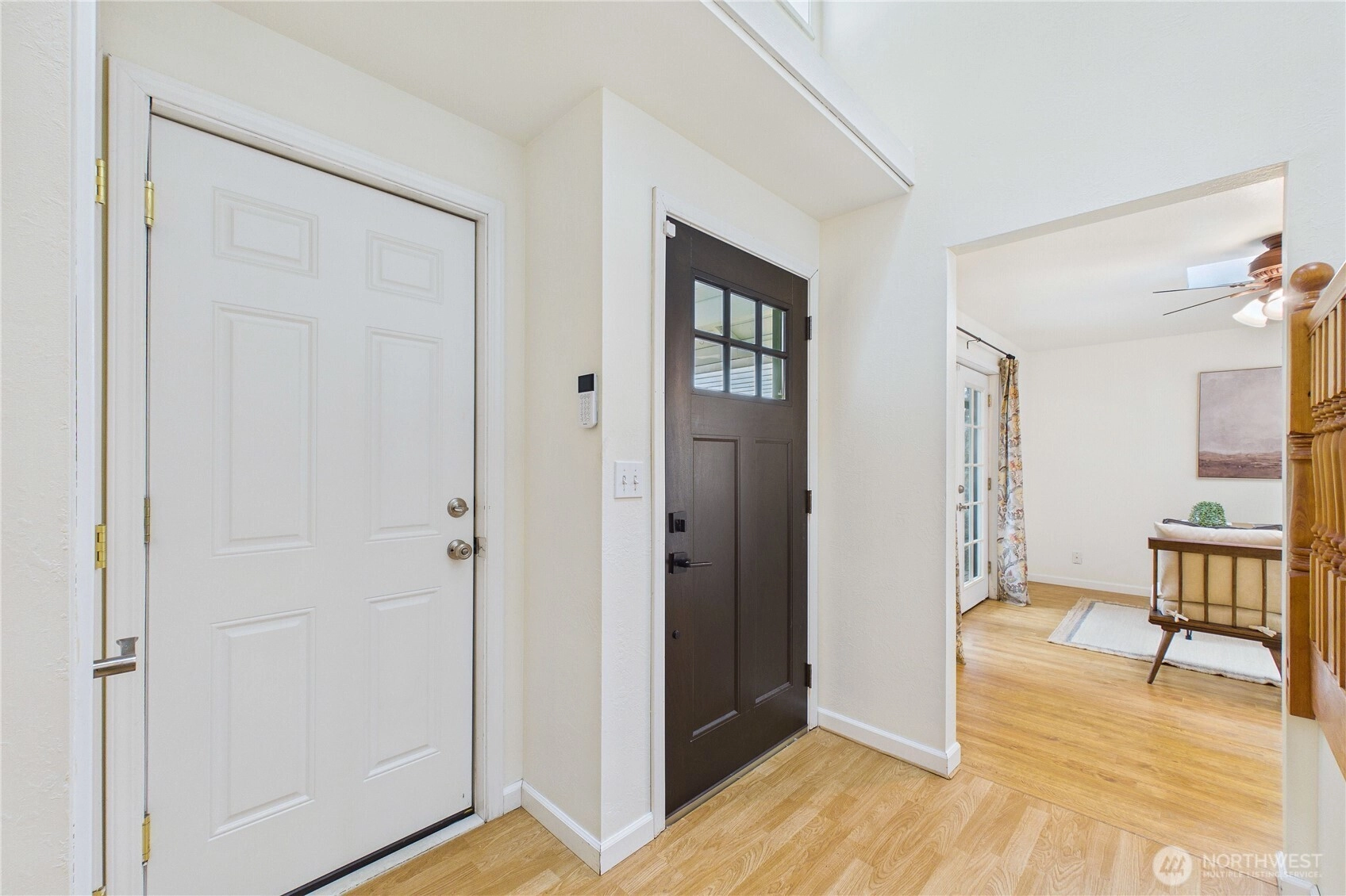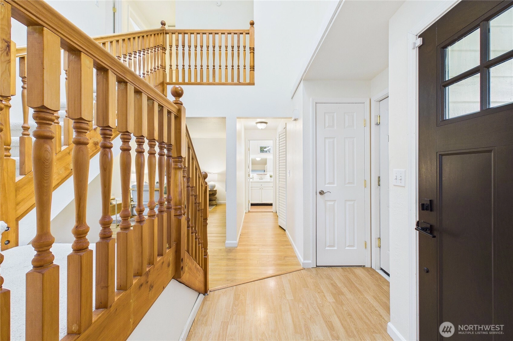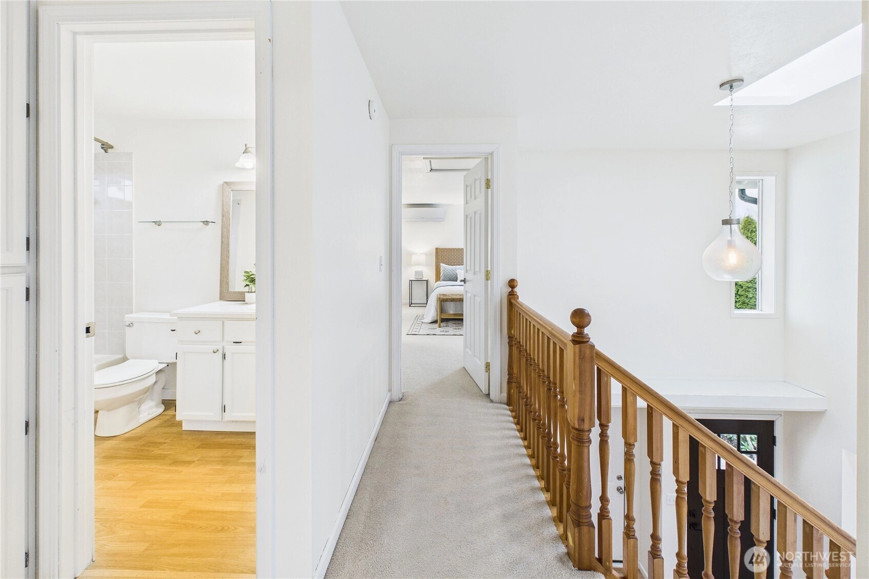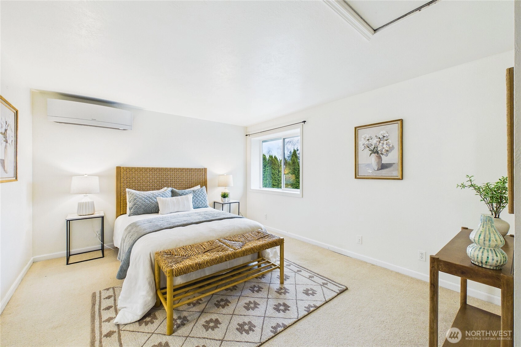 Welcome to the highly sought after neighborhood of Poulsbo Gardens. Offering space, flexibility, and a hard-to-find large lot. 3 bedrooms, 2.5 baths, this home is situated on a level .23 acre lot, and a peek-a-boo view of the Olympics! Ideally located, close to NK schools, and Historic Downtown Poulsbo. The interior has been freshly painted, creating a bright and move-in ready feel. The main level features a vaulted entry with skylight, comfortable living & dining spaces, plus mini-split Heating, and A/C for year-round comfort. Wood burning fireplace for those chilly evenings. Bonus room off the kitchen, with French doors that open to the front entry deck, perfect as a home office, or perhaps creative space. Durable laminate flooring. Stainless appliances in the kitchen. Laundry is conveniently tucked into a closet on the main floor (Washer & Dryer stay!) Upstairs, the spacious primary bedroom with ensuite, features a custom tiled tub/shower, and newer sink vanity with tiled backsplash. Mini-split for heating/cooling. Bedrooms 2 & 3 share a full bath, off the hallway. This home truly offers both location and livability. The fully fenced backyard provides room to garden, play, or relax outdoors, retractable awning on the back deck. Two-car garage, and additional storage shed. As an added bonus, the 95" television currently in the home, stays! A great opportunity for buyers seeking a comfortable home with room to make it their own in a desirable Poulsbo location.