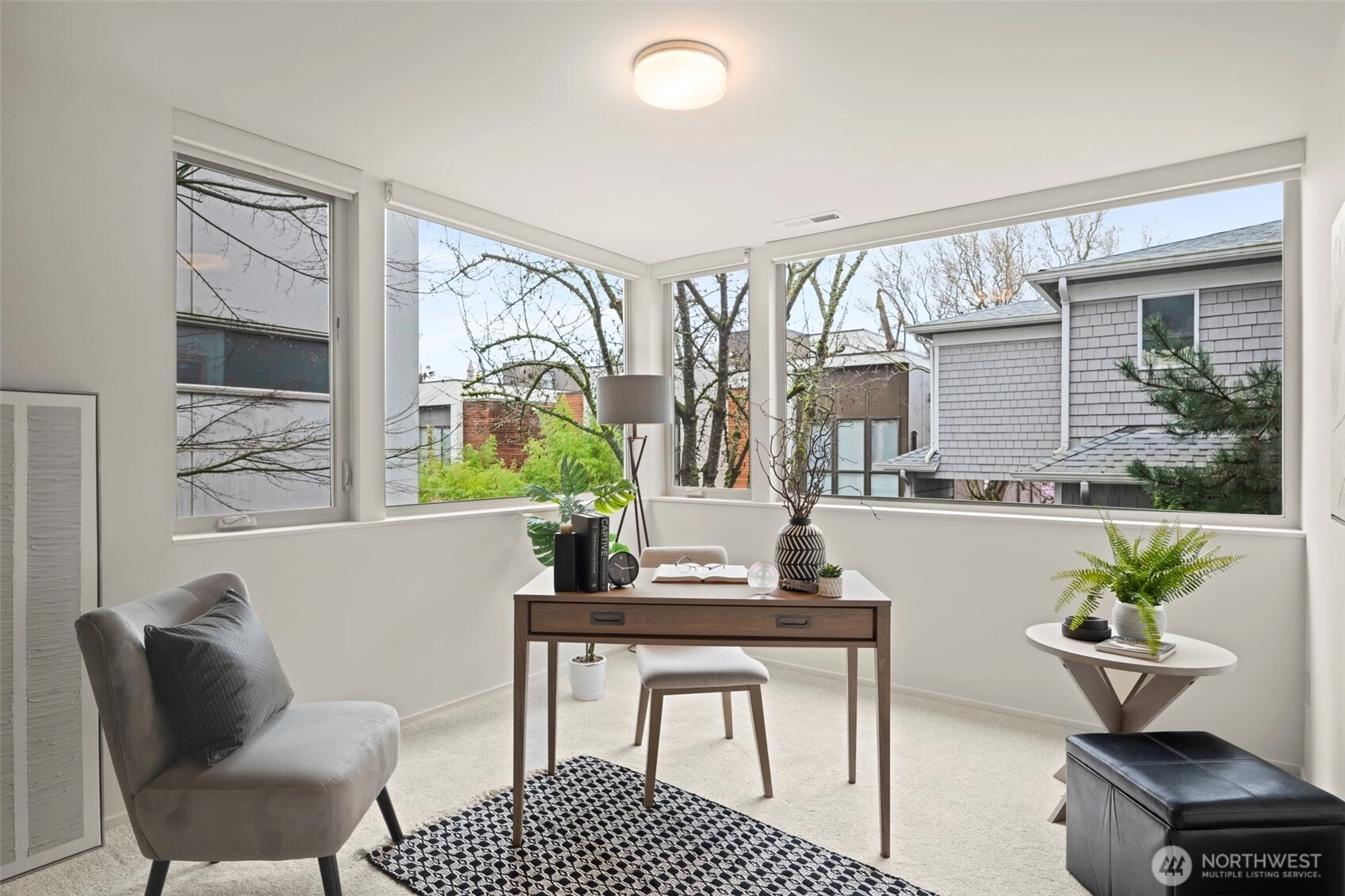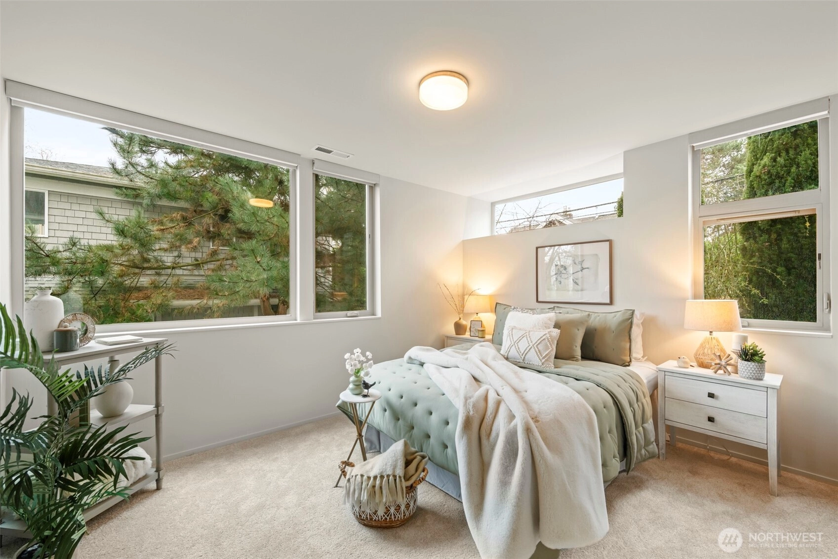 Sweeping views of Madison Valley from Mt Baker to Mt Rainier, featuring Lake Washington, the Cascades and the Bellevue skyline, in this thoughtful, contemporary, light-filled, free-standing home. Incredibly rare, two-car attached garage with an EV outlet plus a driveway parking space. A wall of windows surrounds the open concept living room. Rich wood floors and a fireplace complete the room. Beautiful quartz waterfall kitchen island, stainless-steel appliances and ample pantry space. Luxurious top-floor primary suite with a spa-like oversized shower and dual sinks. Wake up to sunrise views of Lake Washington and the Cascades in your spacious primary suite. Step out of bed and on to your peaceful view deck perched among the treetops--perfect for morning coffee or midnight stargazing. Uncommon natural light from the floor-to-ceiling window in your walk-in closet. Intuitively-placed frosted glass windows throughout the home to maximize both light and privacy. Custom window shades throughout home. Central A/C for those warmer summer days. Enjoy a metropolitan lifestyle in a tranquil setting. Home is down a quiet, dead-end street off E Denny between 23rd and 24th. Just blocks to shops and restaurants of both Capitol Hill and Madison Valley. A stairway across the road leads down to Homer Harris Park. Don’t miss this gem!