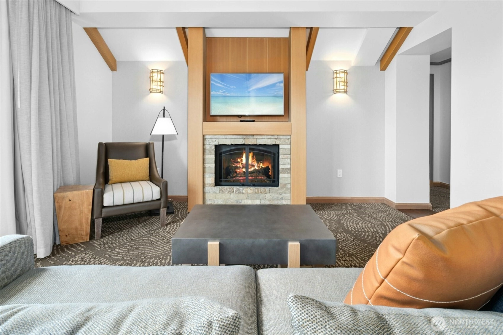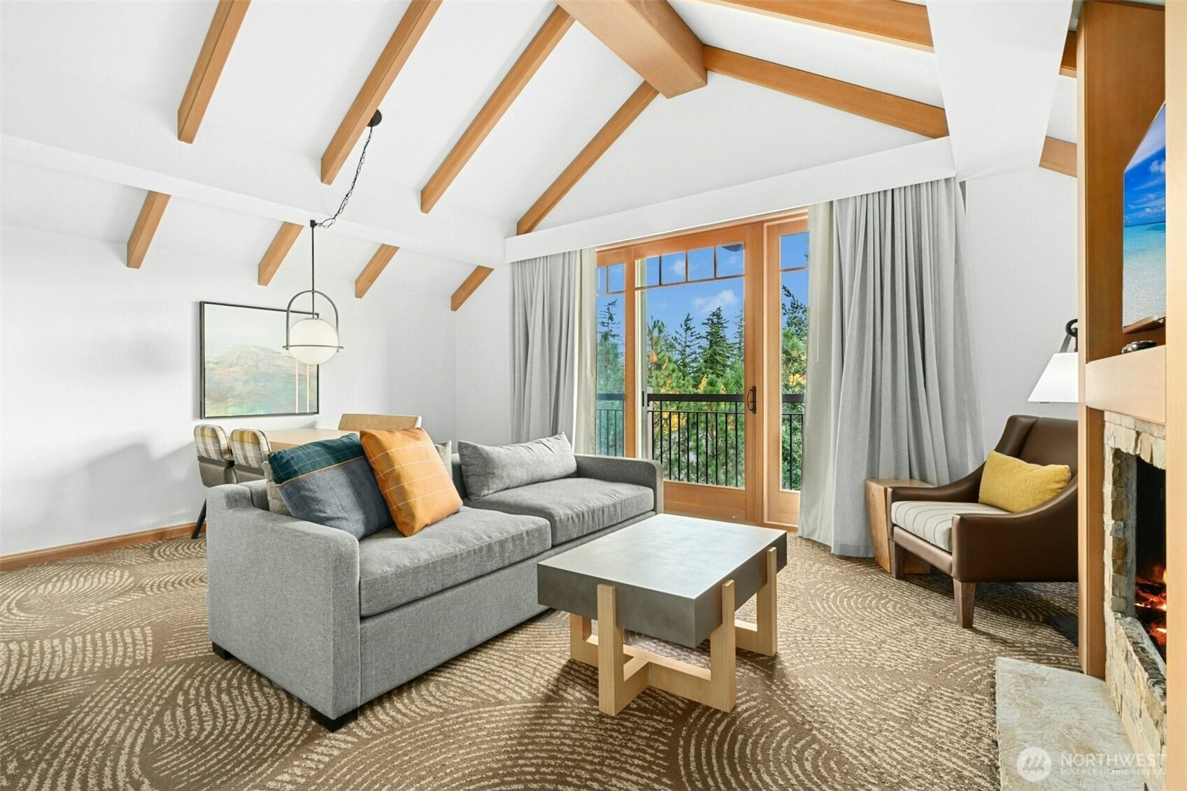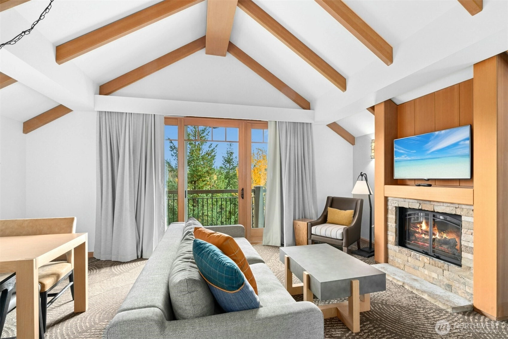 One of the limited penthouse-style 2-bedroom condos at The Lodge at Suncadia, this turnkey residence offers an easy mountain retreat with space, privacy and comfort. Vaulted ceilings elevate the open great room, creating a relaxed setting anchored by a stone fireplace and warm mountain-inspired finishes, ideal for gathering with friends or unwinding after a day outdoors. The thoughtful layout places the bedrooms on opposite sides of the condo, giving owners and guests their own sense of space. Offered fully furnished, the home is ready to enjoy immediately with nothing to prepare or update. Positioned as one of the strongest values among Lodge 2-bedroom condos, it stands out for its layout, condition and price. Owners also have the option to participate in Suncadia’s rental program, creating the potential for rental income while still enjoying personal use. Elevator access makes coming and going effortless, while the surrounding Suncadia lifestyle offers golf, trails, pools and dining just moments away, making this an ideal lock-and-leave escape in a four-season mountain setting. Experience the value, layout and four-season lifestyle that make this Lodge at Suncadia penthouse stand out!
