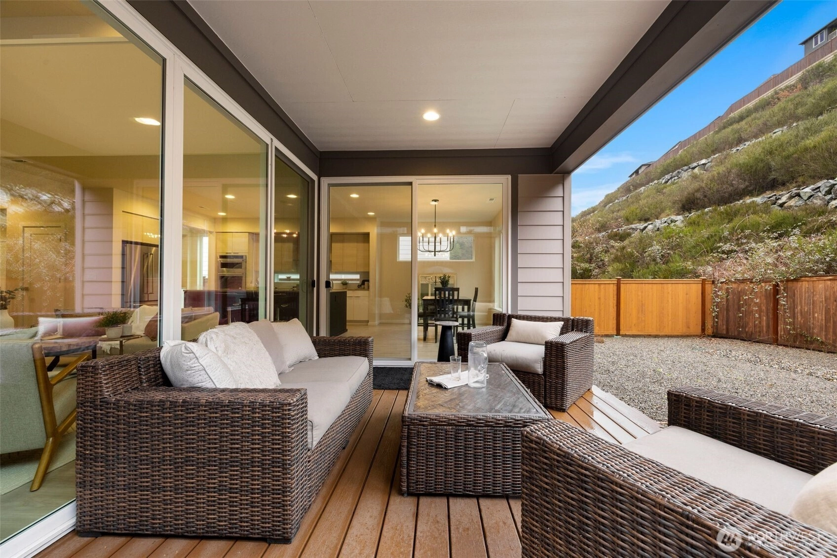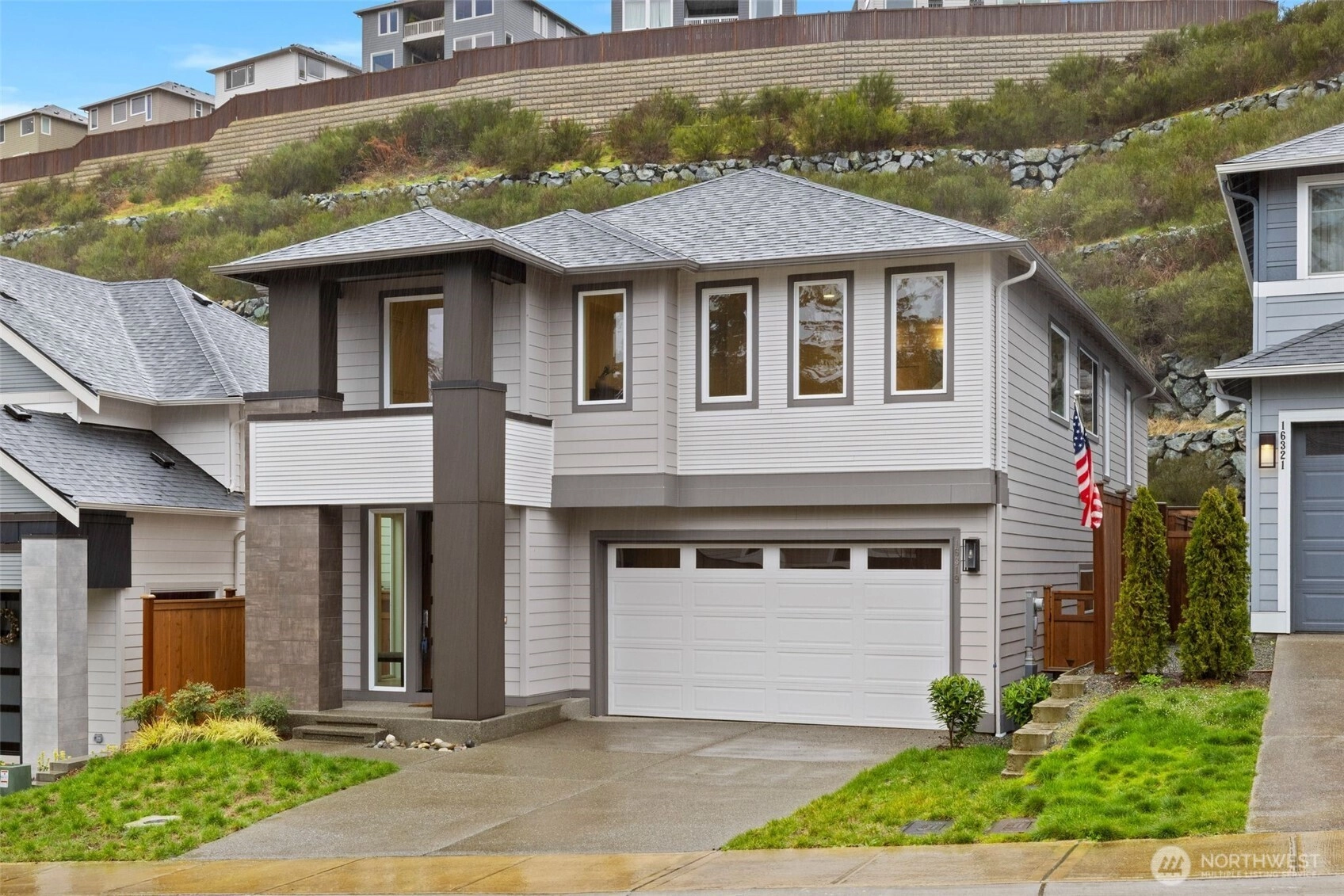 Lakeland Ridge presents the Birch floor plan by MainVue Homes—an elegant one-year-old residence blending modern style with everyday comfort. The gourmet kitchen is a chef’s dream, featuring 3cm quartz countertops, gas stove, window backsplash, stainless steel appliances, and a spacious Grand Butler’s Pantry. Expansive windows and sliding doors fill the home with natural light and create a seamless flow between the study nook, family room, dramatic two-story living room, dining area, covered patio, and backyard—perfect for entertaining or relaxing. Upstairs, all four bedrooms include plush wall-to-wall carpeting and walk-in closet(s). The luxurious primary suite features dual walk-in dressing rooms and a spa-inspired five-piece bath with a soaking tub and frameless glass shower. A versatile loft provides additional space for a play area, home office, gym, or second living room. Convenience continues with an upstairs laundry room including a new Whirlpool washer and dryer, plus central air conditioning and an EV charger in the garage. Located in the award-winning Dieringer School District, Lakeland Ridge offers easy access to restaurants, shopping, and the train station for convenient Seattle and Tacoma commutes. Welcome home.