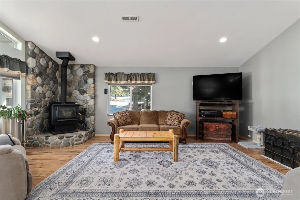 Beautiful Entiat Riverfront property offering approximately 235 feet of river frontage, 3.49 usable acres, and Chelan-Douglas Land Trust property across the river providing lasting privacy. This well-maintained 1,760 sq ft home, built in 2013, features 2 bedrooms and 2 baths with an open-concept layout that feels spacious and inviting. The large kitchen flows seamlessly into the living and dining areas and includes double ovens, propane cooktop, granite countertops, hickory cabinets with pullouts, and a generous eating bar—perfect for entertaining. Don't forget the large walk-in pantry. A wood stove surrounded by river-rock adds warmth and charm to the living space. The spacious primary suite offers a walk-in closet and private bath with separate soaking tub. Outside amenities include a two-car attached garage, approximately 400 sq ft detached shop, 720 sq ft three-sided carport, and an old barn for critters, additional storage or projects. Enjoy outdoor living on the expansive covered front patio with built-in BBQ area, plus a screened-in porch, ideal for summer evenings. The property offers abundant parking for RVs, boats, and toys, along with 400-amp service and RV hookups with power, water & sewer dump. A Kubota tractor can even stay with the property. Previously used as pasture and fully usable, this riverfront acreage offers space, privacy, and functionality in a newer one-level home—an exceptional opportunity for recreation, hobby farming, or peaceful river living.