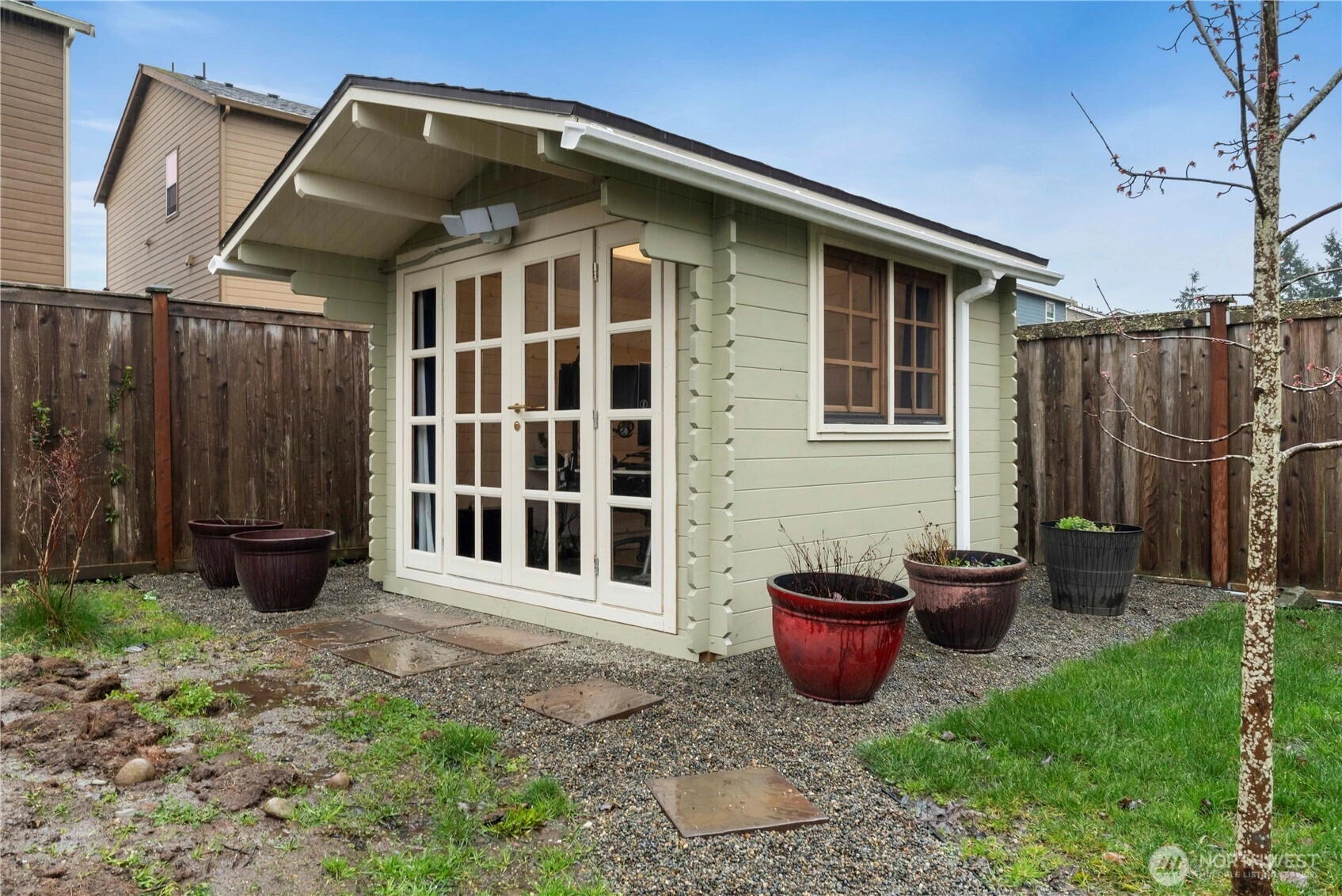 Room to live, work, create, and grow! This 5-bedroom, 3-bath home truly has space for everybody and everything. The updated kitchen shines with energy-efficient appliances, granite counters, rich wood cabinetry, and a huge walk-in pantry. Spacious primary suite features a walk-in closet and separate soaking tub and shower. Main-level guest bedroom with attached full bath is ideal for visitors, multi-gen living, a craft room, or additional office. Large upstairs bonus room is a PLUS! Fully fenced yard, covered patio. Detached 10x10 office with its own breaker box, Ethernet, insulation, and guttered roof extends work space. Be sure to check out the unique under-stair storage.