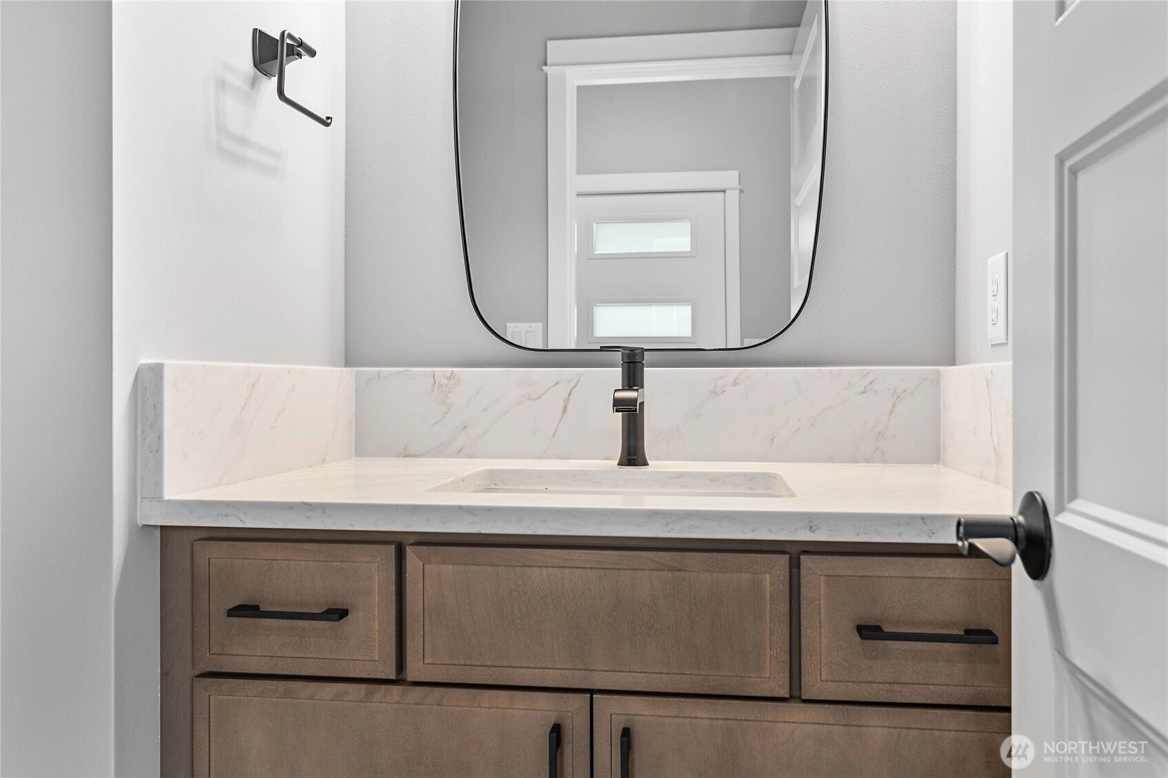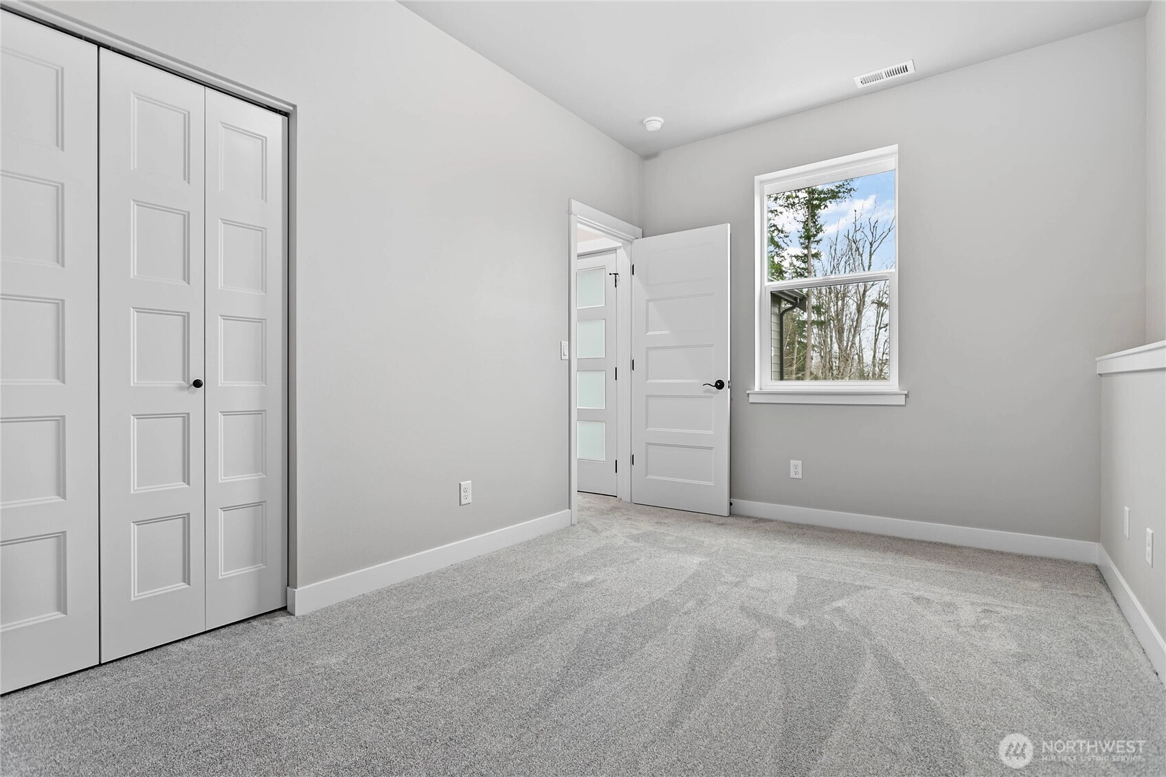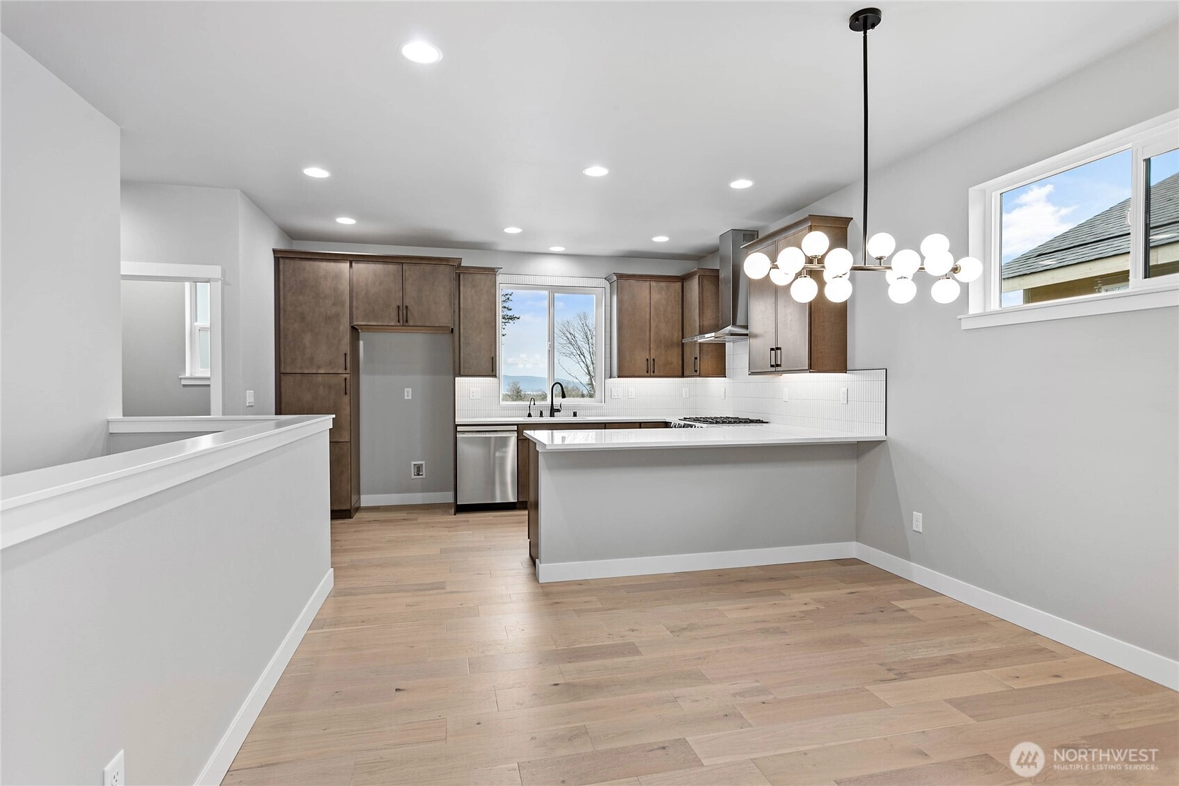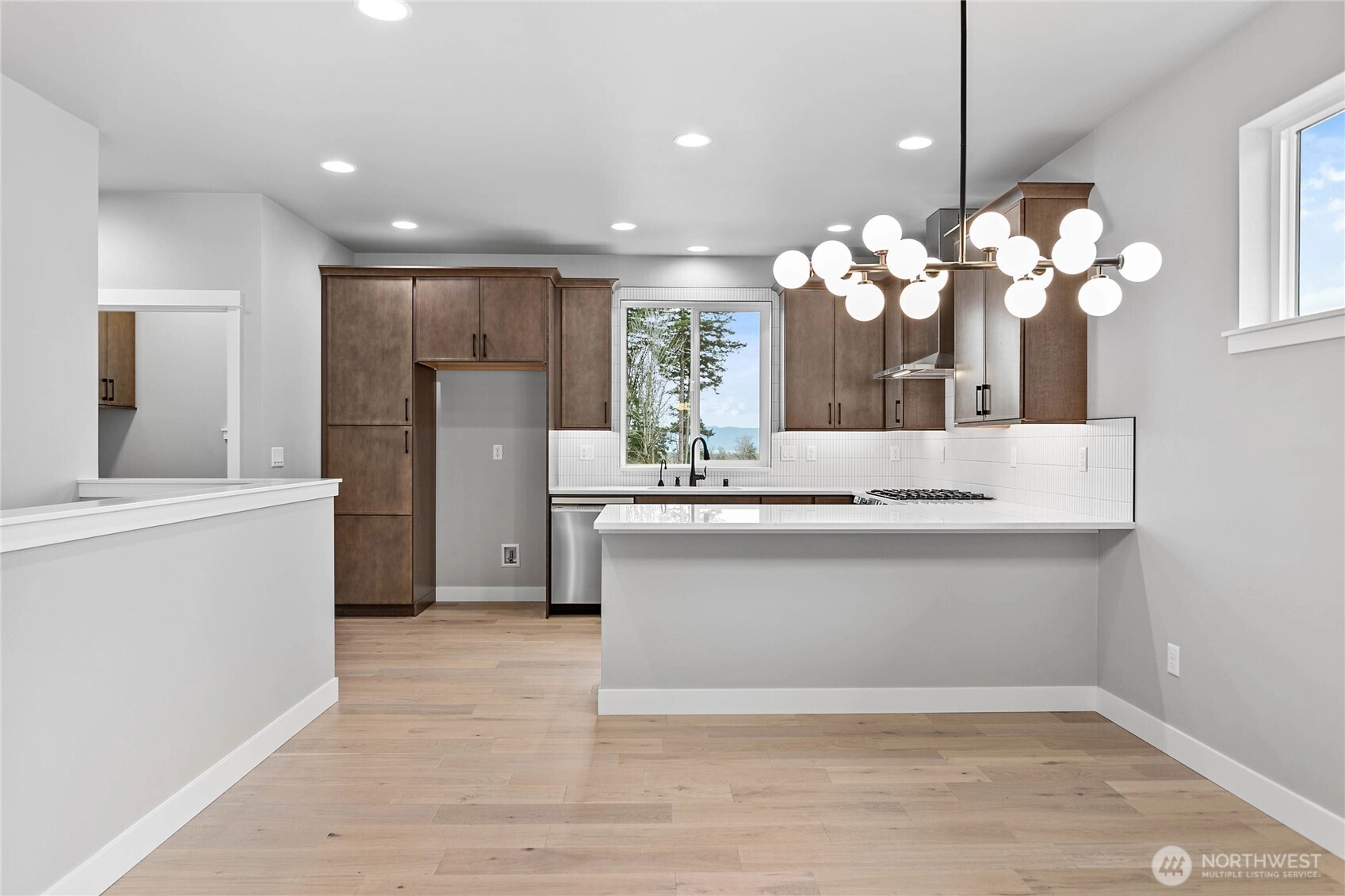 Thoughtfully designed new construction by Alliance Properties. This bright home lays out almost like a rambler, with everything you would need on one level (laundry, great room, kitchen, office). Kitchen featuring a large quartz peninsula, custom tiled back-splash with tile work wrapping the window, on-demand hot water tap, upgraded hood, and natural gas cook top. Main floor primary bedroom boasts a custom tiled shower, double under-mount sinks, large walk-in closet, and high tech cabling. There are an additional two bedrooms and shared bath off of the lower-level garage. Shared bath includes soaker tub/shower combo with tile all the way to the ceiling and a long cabinet run with soft close hinges. Spacious 2-car garage comes pre-wired for EV. Not included in the square footage is a massive dry and wired "crawlspace" that reads more like a large secure storage locker. Accessed from the outside of the home, there is room for bikes, kayaks, and more. OR look into the potential to finish in the future. Home located next to trail system. Solar included. STILL TO COME: FENCING and LANDSCAPING