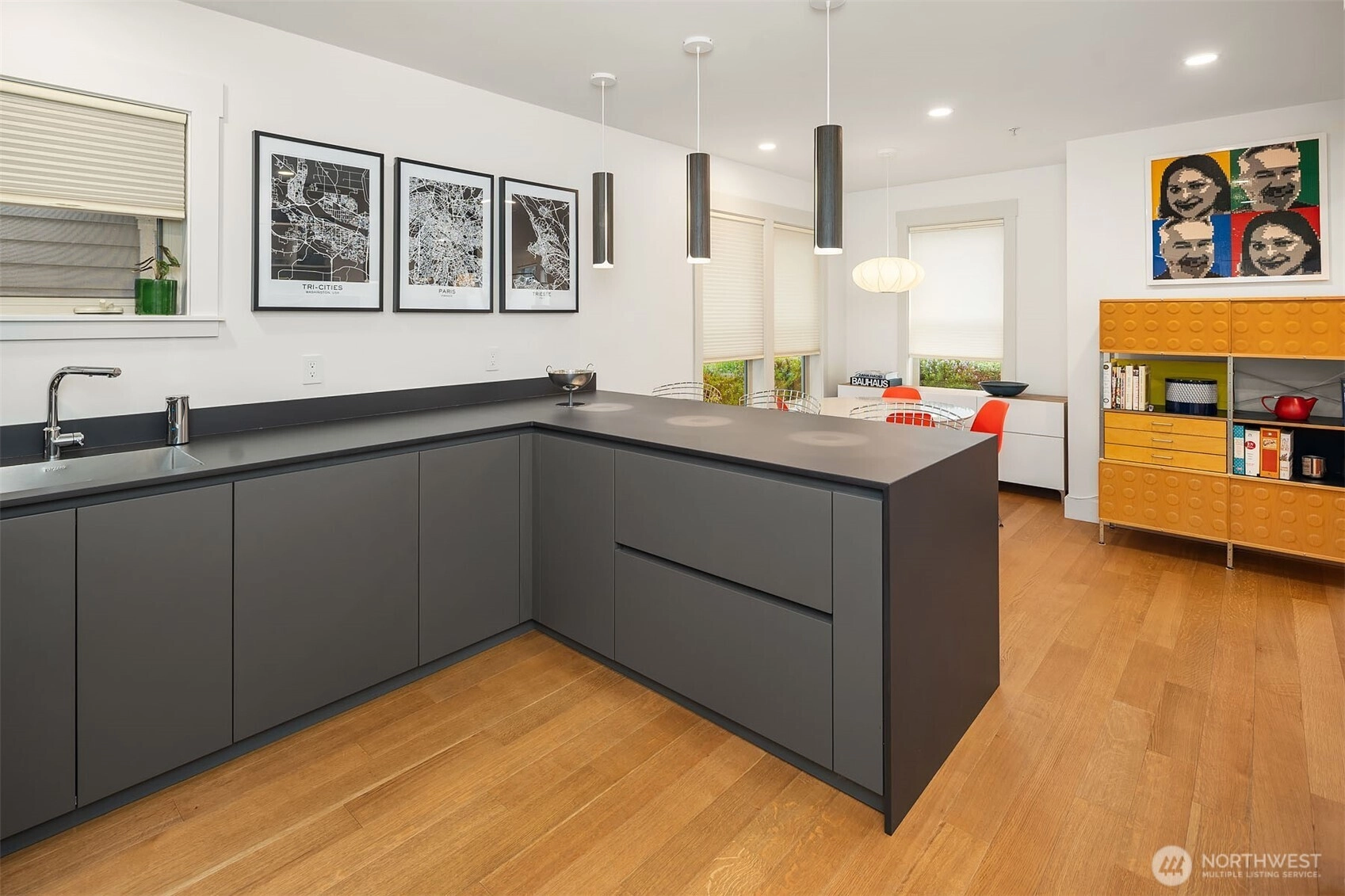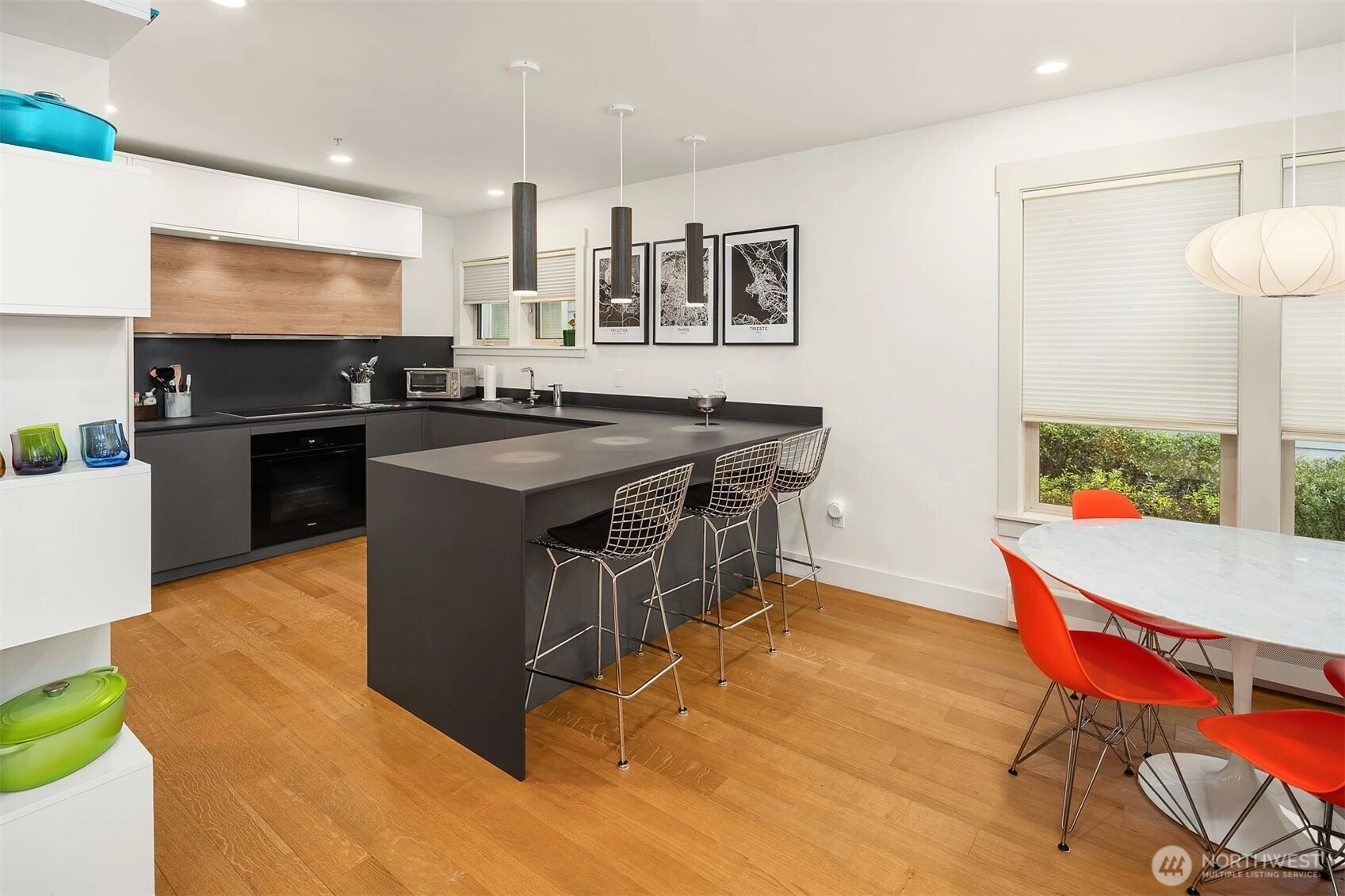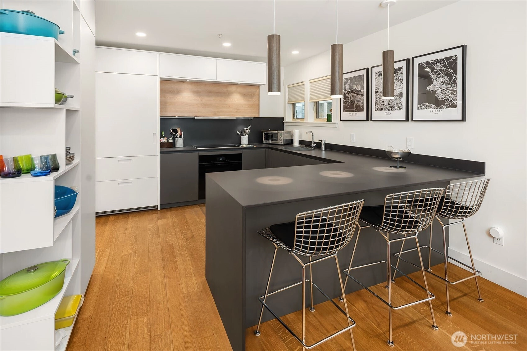 Known in the neighborhood as The Three Grand Ladies, these iconic turn-of-the-century Victorian homes were thoughtfully converted to condominiums in 2004. This beautifully updated garden unit blends historic character with striking modern design, offering easy level access, high ceilings, hardwood floors, and a bright, open living and dining layout that feels refined and inviting. The chef’s kitchen is the star of the show, anchored by custom Pedini Arke cabinetry, dramatic Dekton Domoos counters, backsplash, and waterfall, plus premium appliances including an induction cooktop, hood, oven, built-in Liebherr refrigerator, and built-in Miele dishwasher. Two bedrooms, one beautifully finished bath with radiant floor heat, Blu Stone vanity and fixtures, 1,020 sq ft, and one dedicated parking space complete the home. Ring security and a custom Jeeves monitoring system are included, tracking temperature, stocks, public transportation, humidity, and air quality throughout the home, while nearly all electrical systems can be controlled by phone through the integrated smart hub. Set in a highly walkable Central Area location near restaurants, shopping, parks, Seattle University, and transit along 23rd Ave, this is a rare opportunity to own a truly dialed-in home in one of Seattle’s most memorable historic conversions. Just blocks from daily amenities, it delivers the style, convenience, and substance buyers want, wrapped in a historic setting that feels genuinely special in the city.