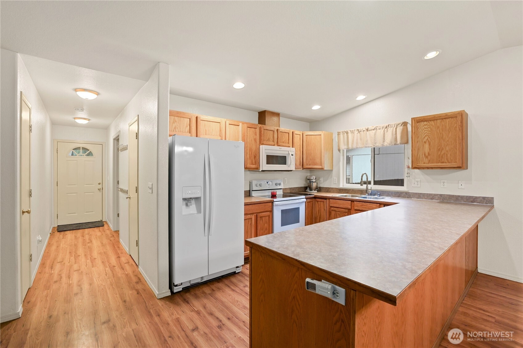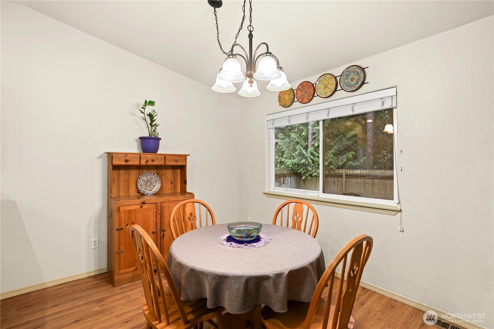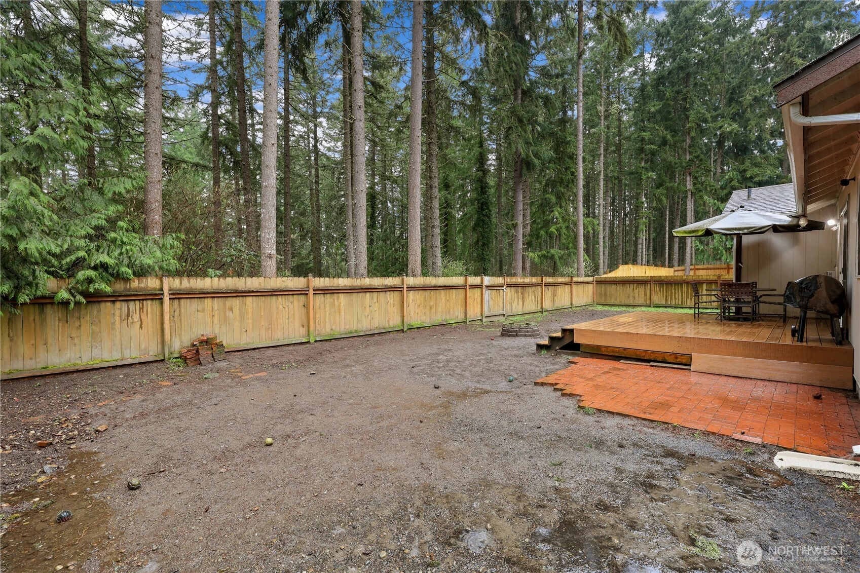 Welcome to your next chapter in this nicely maintained retreat home! This 3-bedroom, 2-bathroom rambler offers a laid-back lifestyle with 1,532 square feet of easy-living space. Located in the gated Clearwood community, this home is all about comfort & peace of mind. The big ticket items have already been handled for you: a new hot water heater was installed in 2020, followed by a high-efficiency heat pump in 2021 to keep you cool all summer and cozy all winter. You will also love the new deck (2021), which is the perfect spot for weekend BBQs or just hanging out in the spacious back yard! Best of all, the property backs up to a lush, wooded area, giving you plenty of natural privacy with no neighbors directly behind you. Inside, the floor plan is open and bright, featuring vaulted ceilings that make the main living area feel extra roomy. The kitchen is great for hosting, complete with a handy breakfast bar and plenty of storage. The primary suite is a solid retreat with its own walk-in closet and bath. Living here means you get full access to the Clearwood perks—three lakes, beaches, a swimming pool, tennis courts, and miles of trails right outside your door. It is a quick 35-minute hop to JBLM & an easy commute to Olympia, giving you that quiet, out-of-the-city feel without losing the convenience. This is a great home in a fun, secure neighborhood that is truly ready for you.