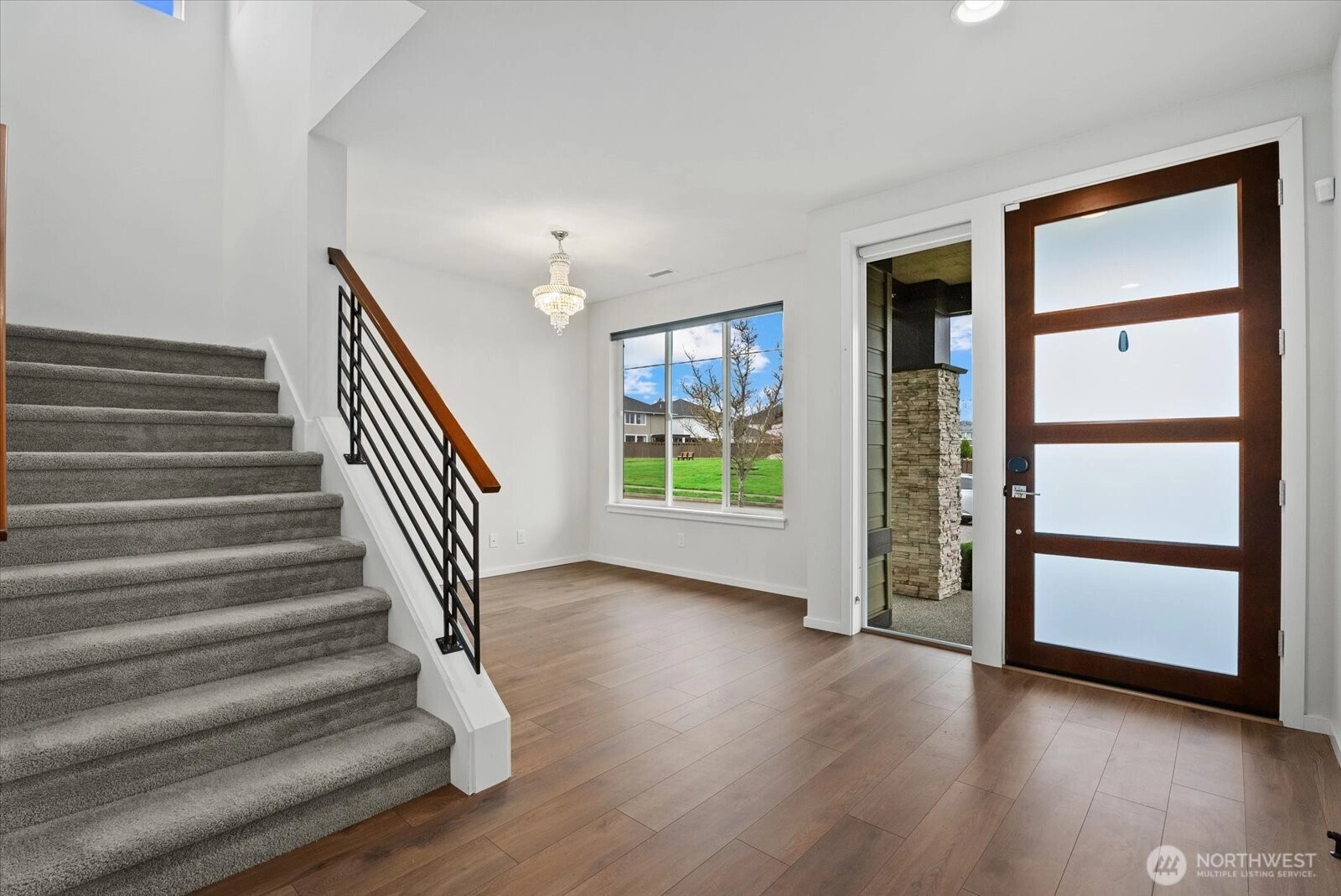 Stunning MainVue home in Monroe featuring modern architecture, open concept living, and luxury finishes throughout. Expansive great room flows into a chef inspired kitchen with European frameless cabinetry, premium Grohe fixtures, and designer finishes. Upstairs offers spacious bedrooms with walk in closets, bath with double vanity, and a relaxing primary suite retreat. Enjoy outdoor living on the large entertaining deck and fully fenced backyard. Move in ready Monroe WA home with easy access to parks, shopping, dining, with quick access to Highways 2 and 522 and commuter routes to Bellevue, Redmond, and Seattle.