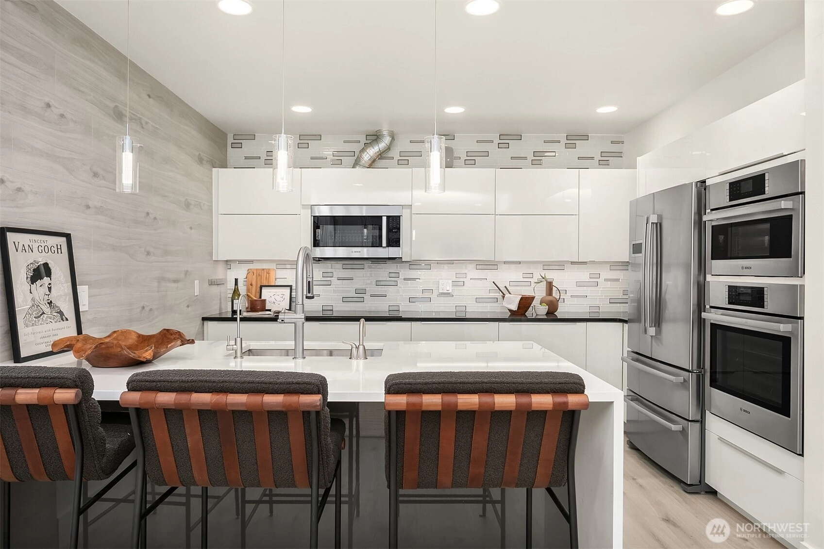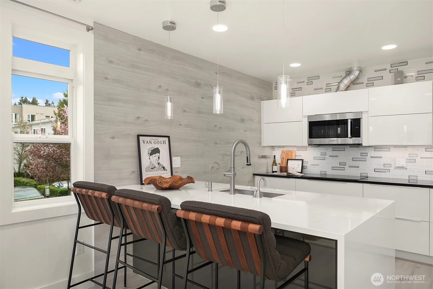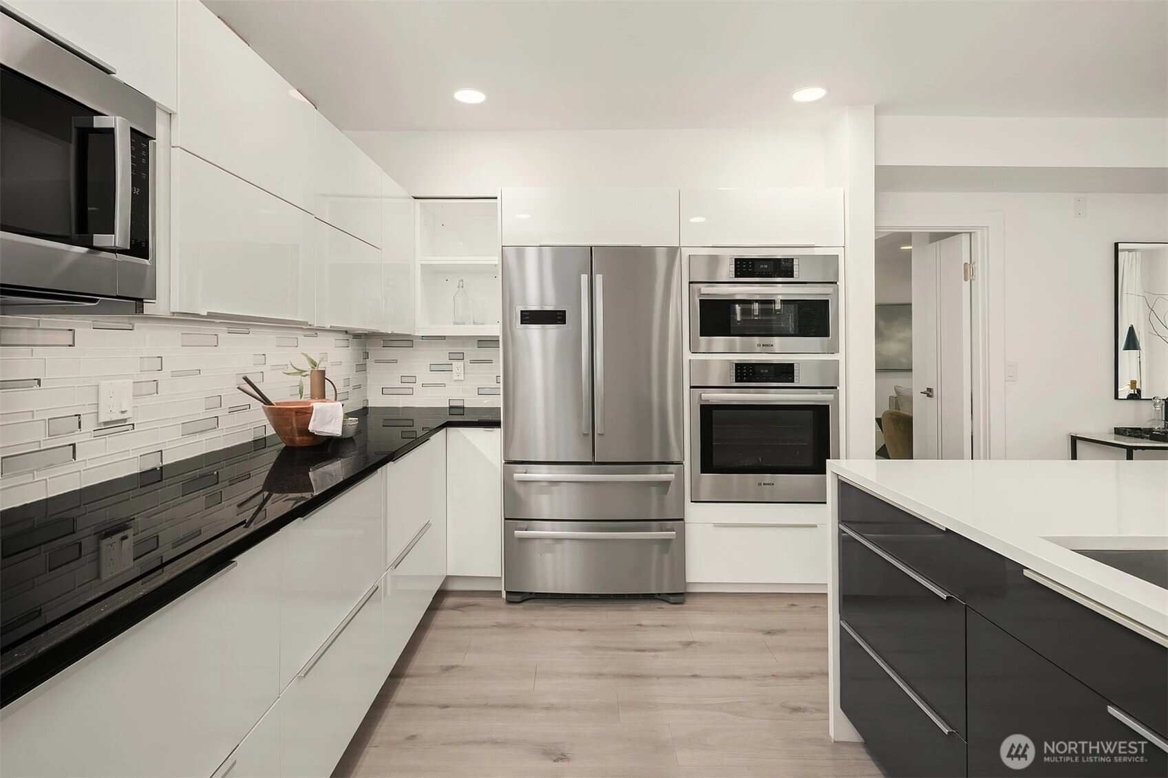 Welcome to the Plaza on State. This meticulously maintained & extensively updated condo is right in the center of Kirkland's vibrant Downtown. Set across from the Heathman Hotel, with shopping & dining just steps away, this home is perfect for every lifestyle. The sprawling floor plan offers 3 bedrooms, 2 baths, 2 living rooms and a dedicated dining room with large windows that flood the home with natural light. The living room features a double sided fireplace and has access to a large covered deck that overlooks Downtown. Fully renovated kitchen with new quartz countertops, Belmont cabinetry, a Bosch appliance package that includes an induction cooktop, steam oven, Kraus sink with instahot + filtered water. The spacious primary suite features access to a private balcony, updated bath with large soaking tub and floating vanity as well as a walk-in closet with custom organizers. Thoughtful updates include new flooring throughout (no carpets), new fixtures, paint throughout, doors & millwork. Prewiring for speakers, Lutron Caseta switches, central AC, and a full utility room with Bosch washer/dryer, new sink & countertops. 2 storage units with easy, same-floor access, 2 conveniently located parking spots with secured entry, all within walking distance to everything Downtown Kirkland has to offer.