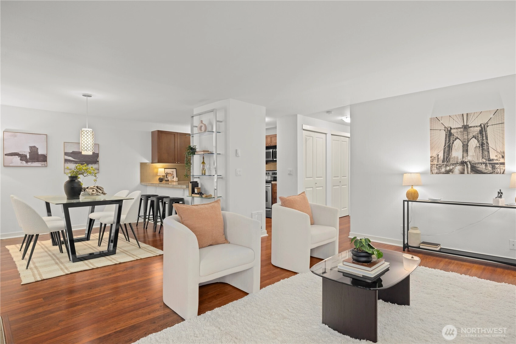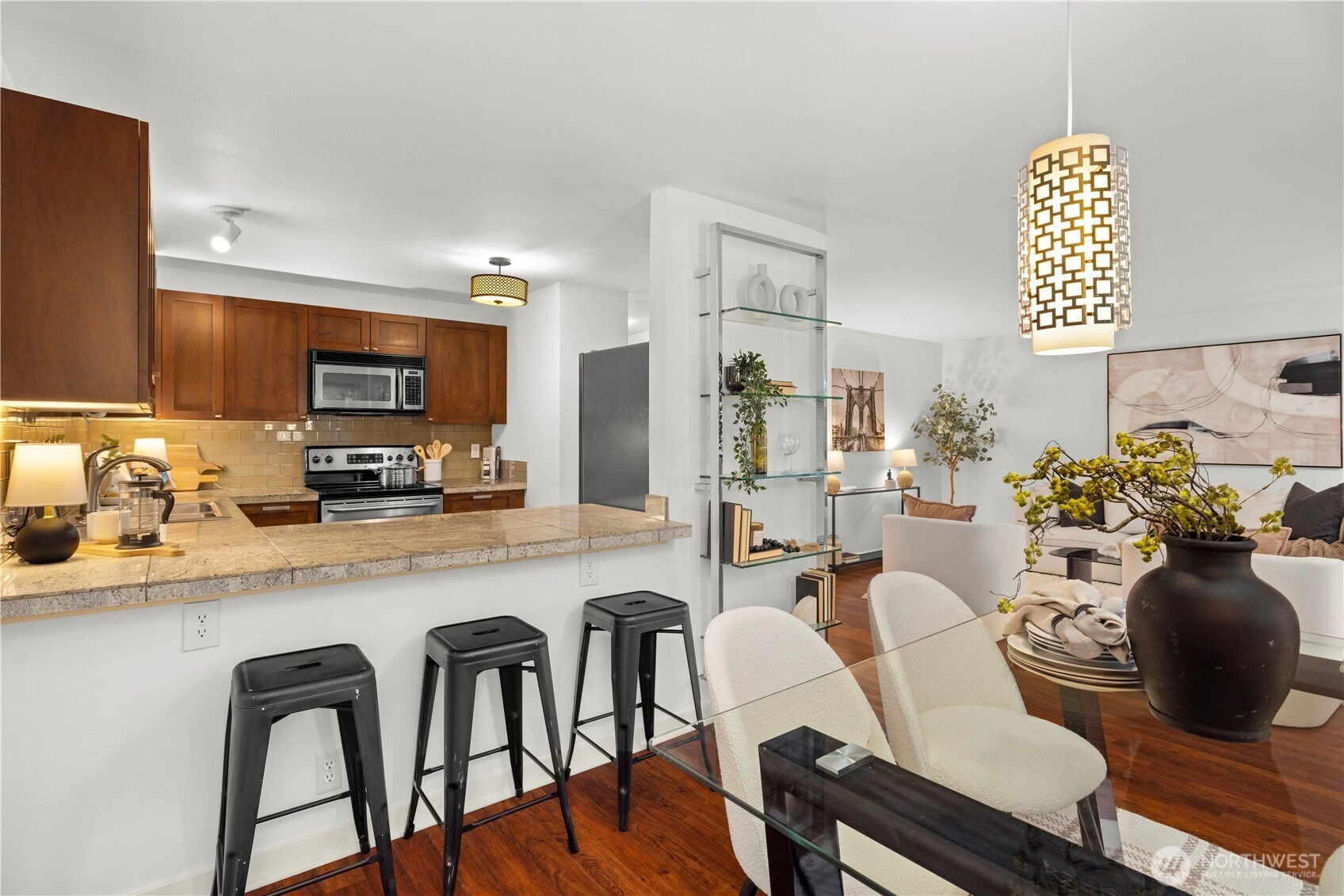 Welcome to Bellevue’s sought-after Towne community, where Cape Cod charm meets peaceful greenbelt living. Extensively renovated down to the studs in 2007, this inviting home offers comfort, privacy, and remarkable convenience. Arrive home to your own individual garage, pass the quiet patio, and step into a private retreat. The thoughtfully designed open layout flows from the kitchen through the dining area and spacious living room to a secluded deck overlooking a lush greenbelt—an ideal setting for morning coffee, evening unwinding, or cozy nights by the fireplace. Storage is exceptional for condo living, with a pantry, coat closet, linen closet, utility closet, abundant kitchen cabinetry, and double closets in the primary bedroom. Located in the award winning Bellevue School District, it’s minutes from Factoria, downtown Bellevue, downtown Seattle, I-90, I-405, parks, bike trails, light rail, shopping, and everyday amenities this home offers the best of both tranquility and accessibility. With NO RENTAL CAP, a well-run HOA, and pre-inspection already completed, this is a standout opportunity for both homeowners and investors alike.