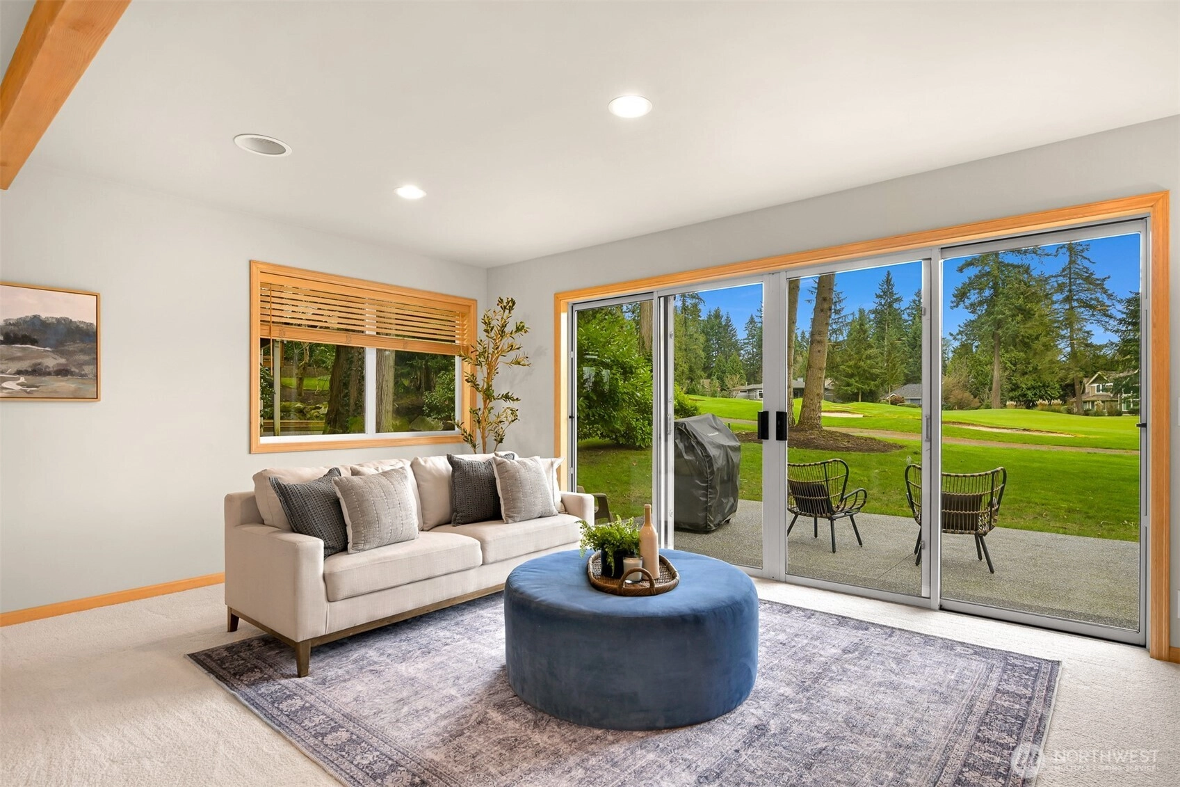 Enjoy beautiful natural light and golf course views in this home perfectly positioned along the 17th fairway of the Semiahmoo Golf & Country Club. With favorable southern exposure, the living spaces feel bright and welcoming throughout the day, a wonderful feature in this peaceful, tree-lined community. The thoughtful floor plan features a main level primary suite with soaring vaulted ceilings that enhance the sense of space and light. Recent updates include fresh interior paint, new carpet, and brand new stainless steel appliances, giving the home a clean and refreshed feel throughout. Multiple living areas offer flexibility for everyday living, entertaining, or creating a comfortable guest space. The spacious patio opens to peaceful golf course views and great sun exposure, making it the perfect spot for outdoor dining or relaxing. Set on a generous lot in a quiet Semiahmoo location, this home offers the ideal balance of light, comfort, and lifestyle just moments from the clubhouse, beaches, and trails. Conveniently located near the Canadian border with easy access to Vancouver, BC and about two hours to Seattle.