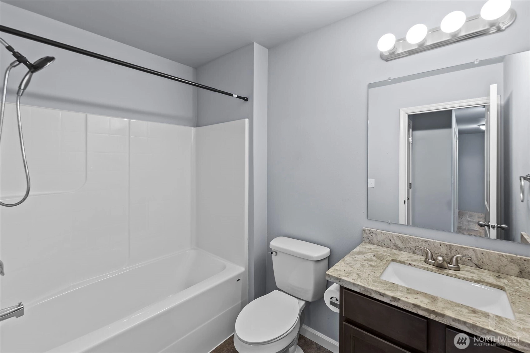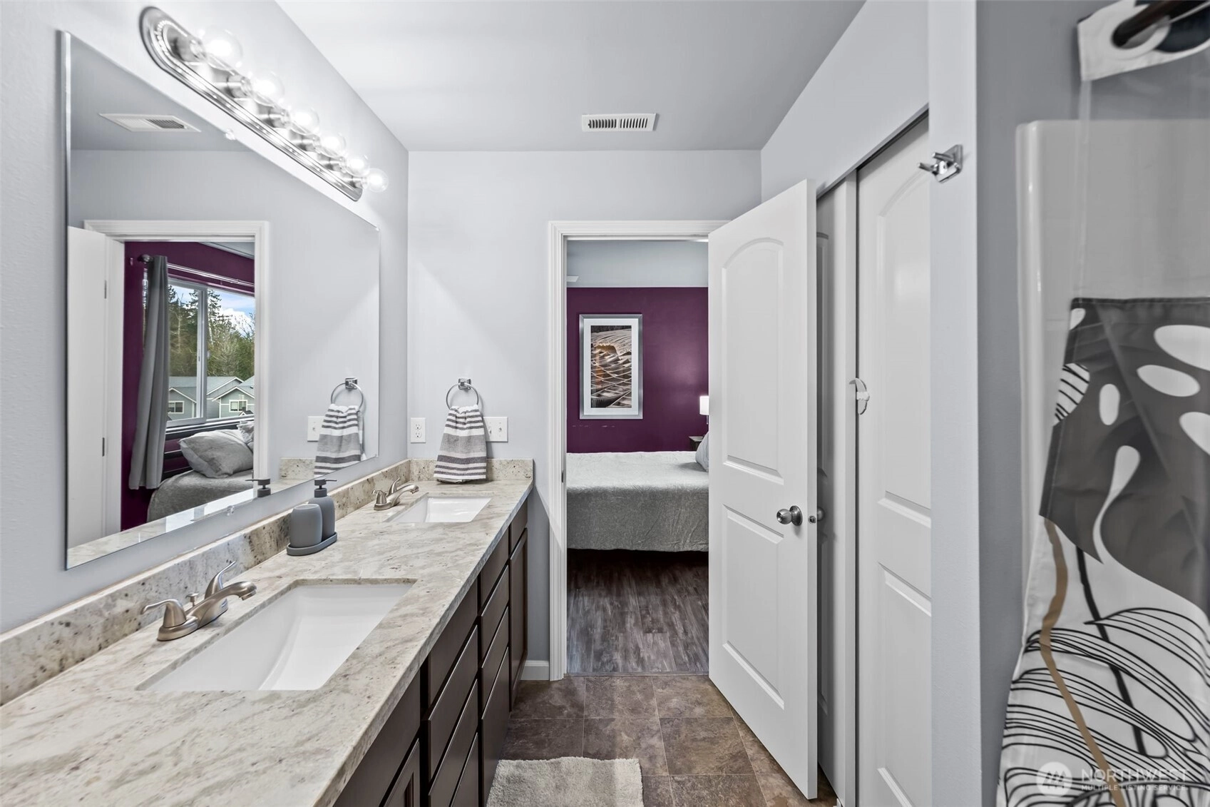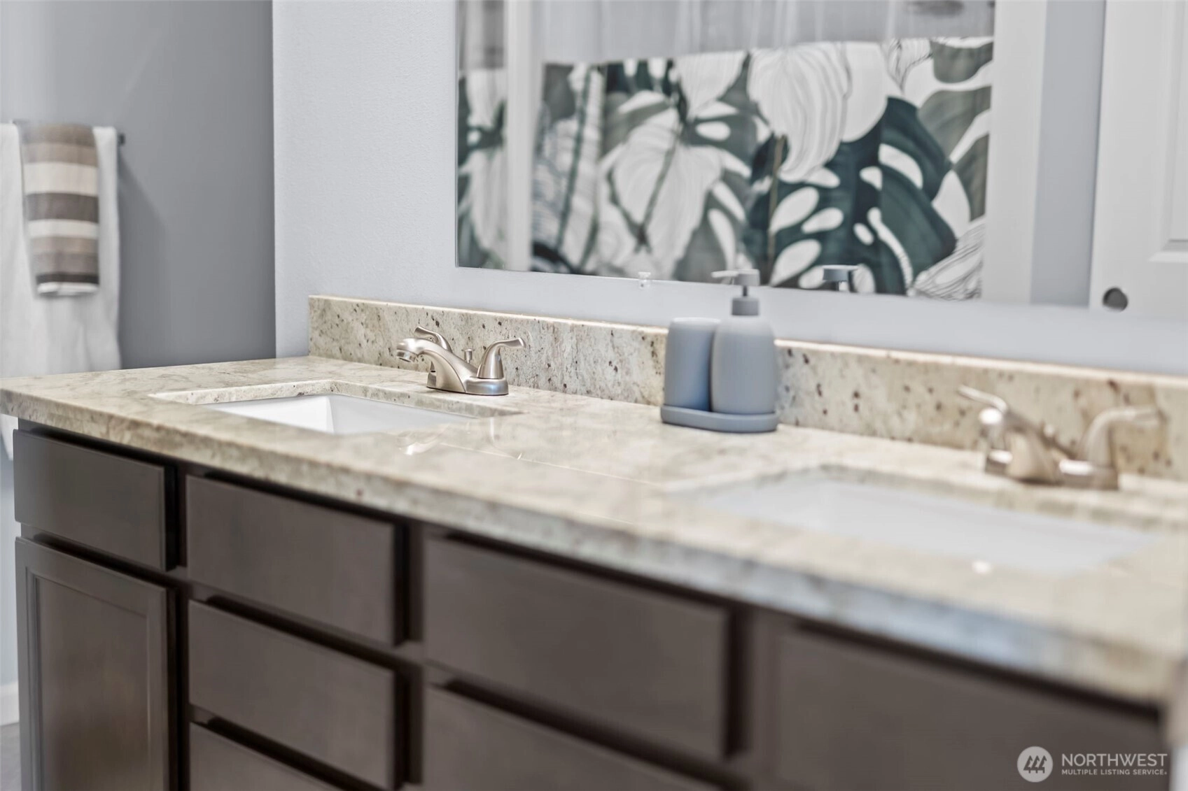 Spacious 5-Bedroom Home with Solar & Flexible Living Spaces! Modern and move-in ready, this 5 bed, 4 bath home offers nearly 2,600 sq ft of versatile living space. The open main level features a large great room, dining space, and kitchen with granite countertops, pantry, and plenty of space for entertaining. Bedrooms and bathrooms on every level provide flexibility for guests, multi-gen living, or home office space. The primary suite on top floor features French doors, double sinks, a large walk-in closet, and generous storage. The lower level flex space with bedroom and full bath offers a great option for guests, extended living, or private retreat. Upgrades include laminate flooring throughout and energy-saving solar panels, along with a heat pump with A/C for year-round comfort. Fully fenced backyard provides privacy and safe play or relaxing space. Located on a quiet dead-end street next to open space, yet just minutes to shopping, schools, Hwy 16, ferries, and an easy commute to Bremerton, Tacoma, or Seattle.