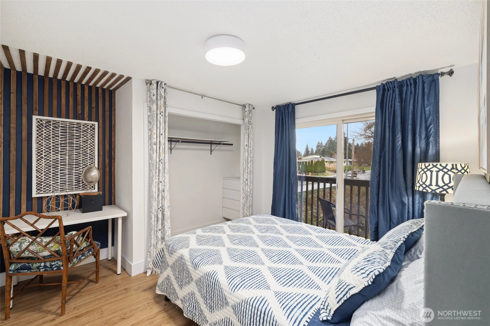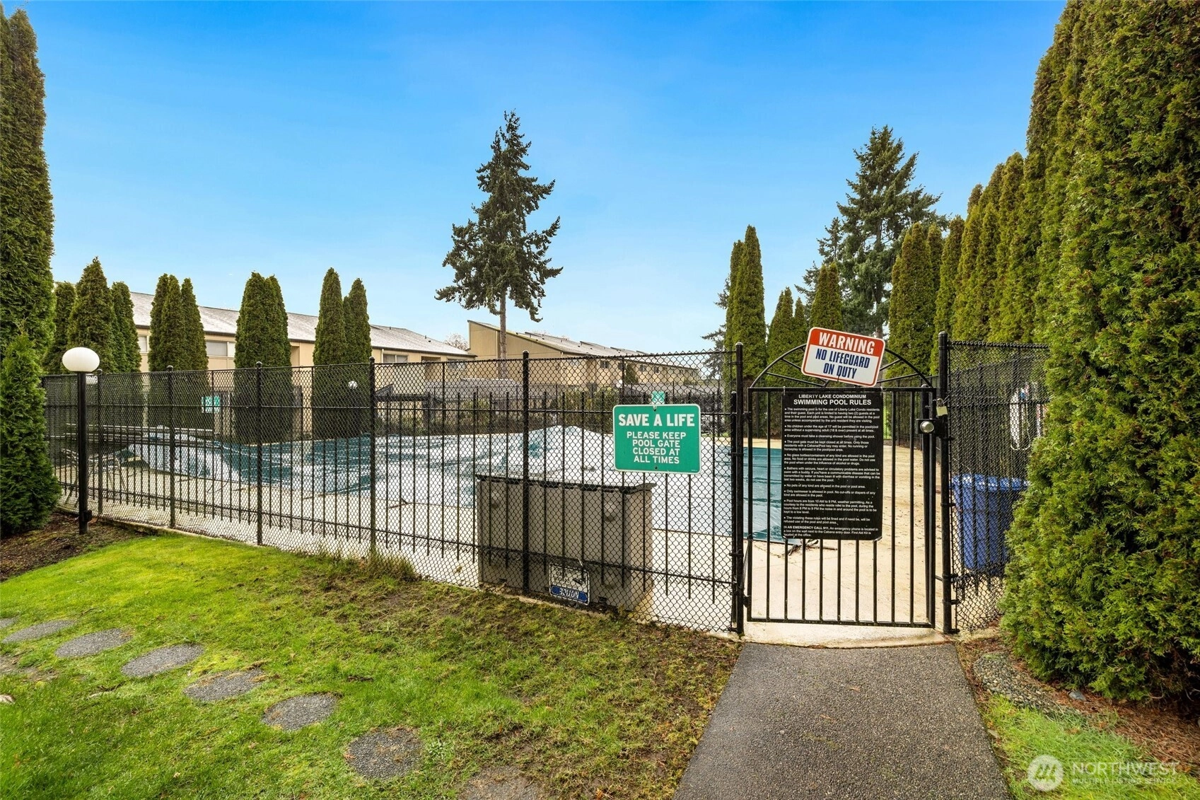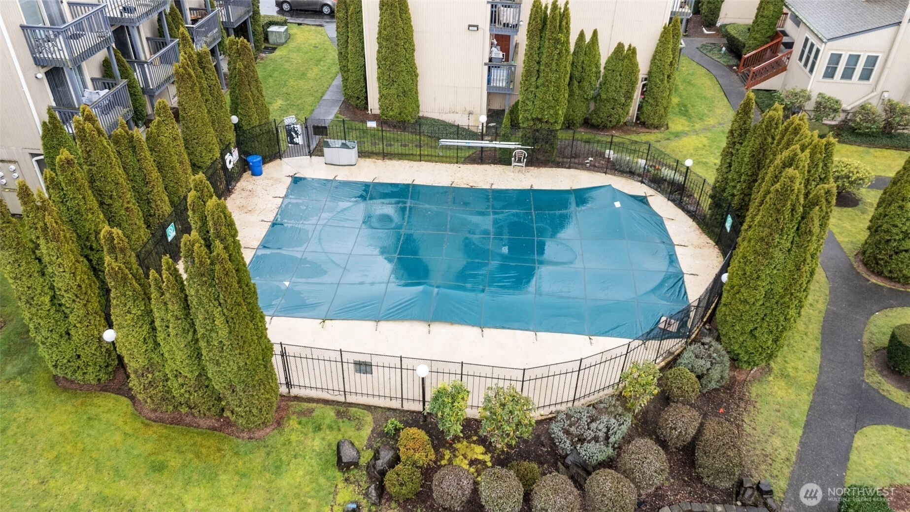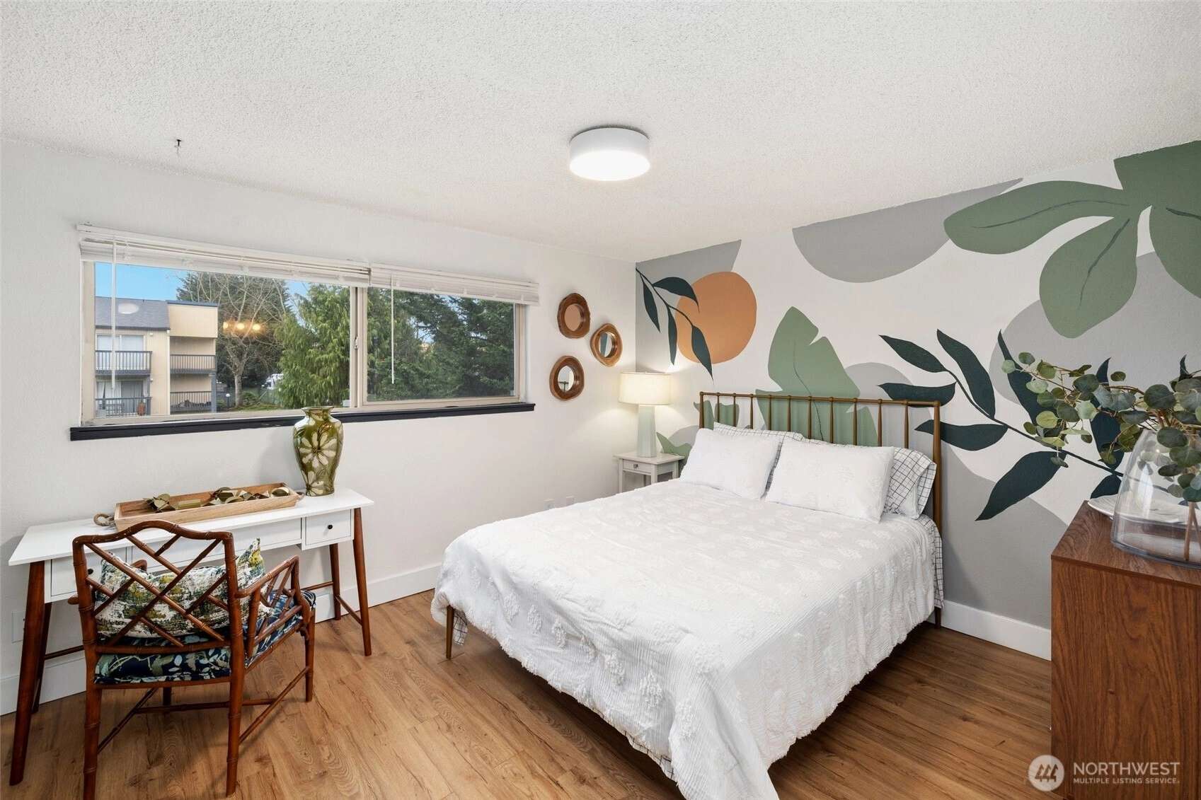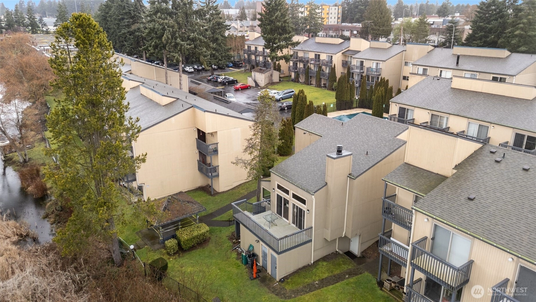 Beautifully updated 2 bed, 2 bath lakeview end unit condo with modern finishes throughout! Bright open living spaces featuring- new flooring and a striking mid-century style fireplace wall. Stylish kitchen with NEW quartz countertops, modern tile backsplash, updated cabinetry and stainless appliances. Spacious primary suite with private en-suite bath and additional bedroom has balcony access overlooking the lake- this second bedroom is perfect for guests or home office. There are 2 balconies and both have peaceful lake views. The community amenities include clubhouse, exercise room and outdoor pool. There is an assigned covered parking located directly in front of the unit and plenty of additional or guest parking. Convenient location-just minutes to new light rail transit center and near plenty of shopping and dining places.