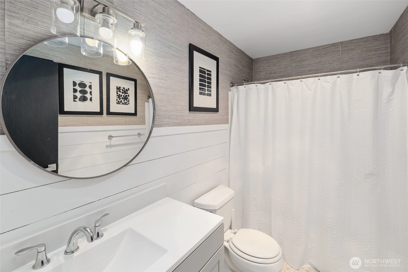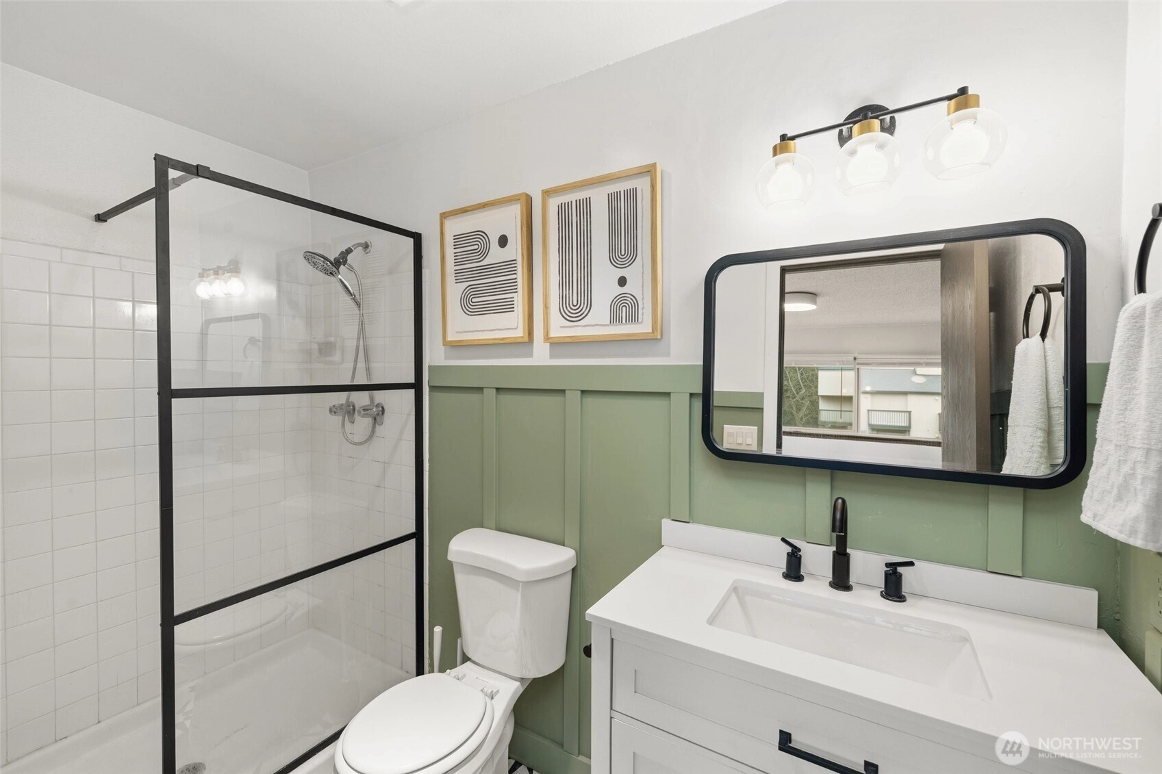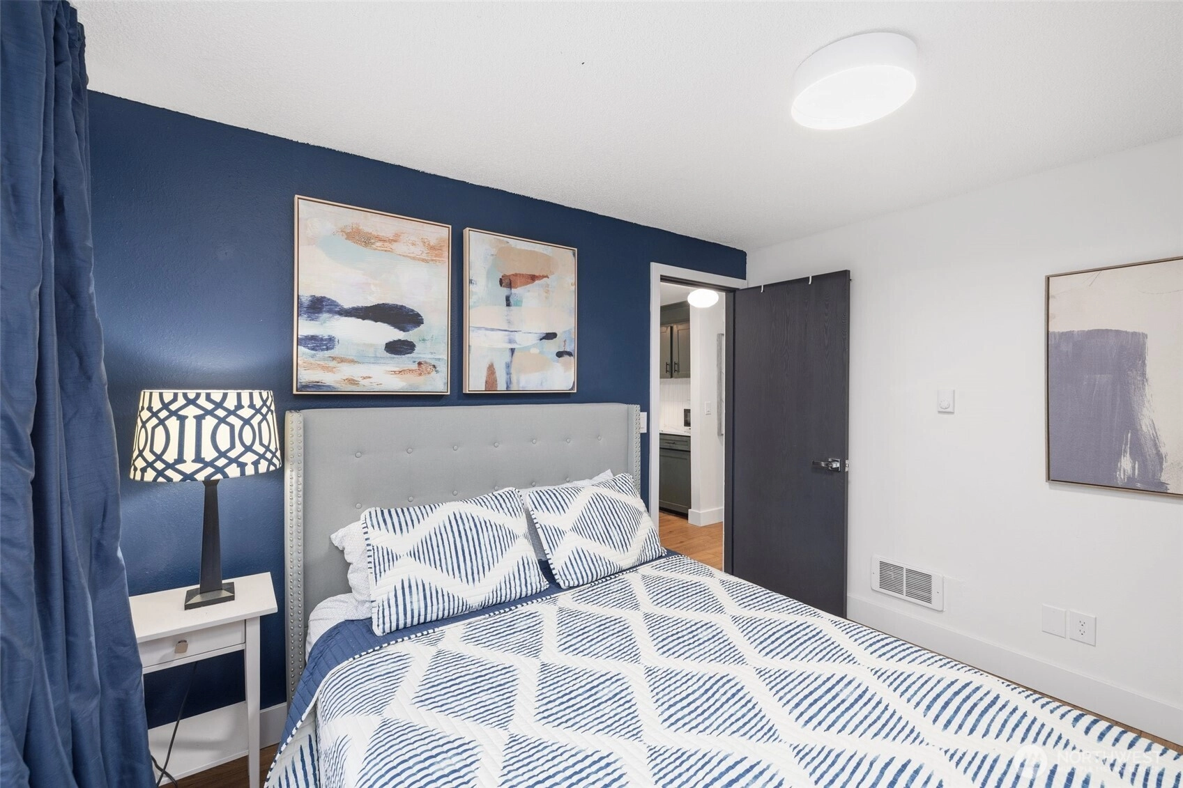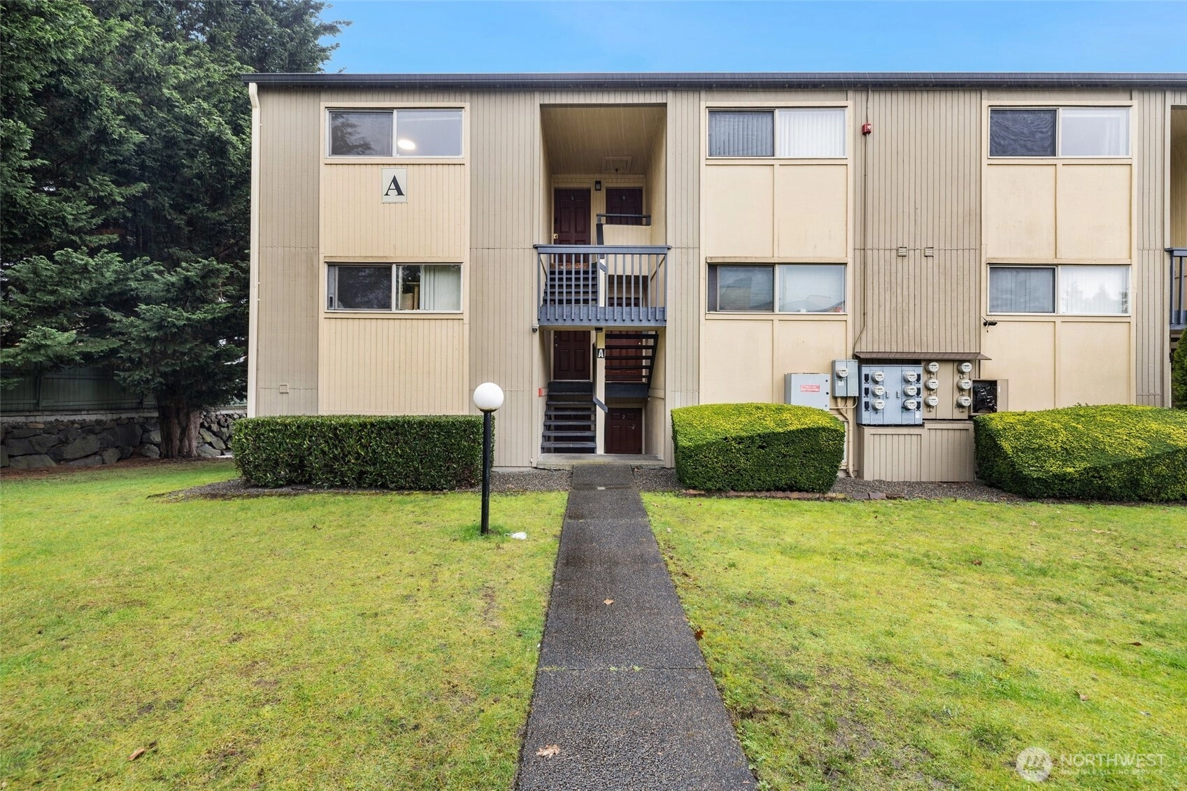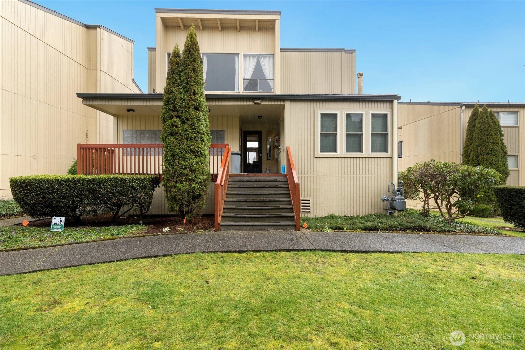 Beautifully updated 2 bed, 2 bath lakeview end unit condo with modern finishes throughout! Bright open living spaces featuring- new flooring and a striking mid-century style fireplace wall. Stylish kitchen with NEW quartz countertops, modern tile backsplash, updated cabinetry and stainless appliances. Spacious primary suite with private en-suite bath and additional bedroom has balcony access overlooking the lake- this second bedroom is perfect for guests or home office. There are 2 balconies and both have peaceful lake views. The community amenities include clubhouse, exercise room and outdoor pool. There is an assigned covered parking located directly in front of the unit and plenty of additional or guest parking. Convenient location-just minutes to new light rail transit center and near plenty of shopping and dining places.