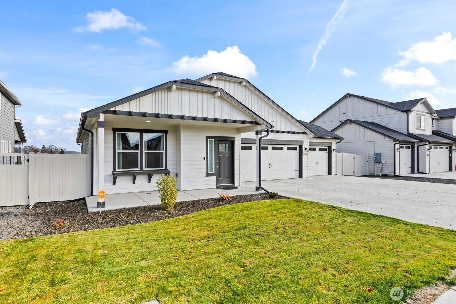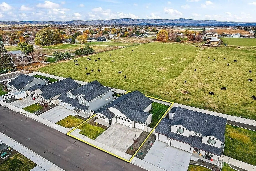 Views to impress! Built in 2023, this 1,574 sq. ft. single-level home offers the perfect combination of space, comfort, and modern living plus is beautifully appointed with the extras that do not come in a 'new' home! Window blinds, gas log fpl, 3 car gar, extended patio and did I mention VIEWS! The open-concept kitchen is a chef's dream, featuring abundant counter space, ample cabinetry, and a convenient breakfast bar for casual dining or entertaining. The expansive living room flows seamlessly into the adjoining dining area, creating a welcoming space for gatherings and everyday living. The spacious and private primary suite features a raised dual-vanity, a separate tub/shower, and an enormous walk-in closet. Two additional well-sized bedrooms share a second full bathroom with raised vanity, completing the home's thoughtful and functional layout. This warm and inviting 3-bedroom, 2-bath home offers the perfect blend of comfort, convenience, and privacy. A rare bonus is the peaceful farm and pasture views directly behind the home, providing beautiful scenery and added tranquility. Enjoy quiet mornings and the feeling of country living while still being right in town.