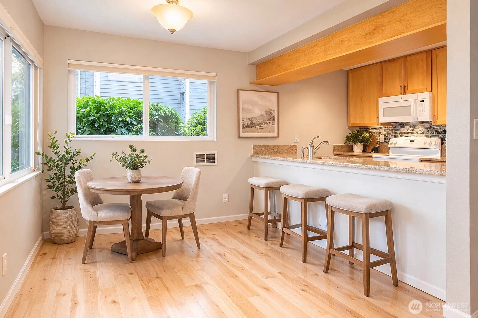 Prime Bellevue Location! – Affordable & Convenient Condominium Living. Welcome to Toria Wens Condominiums, a highly sought after 4 condo building, ground floor corner unit where homes rarely come available. Residents appreciate the privacy, quiet setting, and strong sense of community. This beautifully remodeled condo is completely move-in ready. Interior upgrades include engineered hardwood flooring, custom maple cabinetry in the kitchen and bathroom, quartz countertops, updated hardware, and a new water heater. Fresh interior paint creates a bright, welcoming space. The home also features an in unit washer and dryer, generous closet space, and an additional exterior storage closet outside on the back patio. Enjoy the private territorial view! The building is well maintained with excellent exterior paint and a new roof installed last year. Enjoy low HOA dues, no special assessments, friendly management, and strong HOA financials. Excellent location just minutes from transit, shopping, and recreation, 3 minutes to the South Bellevue Light Rail Station and 5 minutes to the Eastgate Park & Ride. Close to Norwood Village Park with tennis and pickleball courts, and Factoria Shopping Center. Owned by the same owner for over 20 years, this turn-key condo is a rare opportunity to own in Bellevue at an affordable price.