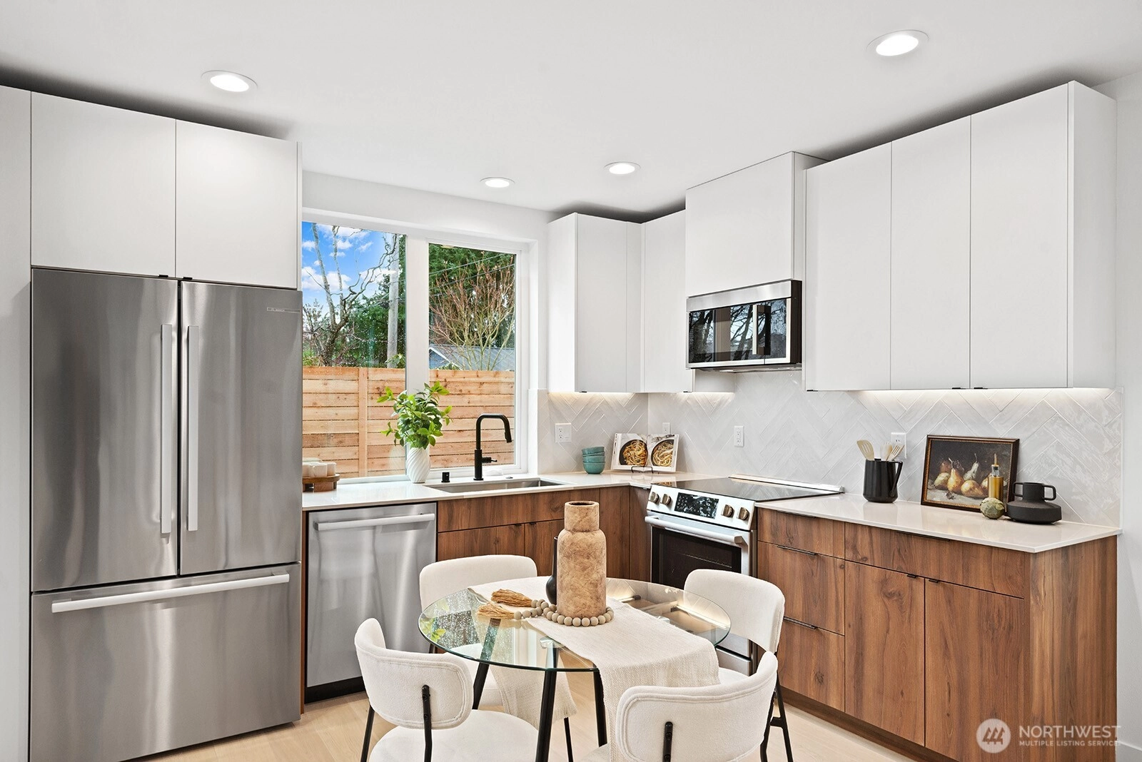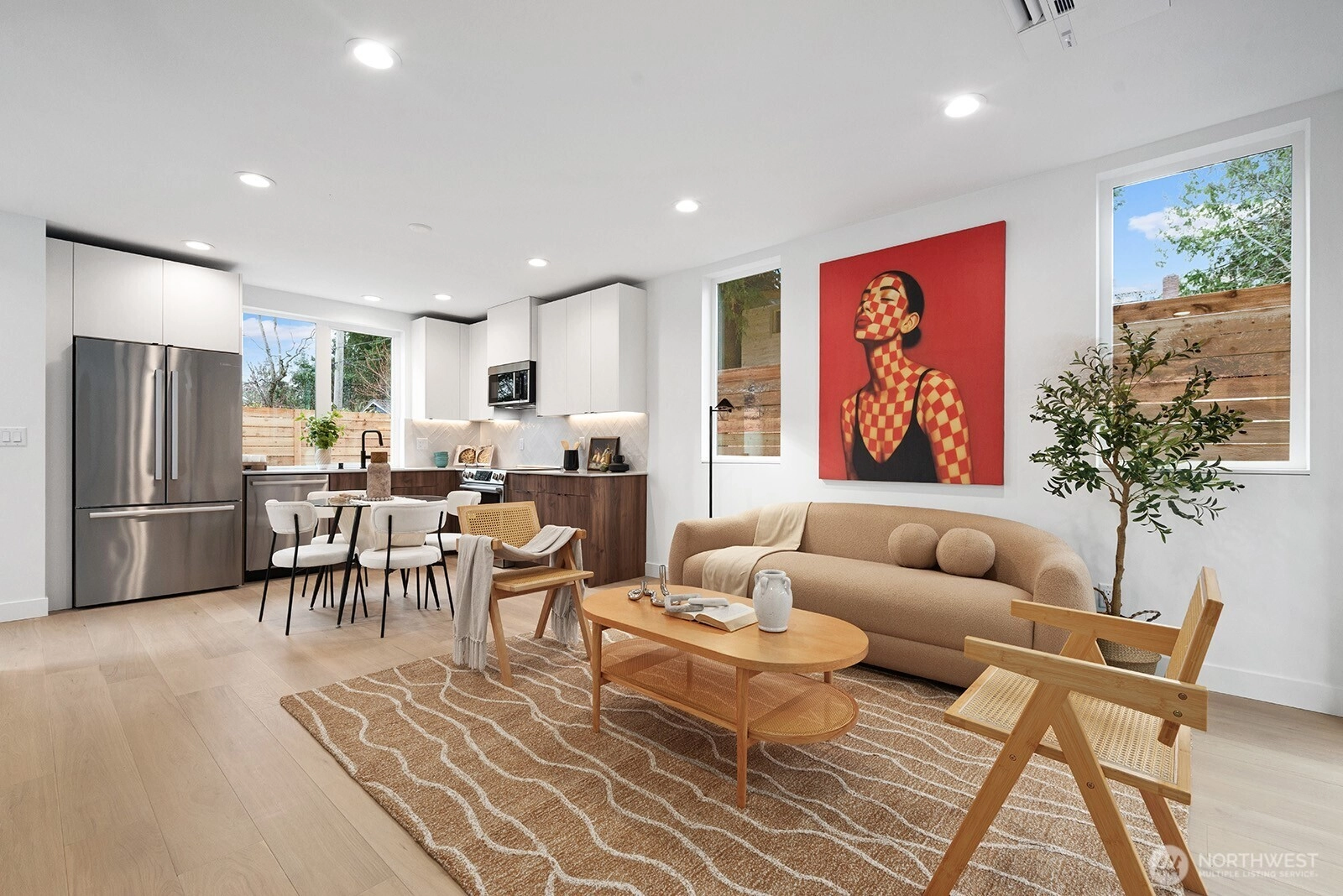 Stunning new construction thoughtfully completed by Coombes Development. This well-executed two-story 2 bed + DEN, 2.25 bath home combines elevated finishes, quality design, & functional living. Enjoy an open-concept main floor with expansive windows, a well-appointed kitchen, featuring high-end appliances + custom cabinetry & coveted main-floor powder room. The private and fenced back patio extends everyday comfort. Upstairs, find two spacious bedrooms, including the primary suite with vaulted ceilings, a large closet, and a luxurious bathroom + a separate office or den, and a full shared bathroom. Additional highlights include an attached 1-car garage, accent stair lighting, engineered hardwoods, Ring doorbell, and mini-splits for heating & cooling. Ideally situated near California Ave with boutique shops, restaurants, and more right at your fingertips.