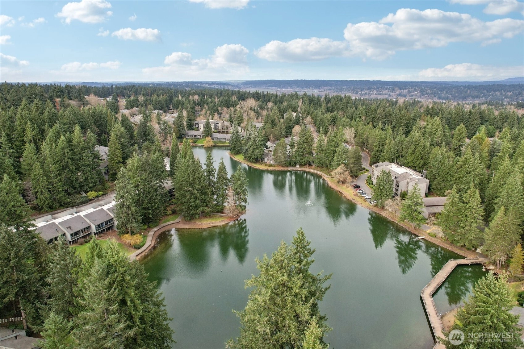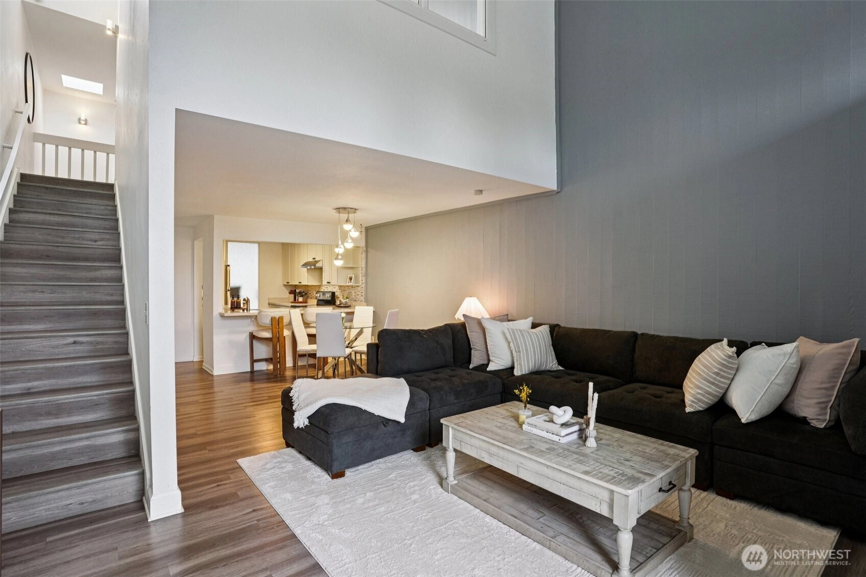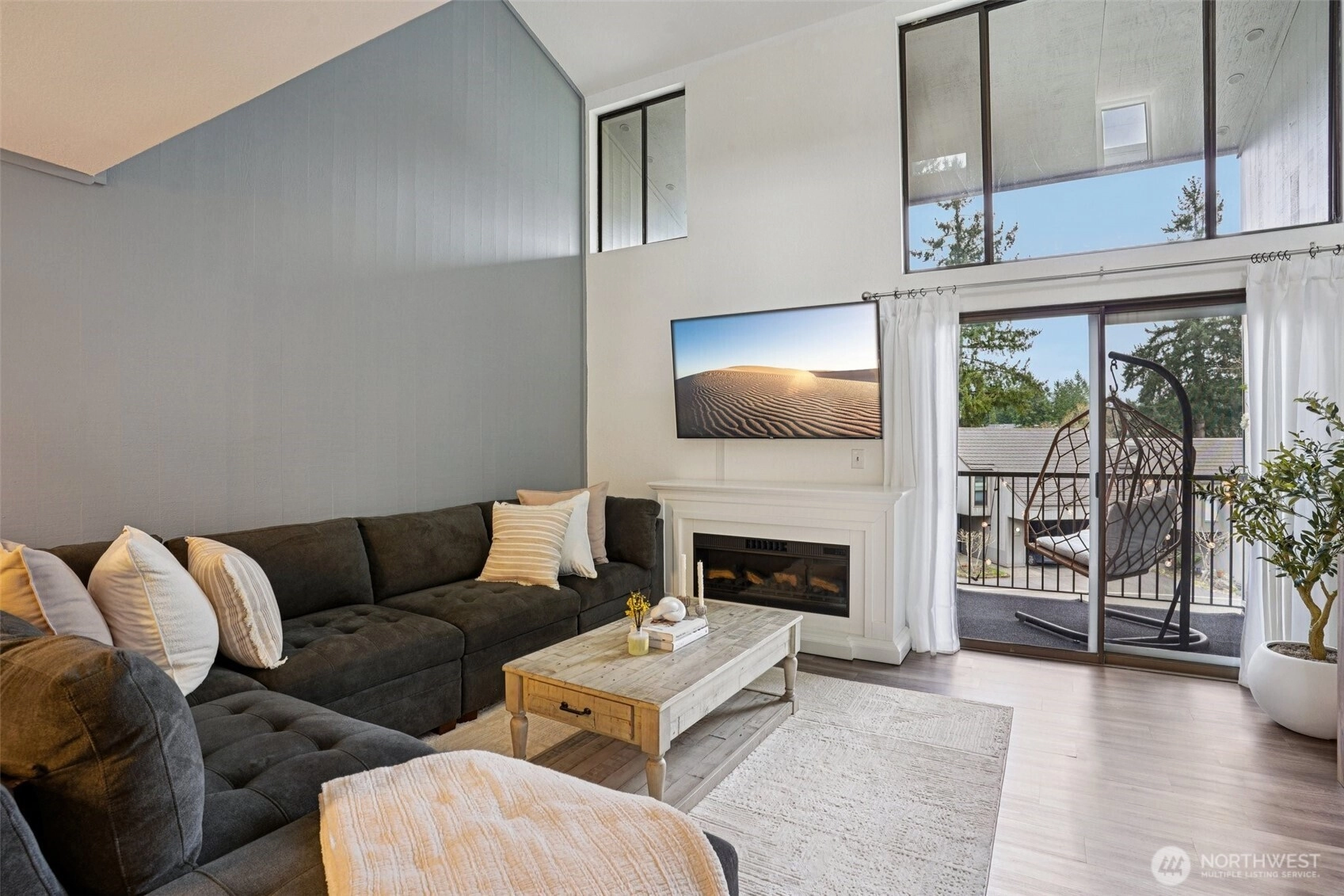Stunning 2 bed, 1.5 bath townhome in the highly sought-after Sixty-01 community. Light-filled interior with a dramatic wall of windows showcasing peaceful natural surroundings. Vaulted ceilings & skylights enhance the open, airy feel. Updated chef’s kitchen anchors the main living space. New front door, crown molding, fresh interior paint & modern fixtures throughout. Fully renovated upstairs bath & refreshed main-level half bath. Washer, dryer, and new electric fireplace mantel included. Attached carport + ample guest parking. Resort-style amenities include clubhouse, fitness center, pools, tennis courts & trails. Blocks to Microsoft Red-West, near Google & minutes to downtown Bellevue.