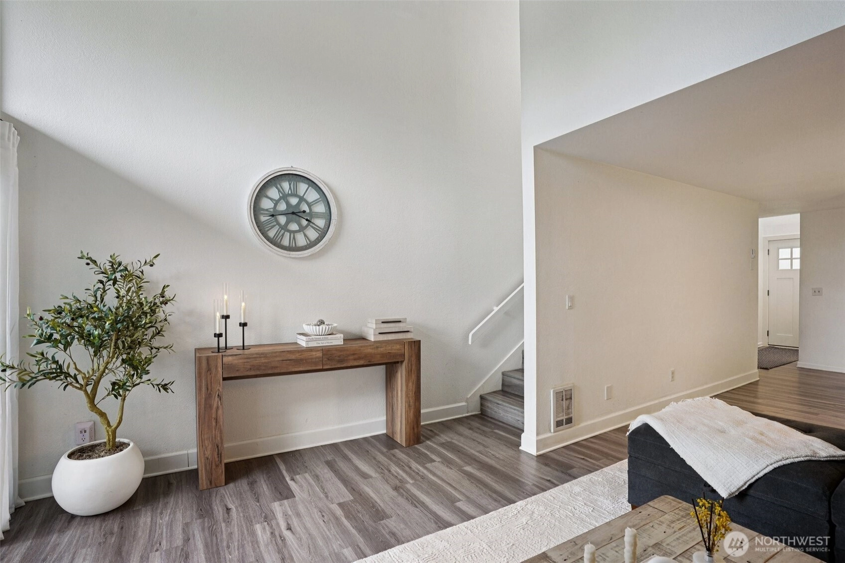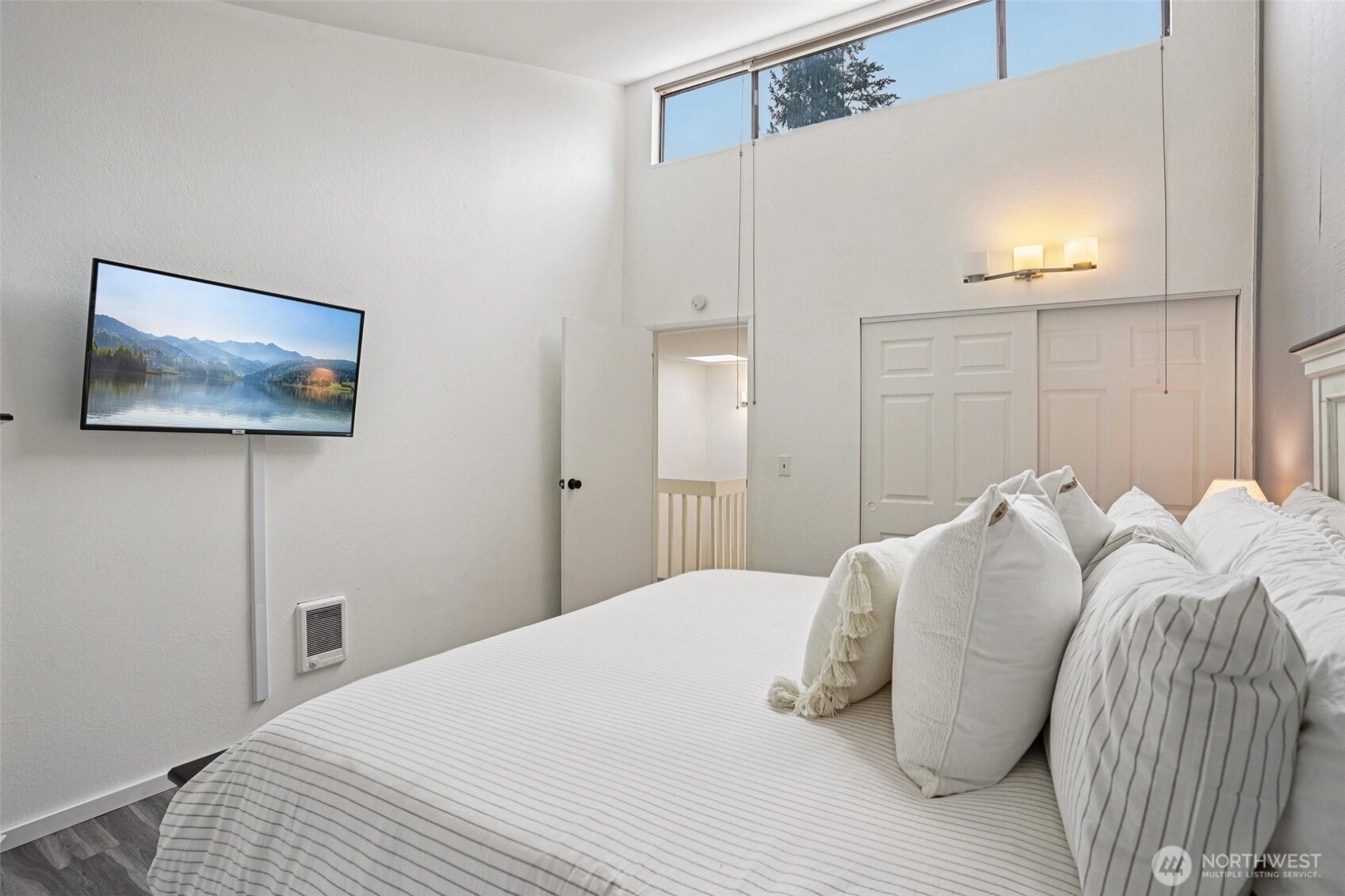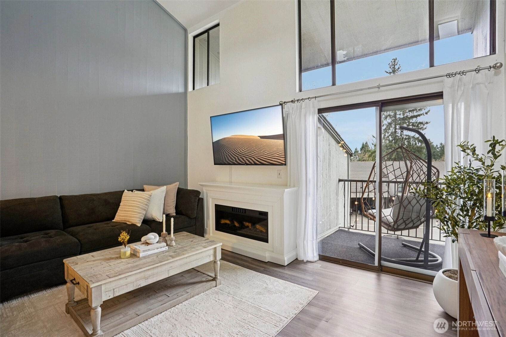 Stunning 2 bed, 1.5 bath townhome in the highly sought-after Sixty-01 community. Light-filled interior with a dramatic wall of windows showcasing peaceful natural surroundings. Vaulted ceilings & skylights enhance the open, airy feel. Updated chef’s kitchen anchors the main living space. New front door, crown molding, fresh interior paint & modern fixtures throughout. Fully renovated upstairs bath & refreshed main-level half bath. Washer, dryer, and new electric fireplace mantel included. Attached carport + ample guest parking. Resort-style amenities include clubhouse, fitness center, pools, tennis courts & trails. Blocks to Microsoft Red-West, near Google & minutes to downtown Bellevue.