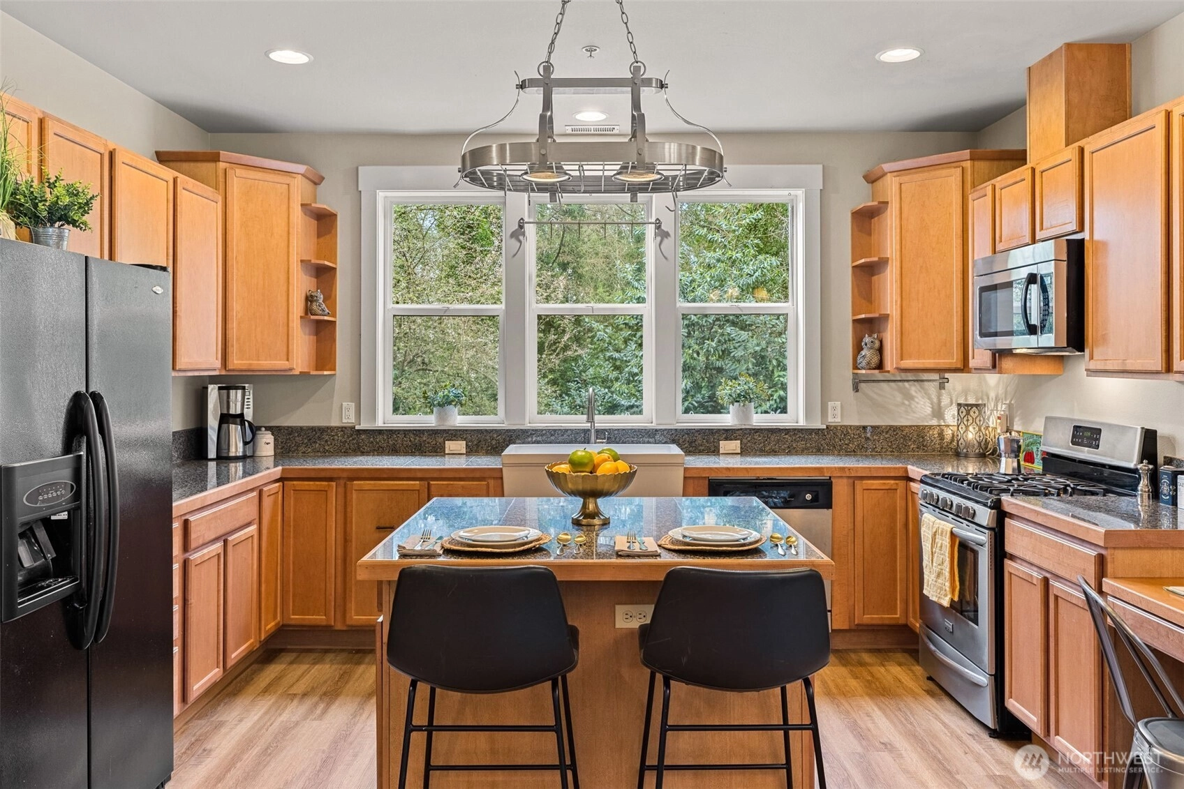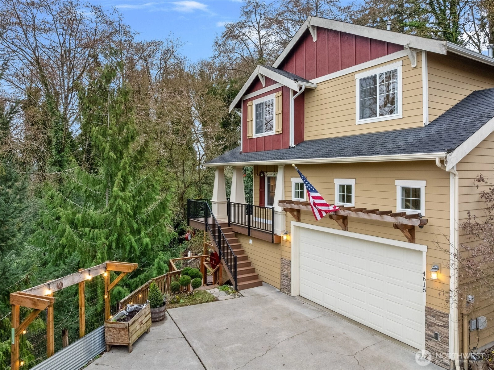 Welcome to this beautiful home located in the Foster area of Tukwila. This home is positioned to offer fantastic privacy! Sitting up at the end of a road, it feels like a private oasis. The Main Level offers a grand entryway with tall ceilings. The comfortable, open concept floor plan has a peaceful feeling as you look out to the trees through the large windows in the Kitchen, which has wonderful counter space, including an island. There is a formal Dining Room and a Living Room with a gas fireplace and built-in bookshelves. The Living Room opens to a new deck through the French doors. There is also an office on the Main Level. Upstairs is the spacious Primary Suite, featuring vaulted ceilings, walk-in closets, and a luxurious Primary Bathroom. 2 other good-sized bedrooms, a laundry room, and a full Bathroom are also on the second floor. The lower level has the fourth bedroom, a Rec Room, a full Bath, and a second Laundry/Utility room with a large sink and a butcher block counter. This level has its own entrance. It could make a nice ADU. Some recent updates include roof and gutter cleaning. New carpet on the upper floor and stairs. New LVP flooring on the entire main floor, bath, and study. Newer Furnace and hot water tank. New back patio, New front porch, New front stairs, Side decking and stairs, Utility room added to lower level with washer and dryer. This location is extremely convenient, providing easy access to the freeways, Southcenter Mall, and more!