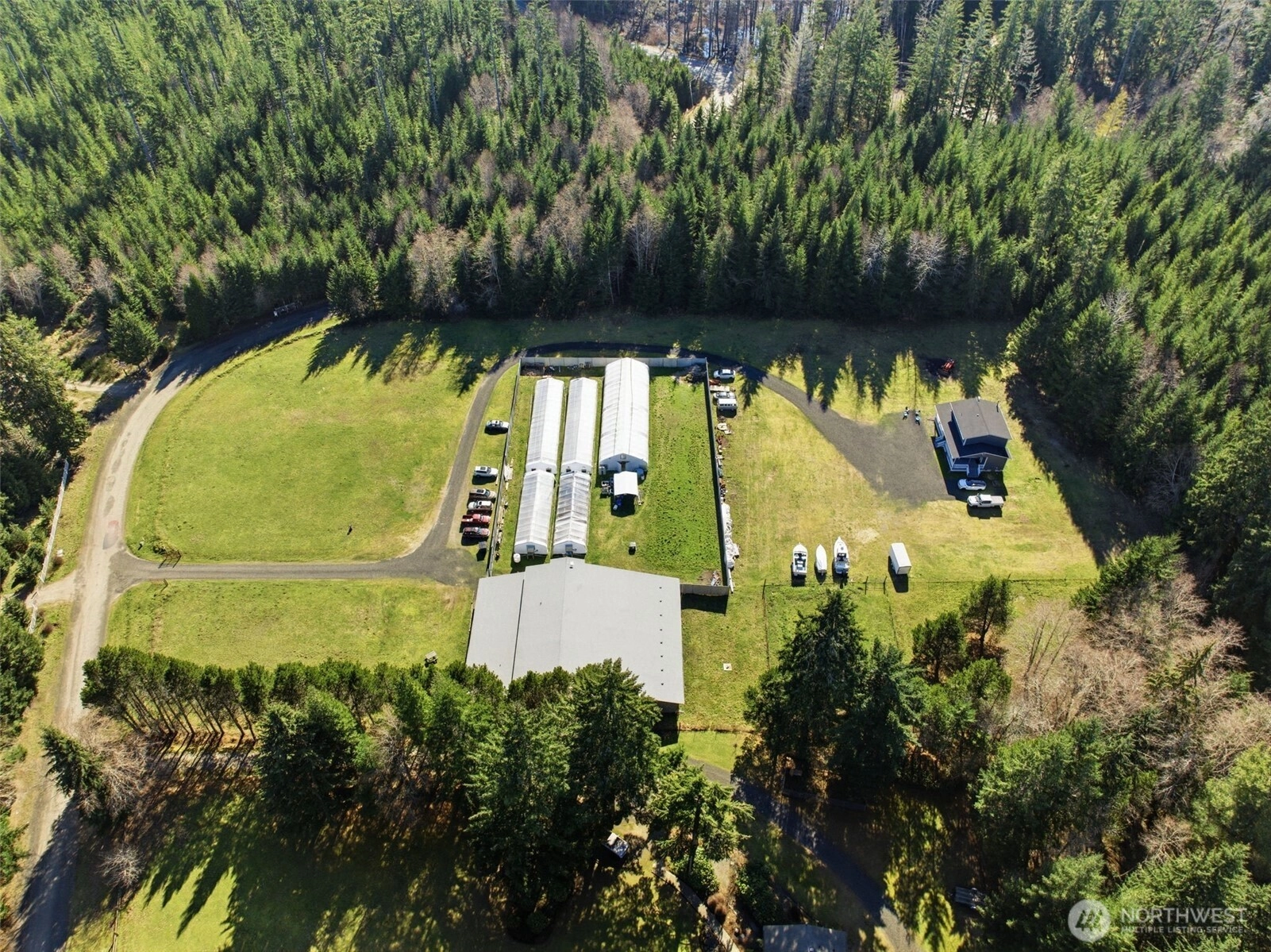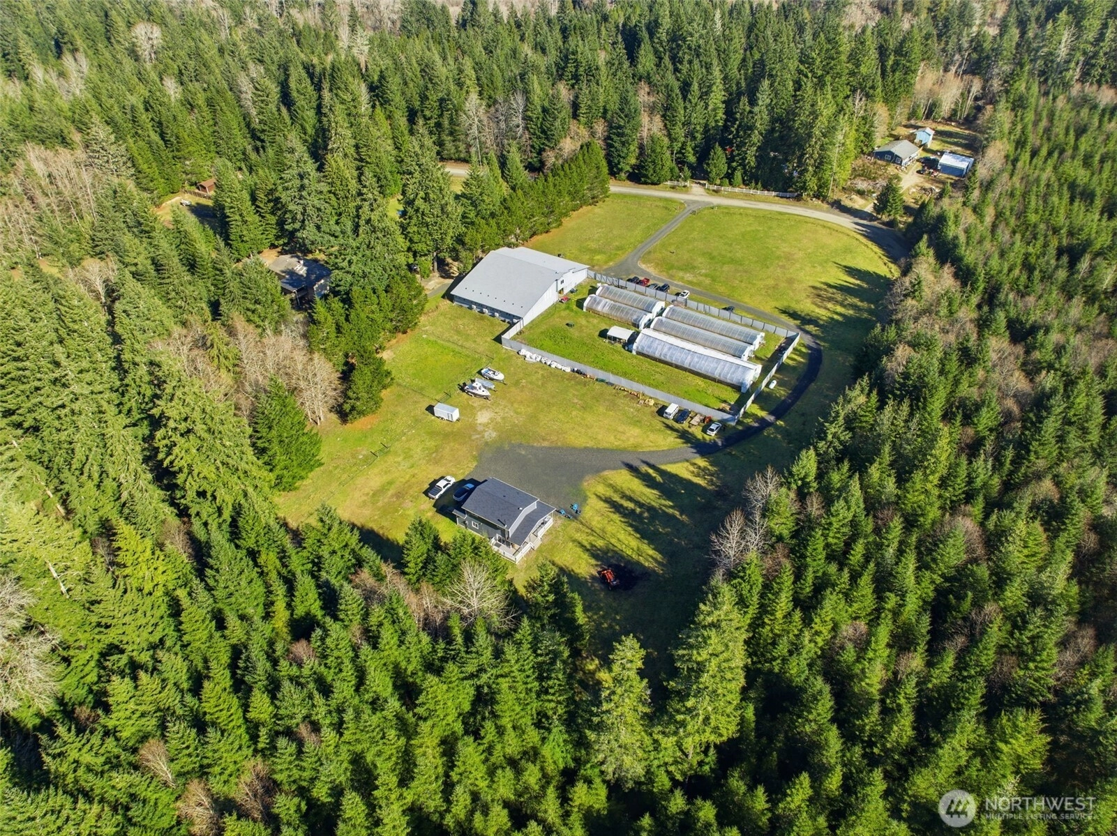 Nestled on a private road near Tahuya, this level five-acre property offers space, privacy, and direct connection to the outdoors. With over 23,000 acres of state forest adjoining two sides of the property, the setting feels expansive and secluded. Mornings arrive quietly here as open land stretches out around you and the surrounding forest creates a natural sense of calm. The home sits comfortably in the landscape, well cared for with a thoughtful floor plan that lives easily and feels connected to the surrounding land. Three bedrooms and practical living spaces support the rhythm of country life. A nearly 9,000 sq ft barn anchors the property and provides exceptional covered space rarely found on acreage of this size. Bring your horses, as the property includes two fully fenced paddocks with room for animals, equipment, and projects. Step beyond the property onto DNR land that unfolds into more than 200 miles of trails for off road vehicles, riding, hiking, and exploring. Surrounded by open space and forest, the setting offers a sense of privacy and connection to the outdoors that is increasingly difficult to find. The barn currently houses an award winning organic hobby farm. Business opportunity may be available. Please inquire for details. Seller financing available.
