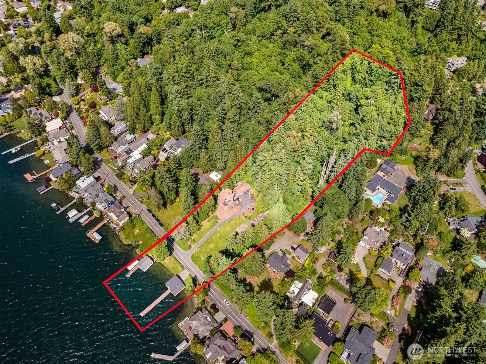 Lake Washington Waterfront Land & Luxury Estate Development Opportunity in Kirkland, WA. Rare opportunity to acquire nearly 5 acres of prime Lake Washington waterfront land on the highly desirable Holmes Point peninsula in Kirkland. This exceptional Kirkland waterfront property features 108 feet of west-facing no-bank shoreline on Lake Washington with breathtaking sunset views and direct water access. Ideal for a luxury waterfront estate, private compound, or boutique residential development, the property offers potential for up to 5 buildable homesites plus additional DADU opportunities (buyer to verify). This rare Lake Washington development opportunity is perfectly positioned for builders, investors, or buyers seeking to create a world-class Kirkland luxury waterfront estate. Custom architectural plans are available for a 14,000 square foot luxury waterfront home designed to maximize panoramic lake views, privacy, and modern indoor-outdoor living. Over $200,000 invested in surveys, site planning, and development studies helps accelerate the path to building. A grandfathered boathouse and dock may be remodeled and retained—an extremely rare feature for Lake Washington waterfront property providing flexibility for a private dock, waterfront estate access, or shared community waterfront amenity if developed into multiple homesites. One of the last large waterfront parcels in Kirkland and a truly once-in-a-generation Lake Washington luxury development opportunity.