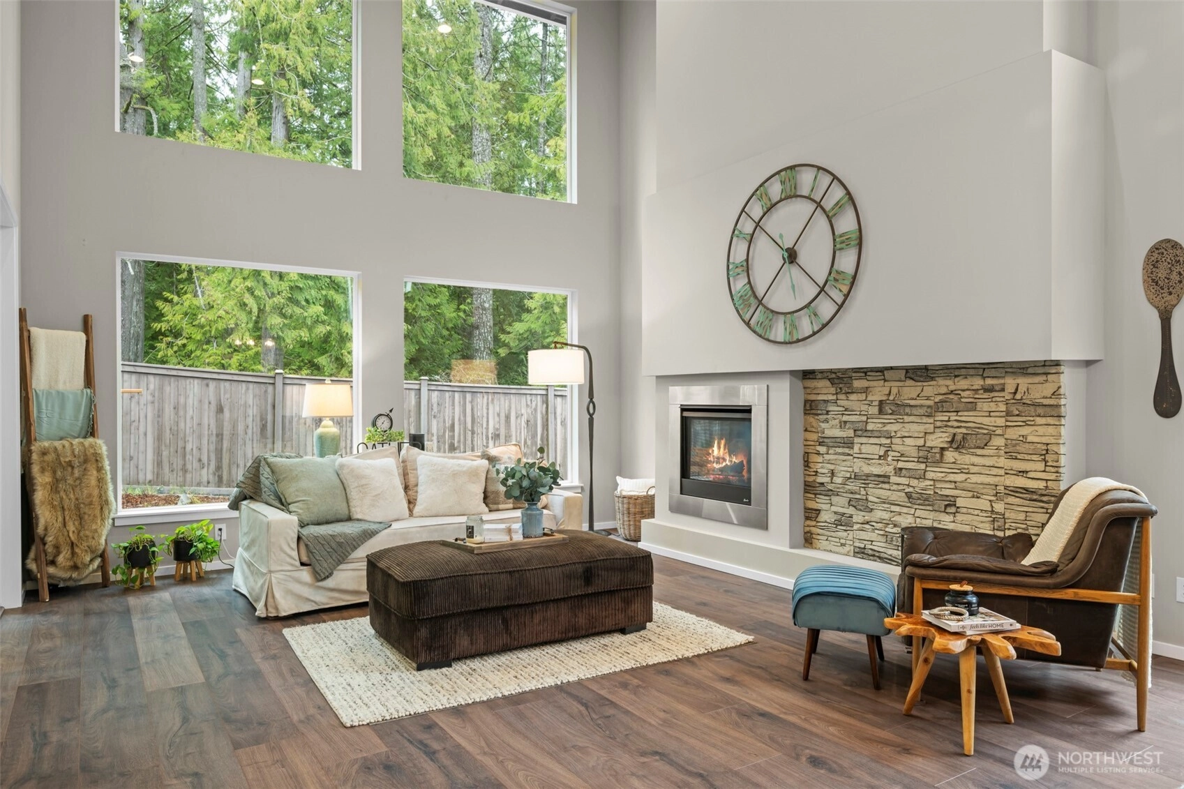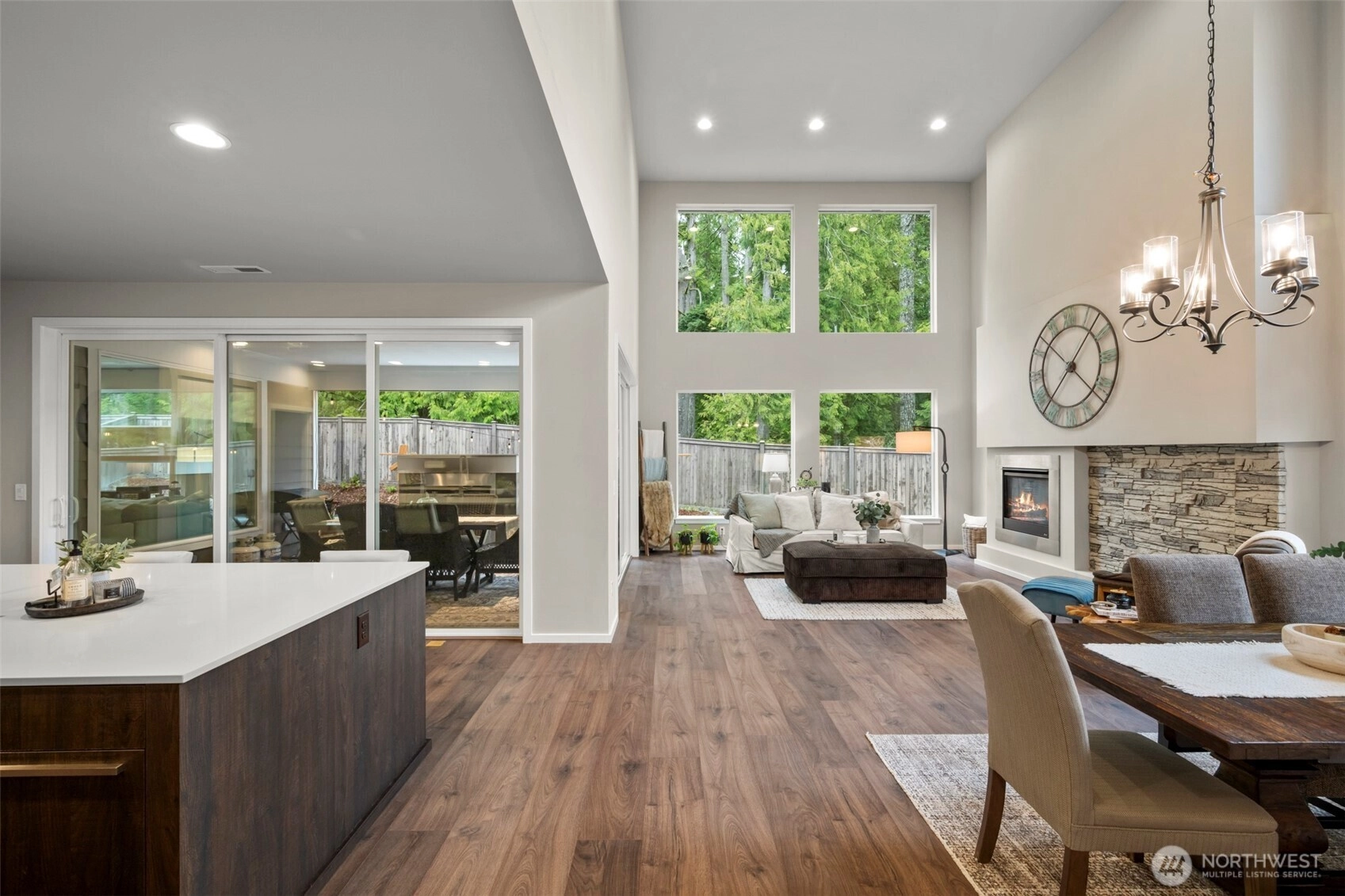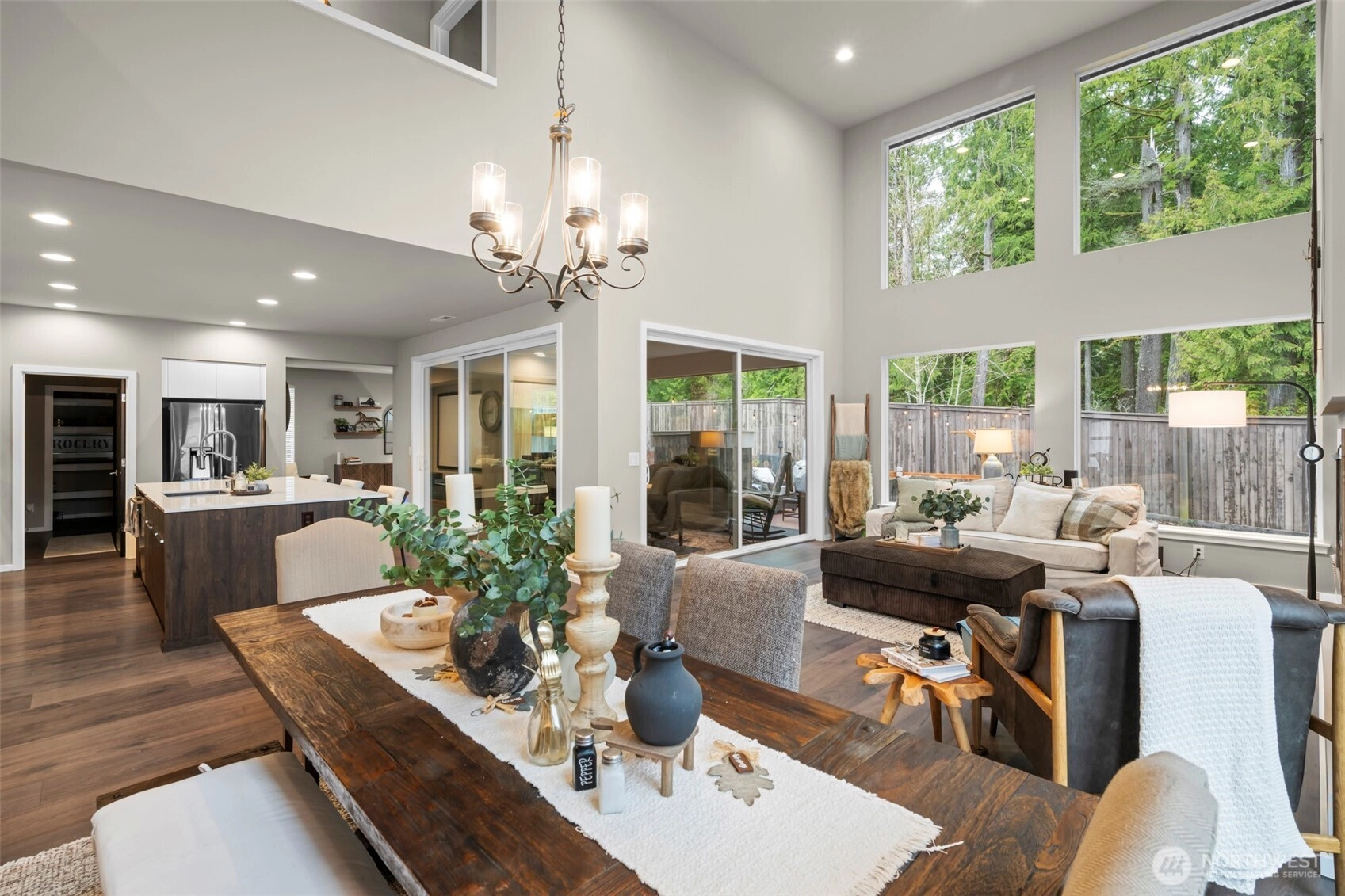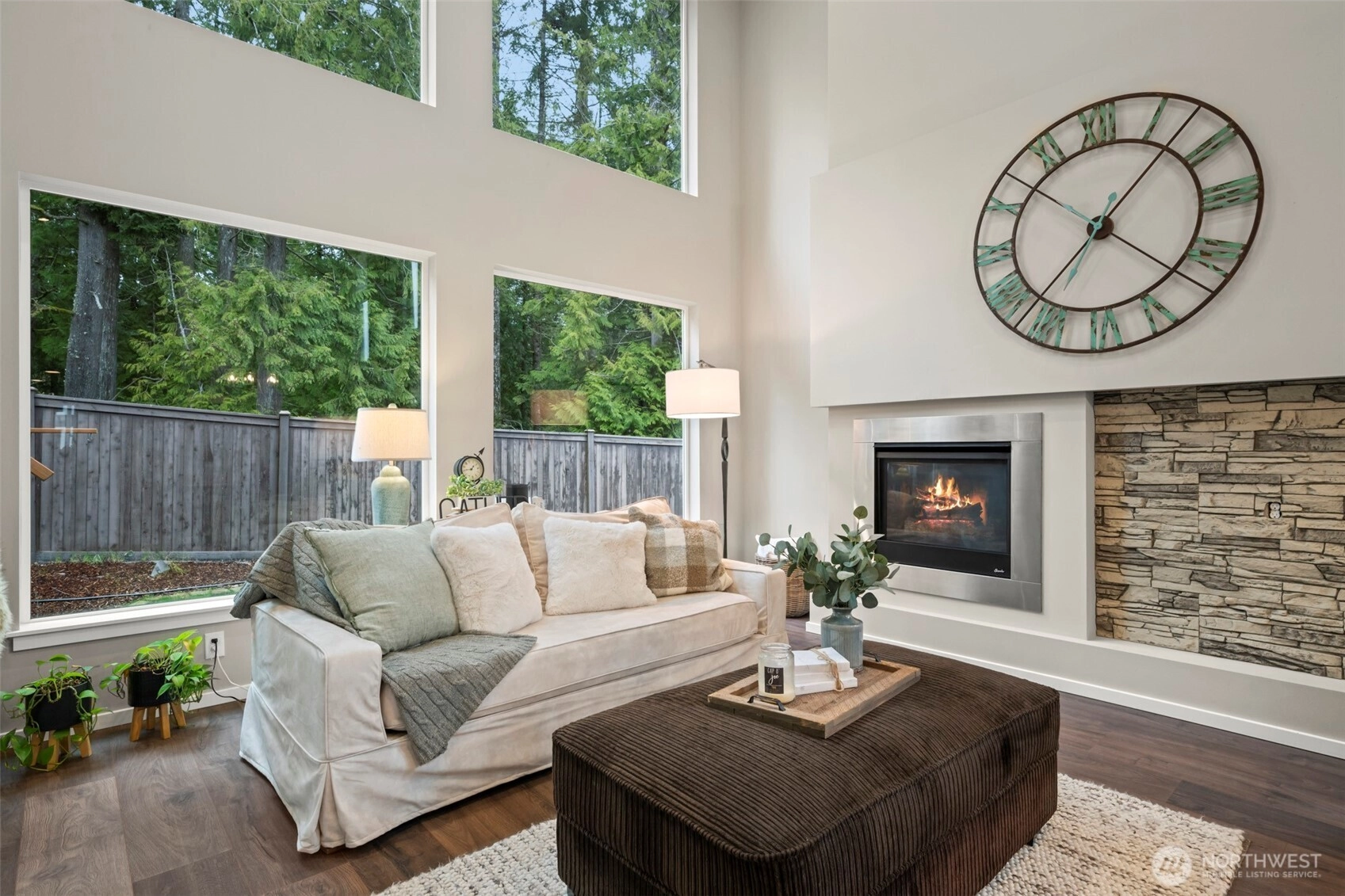 Luxurious and meticulously maintained home in the highly sought-after McCormick Woods Golf Club community. This stunning residence offers refined comfort and thoughtful design throughout. The main level features an expansive entry, private office, and a spacious living room with soaring vaulted ceilings and dramatic floor-to-ceiling windows that fill the space with natural light. The inviting family room is perfect for entertaining or relaxing movie nights with an extra-large theater screen. The chef’s kitchen blends elegance and functionality with an oversized island ideal for gathering and meal preparation, sleek stainless steel appliances, a gas cooktop, butler’s pantry with prep sink, and a spacious walk-in pantry for ample storage. A convenient mudroom off the garage keeps everyday essentials organized. Enjoy year-round outdoor living with a cozy fireplace and a fully fenced, private backyard. The expansive primary suite offers a spa-inspired 5-piece bath with soaking tub, spacious shower, private toilet room with bidet, and generous walk-in closet plus additional closet space. Additional features include a versatile loft, large bonus room, generous laundry room, abundant storage, and walk-in closets in every bedroom. A second primary or guest suite with private ensuite bath provides comfort and privacy. Experience golf course living with scenic trails and clubhouse amenities nearby.