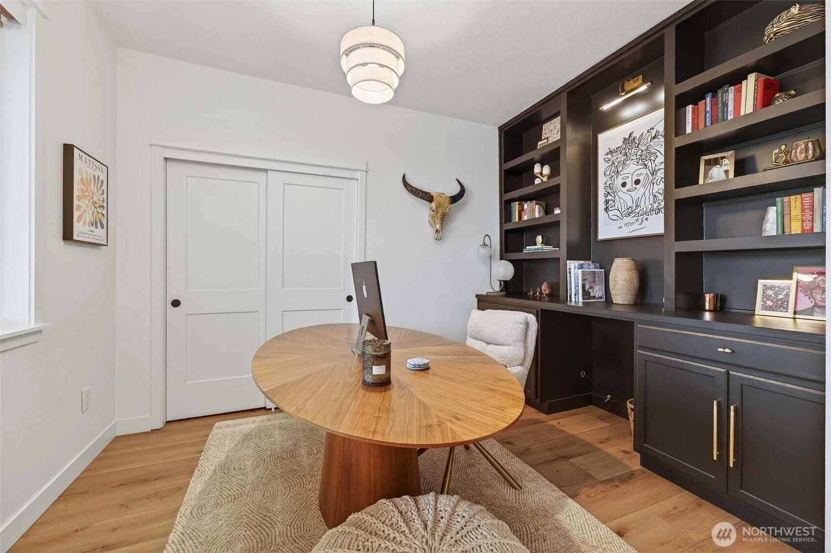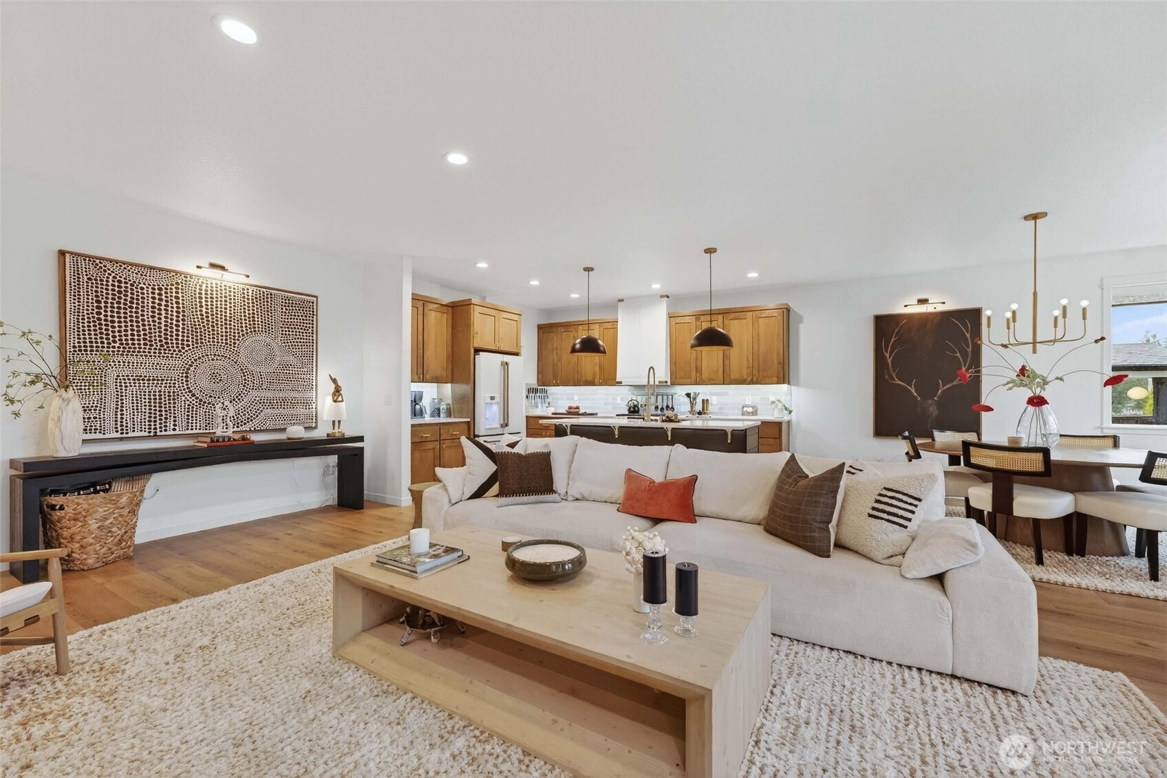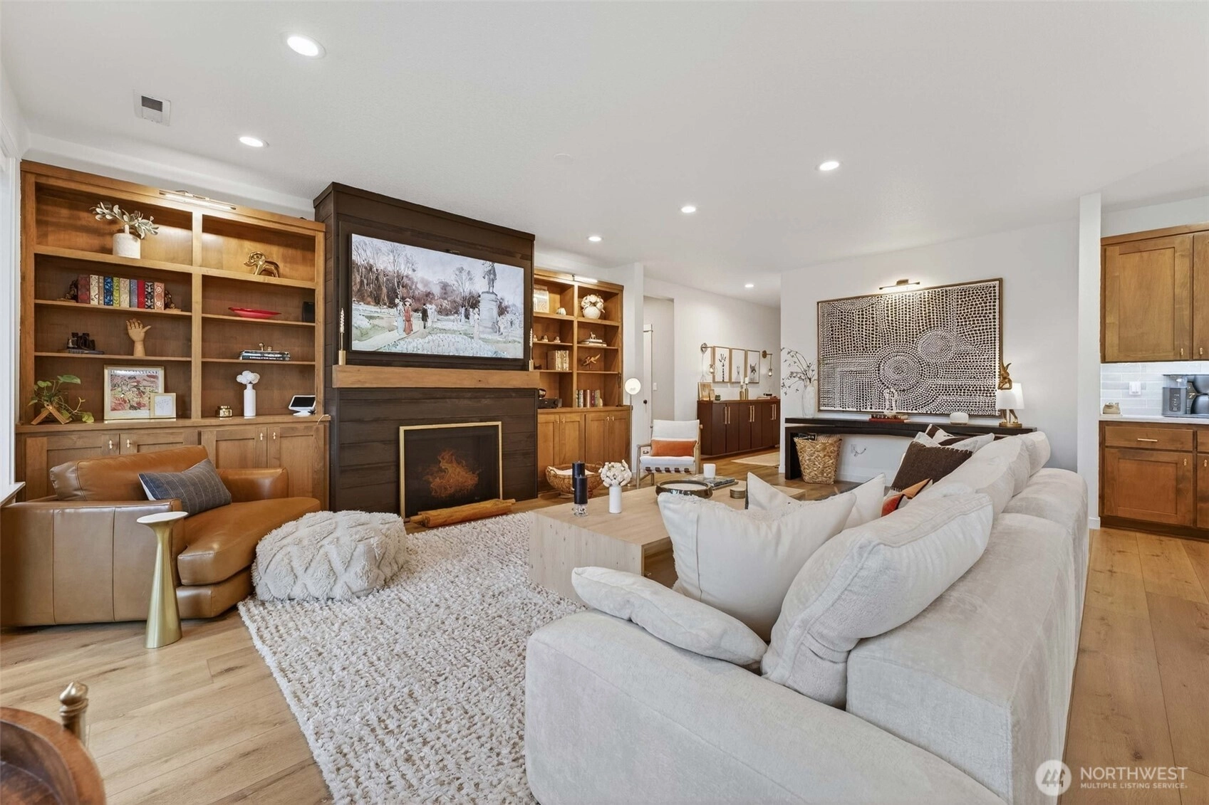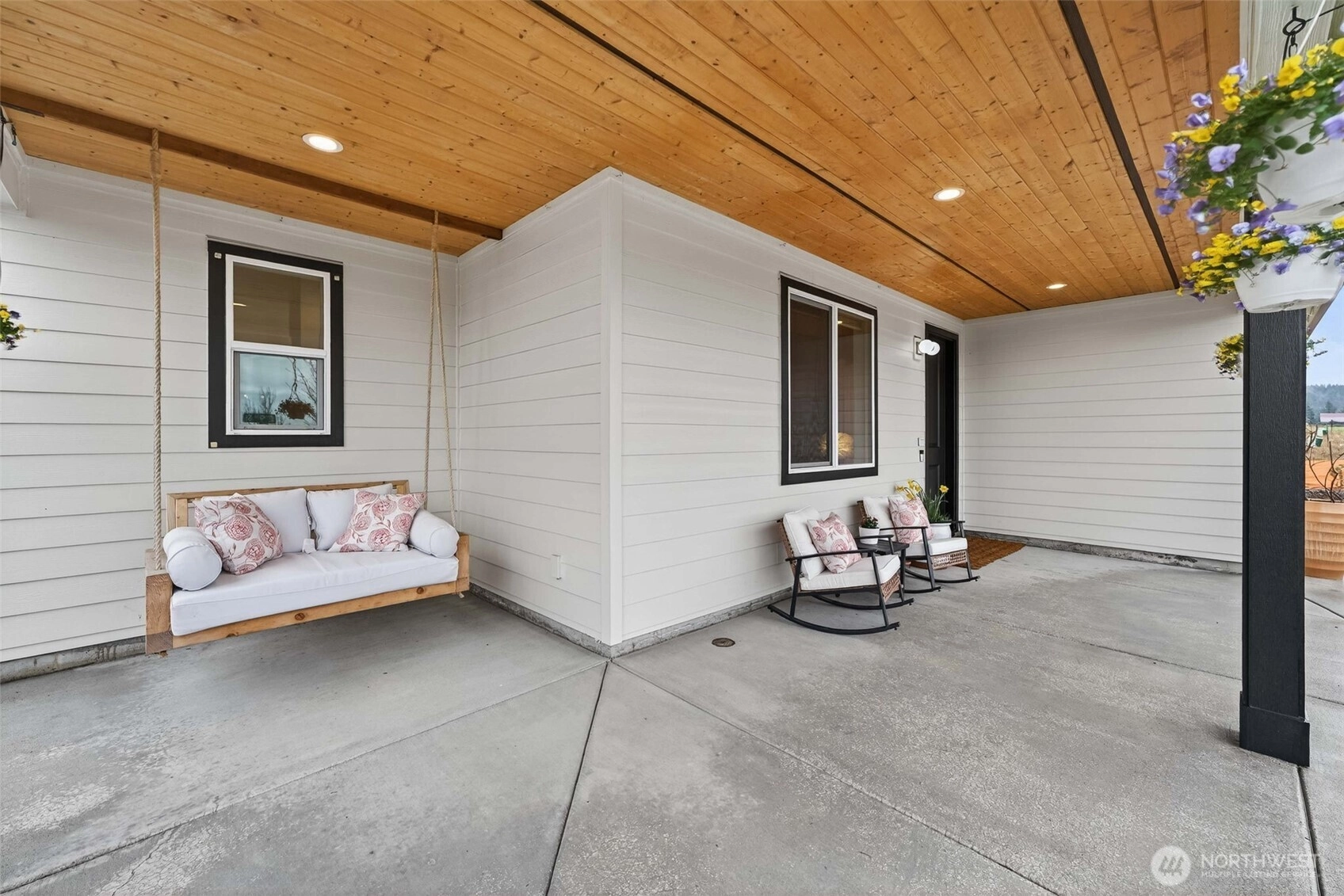 Tucked in a quiet La Center neighborhood with open pastures behind you, this home offers that rare country feel without sacrificing convenience. Hawks, deer, and the occasional coyote pass through the back field, yet coffee shops, bakeries, parks, and casinos are just minutes away. The sellers were meticulous in their remodel, and it shows this home lives and feels brand new. The expanded kitchen and dining area is the heart of the home, featuring quartz countertops, a large island, gas appliances, and wraparound windows that flood the space with natural light. The living room anchors it all with a shiplap gas fireplace and custom built-ins. A dedicated office with stunning built-ins could easily serve as a second main-level bedroom. The primary suite is a true retreat with tray ceilings, a double-door entry into the bath, soaking tub, walk-in tile shower, his-and-her vanities, and a large walk-in closet. Upstairs adds two more bedrooms, a full bath, and flexible storage space. Out front, the covered porch and porch swing are made for warm summer evenings. Out back, the cedar-planked covered deck keeps you dry rain or shine while you entertain and take in views of the hand-dug koi pond, mature landscaping, and open pasture beyond. It shows like a model home — without the custom-built price tag. In a community with continued growth on the horizon, this one is hard to beat. Financing Incentives are available on all properties from SIRVA Mortgage, Inc