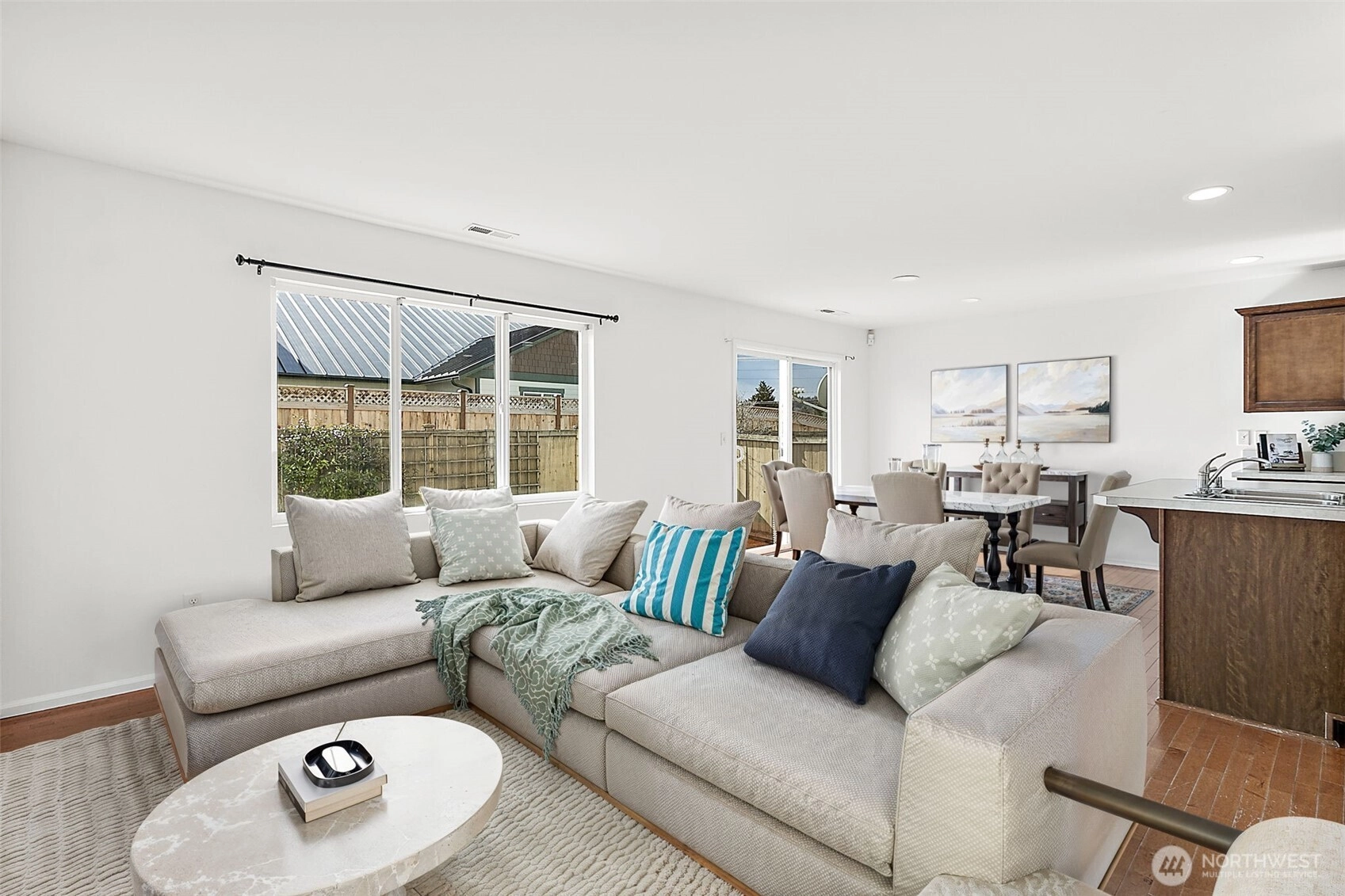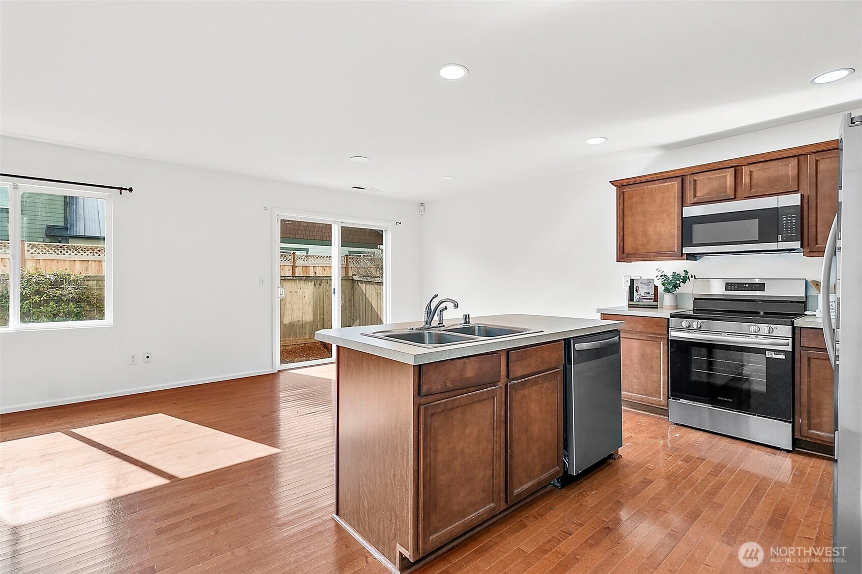 Imagine waking up to stunning Mt. Rainier views from your Primary Suite! This bank-owned REO DR Horton home features 4 bedrooms and 2.25 baths. The main floor offers a well-designed great room with hardwood flooring throughout and a two-seat breakfast bar perfect for casual dining. The Primary Suite boasts an extra-large walk-in closet and a two-person shower. Enjoy new carpet, fresh paint, and all new appliances—making this home move-in ready! Easy access to I-5, parks, shopping, JBLM, and more! Being an REO property, the home is sold as-is.