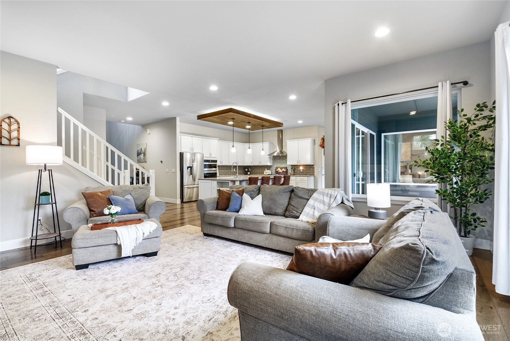 Located in the highly sought-after Glenmore community, this beautifully designed home sits on a spacious corner lot along a quiet cul-de-sac surrounded by acre-plus homesites & an established neighborhood trail system.With a thoughtful floor plan & expansive living spaces, the home blends comfort, flexibility, & modern design while maintaining warmth. The main level features an open concept layout w/10-foot ceilings, 8-foot interior doors, & engineered hickory hardwood flooring throughout. A wall of windows across the rear of the home, including a large sliding door to the patio, fills the main level w/natural light while offering views of the backyard. At the heart of the home is a gourmet kitchen featuring double ovens, built-in microwave, architectural ceiling detail w/accent lighting, & an oversized executive island that creates the perfect space for cooking, & entertaining.The main floor also includes a private bdrm & bathroom ideal for guests or multigenerational living, along w/a built-in desk area that can serve as a homework station, remote workspace, or coffee bar. Upstairs, the expansive primary suite offers room for a seating area along w/a spacious bathroom featuring a soaking tub, separate shower, & large walk-in closet. The upper level also includes 4 bedrooms, 3 full bathrooms, 2 bonus rms ideal for a media room, office, or play space, & a centrally located laundry rm. Don't miss the extra deep RV Garage with hookups and flexible use! $5,000 seller credit!