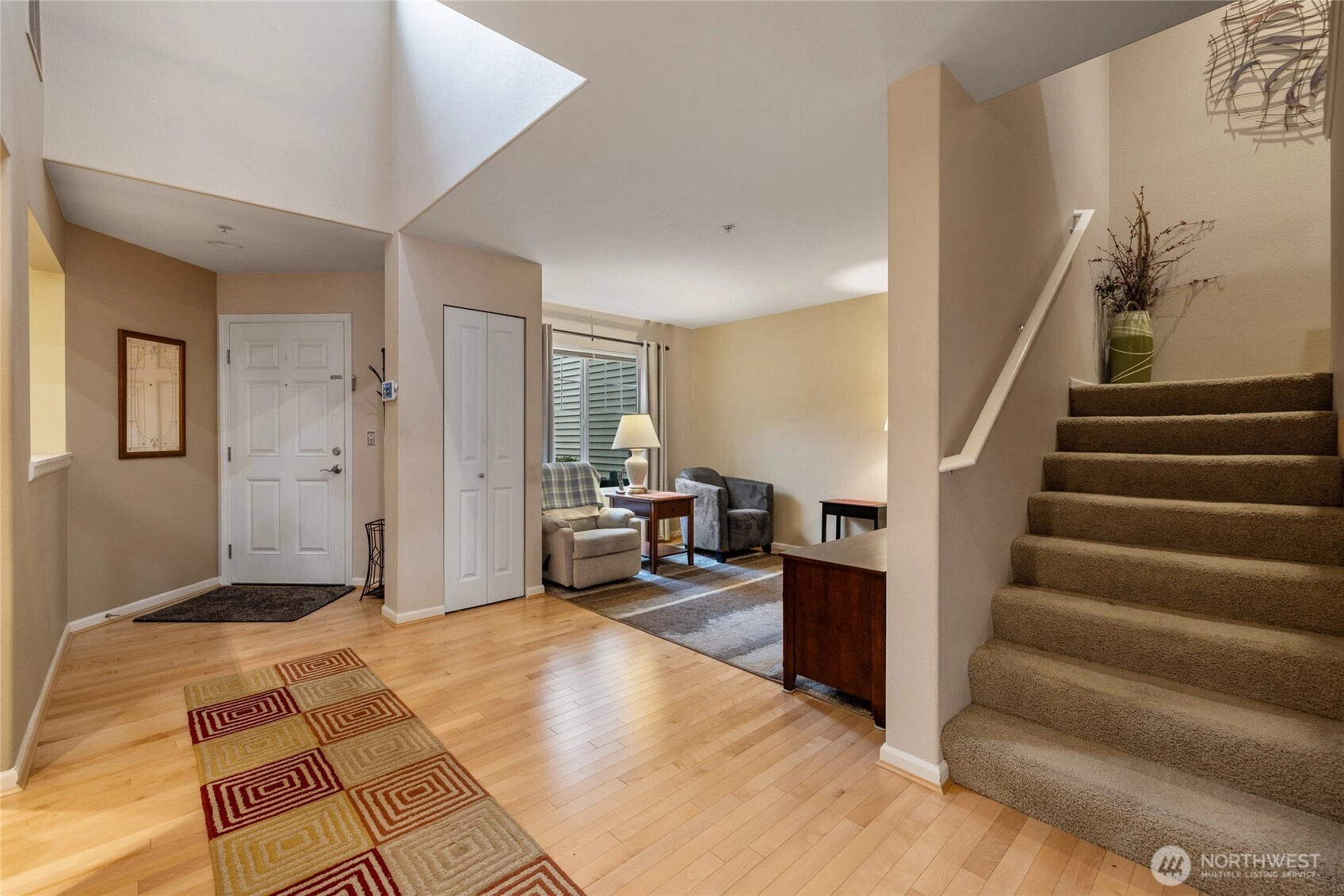 Welcome to the highly sought-after Madera community in Lakeland Hills. This beautifully maintained 2-bedroom, 2-bath home offers privacy, comfort, and abundant natural light with stunning southern-facing windows that allow sunshine to pour into the main living spaces.The open-concept main level features vaulted ceilings, light wood floors, and a cozy fireplace that anchors the living and dining areas. The kitchen is appointed with granite countertops, stainless steele appliances, warm wood cabinetry, and a sunny breakfast nook perfect for morning coffee. The spacious main-floor primary suite offers vaulted ceilings, a walk-in closet, dual sinks, and a walk-in shower, creating a peaceful retreat. Upstairs, you’ll find a generous second bedroom, full bath with double sinks, and a versatile loft area ideal for a home office, reading nook, or guest space. Step outside to a private patio backing to protected open space — perfect for quiet evenings and relaxing views. Enjoy carefree living in this gated community with HOA dues covering exterior building maintenance, lawn care, water, sewer, and security gate access. A two-car garage and walkability to Lakeland Hills shopping and dining complete the package. Light-filled, private, and beautifully cared for — this home offers easy living in an exceptional location.