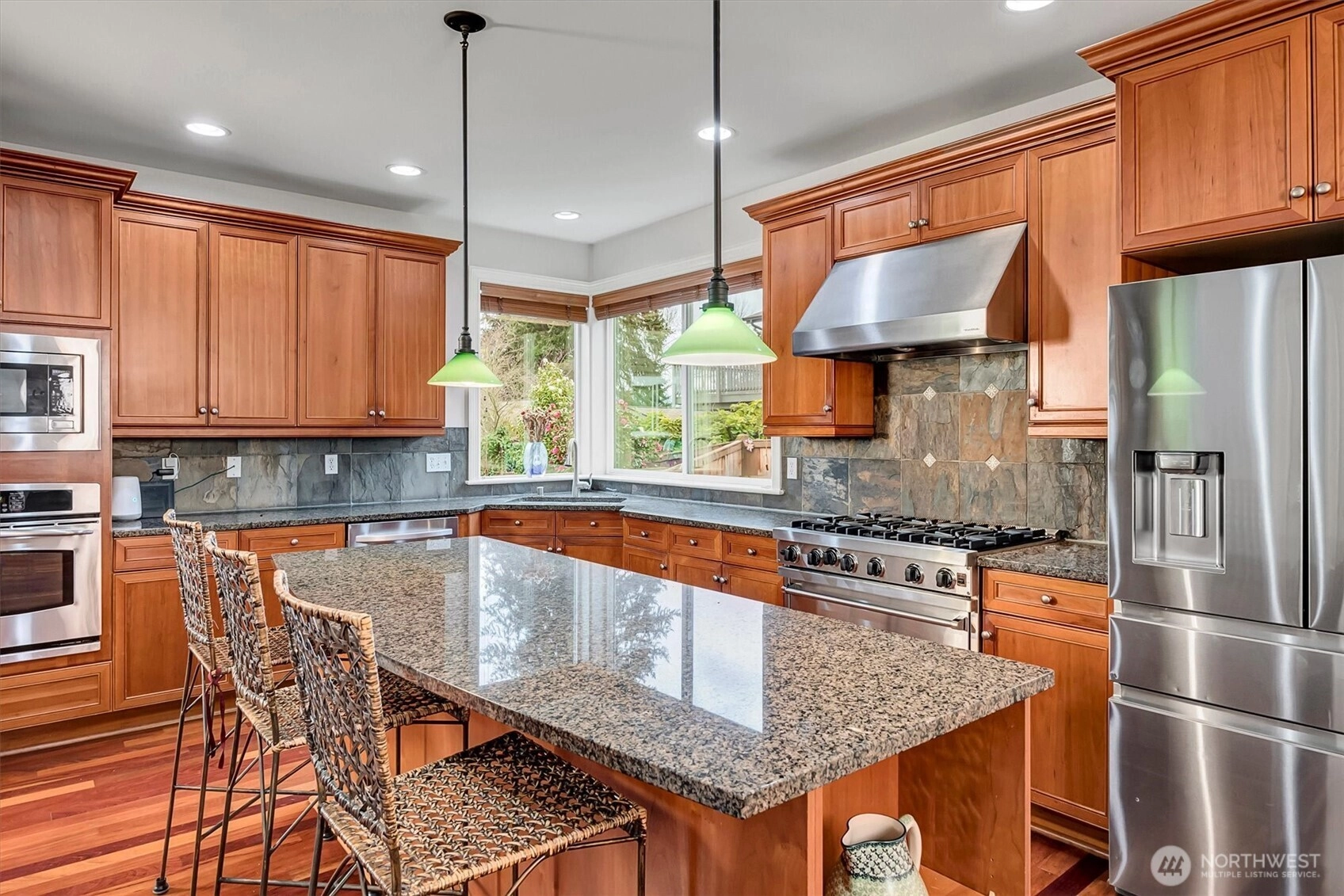 Welcome to exceptional East Bellevue living in this beautifully maintained residence that blends refined style with everyday comfort. The main floor showcases rich Brazilian hardwoods, a formal dining room, & an expansive great room that flows into a chef ready kitchen appointed with cherry cabinetry, premium appliances, granite countertops, & elegant finishes. Main floor also entertains a spacious private office. Upstairs, the home’s thoughtful design continues with 3-spacious bedrooms, a shared full-size bathroom, a Primary bedroom & 5-piece bathroom with walk-in closet, a versatile bonus room, and a dedicated laundry room, offering an ideal mix of private retreats & shared spaces. From the great room, step outside to a level backyard featuring an expansive deck & lush, mature landscaping, creating a private oasis perfect for entertaining or unwinding in nature. Home features a large 760 sq-ft 3-car garage with overhead storage. Situated in one of Bellevue’s most desirable neighborhoods, the home provides exceptional access to major highways & main arterial streets, upscale shopping & dining, lake recreation, parks, & the beloved Lake Hills Farmers Market. Bike trail access blocks away. Less than a 10-minute drive to downtown Bellevue & 15-minutes to Seattle, Issaquah, or Redmond. A rare opportunity to enjoy beauty, convenience, & sophistication in the heart of the Eastside. Don’t miss this opportunity to visit this home which will draw a considerable amount of attention.