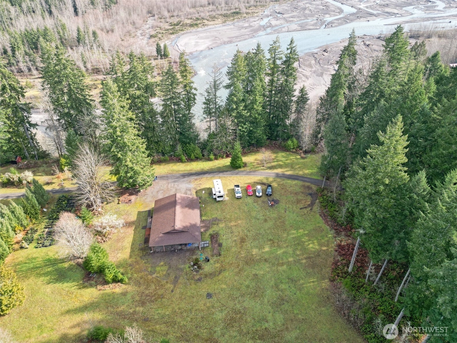 Stunning 20.83-Acre Retreat with Breathtaking Toutle River Views! Appraisal is done for (4) tax ids. Experience privacy, wildlife, and a peaceful natural setting on this rare 20.83-acre property featuring four parcels, ideal for multi-generational living. The main daylight ranch home offers a modern gourmet kitchen, 5 bedrooms, 3 bathrooms, two wood-burning fireplaces, and a second kitchen on the lower level with separate access—perfect for extended living or guests. An attached 2-car garage adds convenience. A detached 3-car garage includes ADU; one-bedroom, one bath, laundry, open living space with kitchen and workshop, providing flexible options for hobbies, home office, or additional living quarters. Private access throughout the property invites endless possibilities to create your own retreat. Don’t miss this extraordinary opportunity!