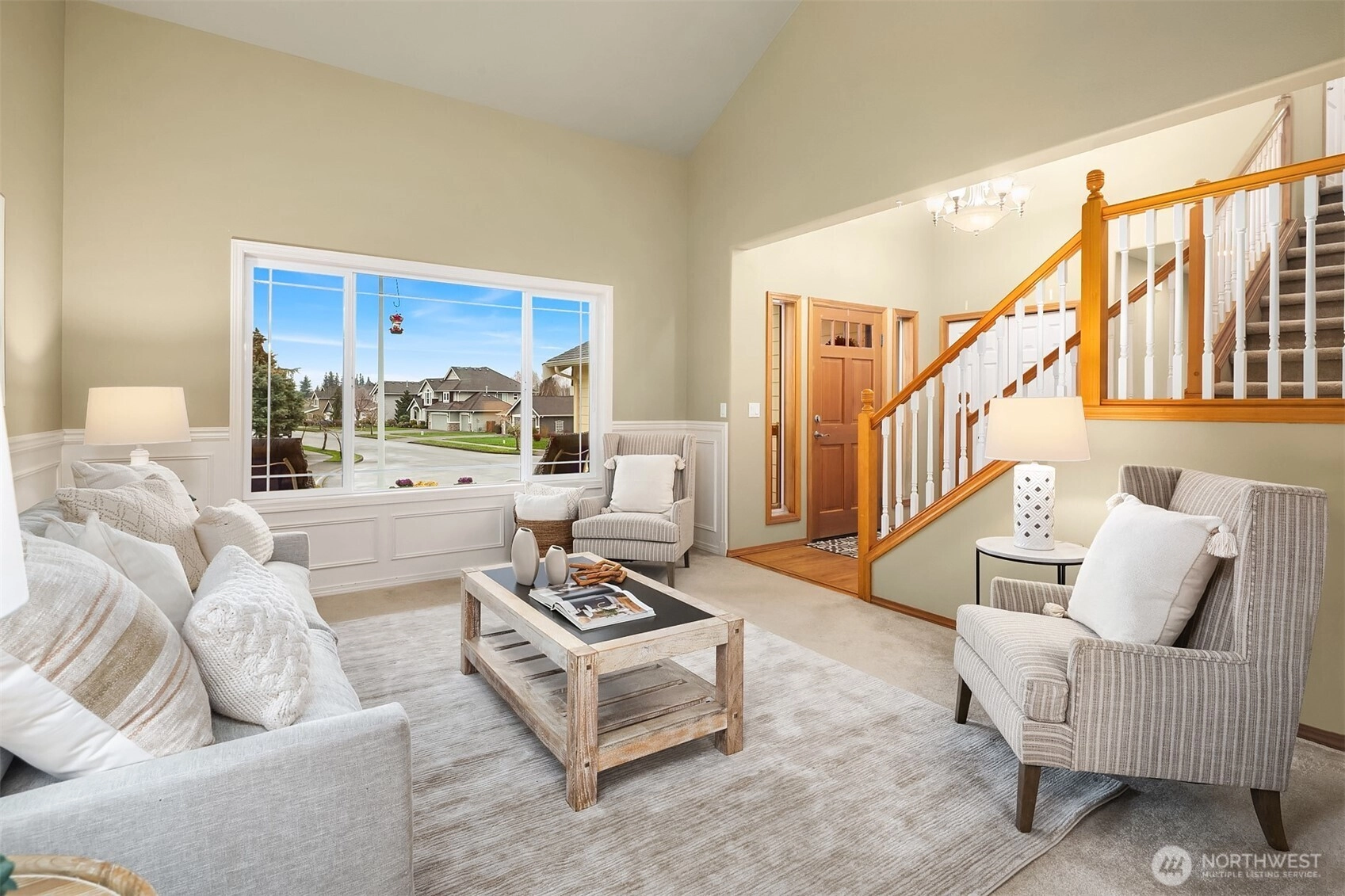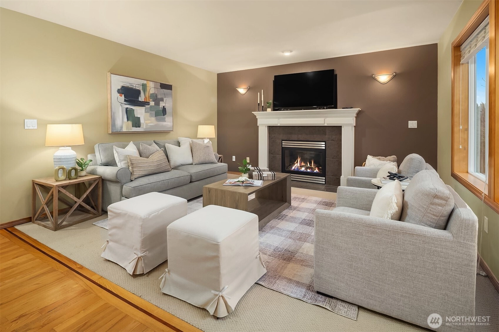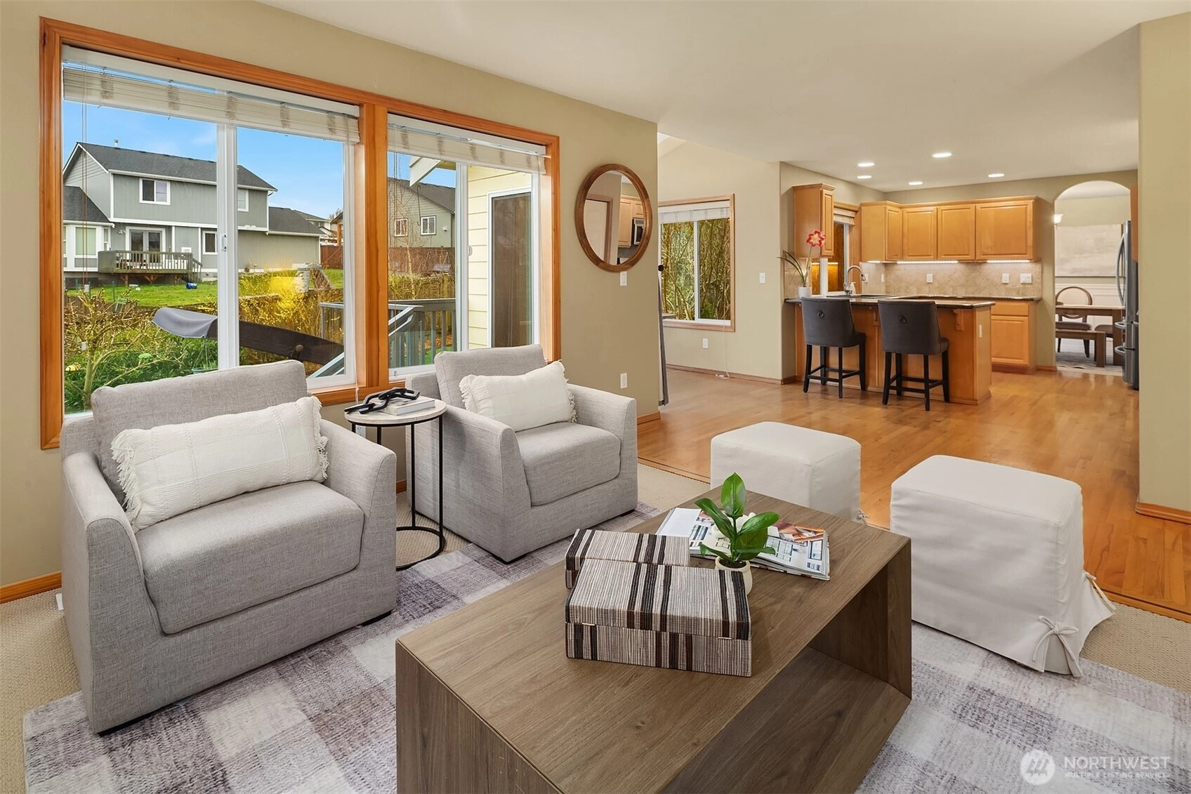Welcome to this inviting home in Stanwood's sought-after Nordic Landing community. Thoughtfully designed with a functional layout and lots of natural light, the main level offers multiple living spaces and a first floor bedroom - perfect for guests or a home office. The open kitchen flows seamlessly into the dining and living areas, creating a comfortable open setting for everyday living and entertaining. Upstairs, the spacious primary suite provides a relaxing escape, while the additional three rooms offer plenty of space for everyone. Thoughtful upgrades throughout the home include a whole-house water filtration system and exceptional storage solutions. The oversized three car garage is a standout feature, complete with dedicated workbench areas, custom shelving, and a massive attic loft providing an impressive amount of additional storage space. Outside, the beautifully maintained garden is truly special, featuring mature fruit trees including cherry, pear, apple and plum, along with grapes and blueberry bushes. Seasonal blooms from lilacs, hydrangeas, lavender, and roses create a vibrant and peaceful outdoor setting to enjoy throughout the year. Located in a quiet neighborhood with convenient access to schools, shopping, and commuting routes, this home offers a wonderful balance of comfort, functionality, and outdoor charm.