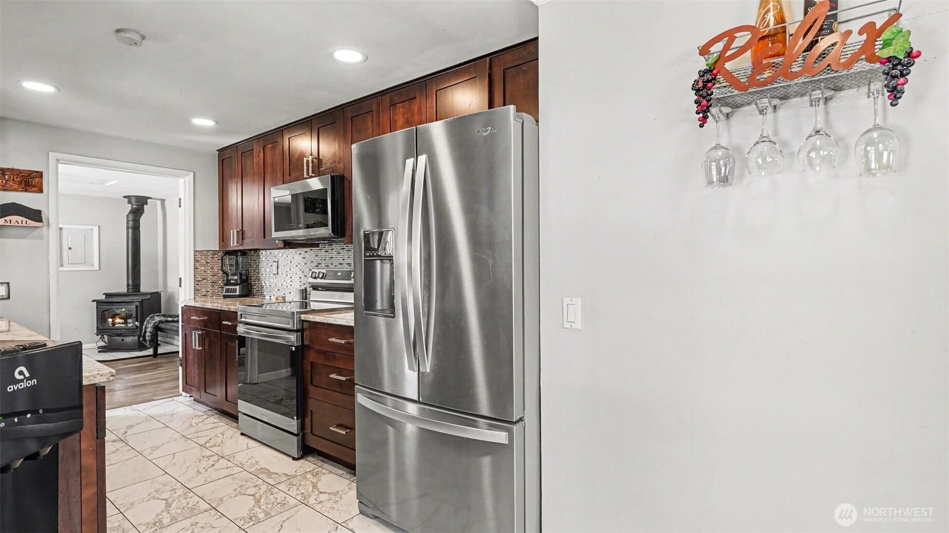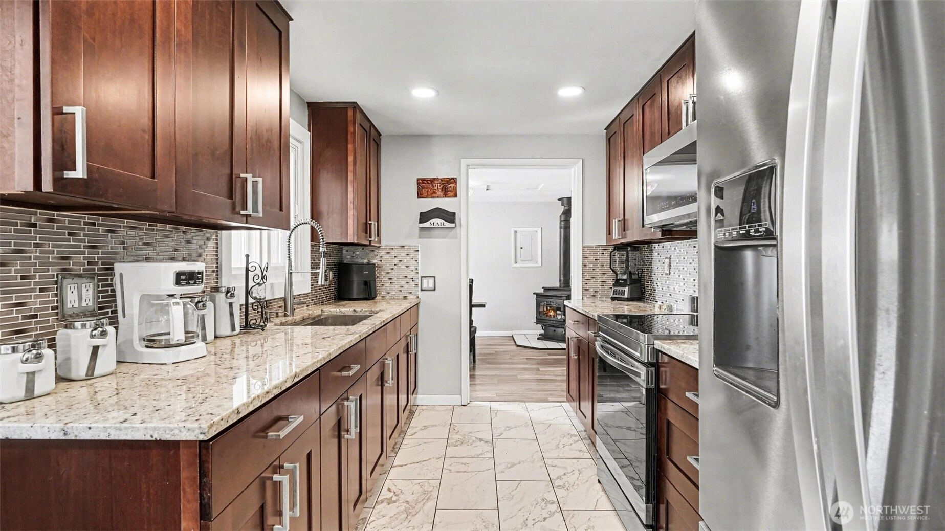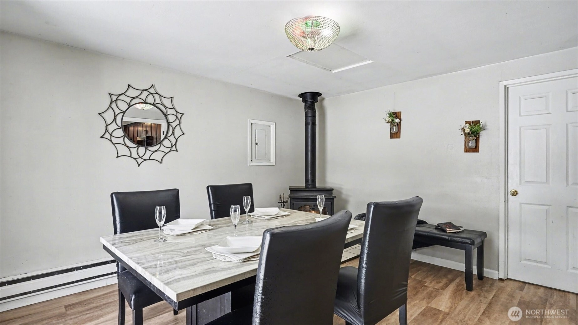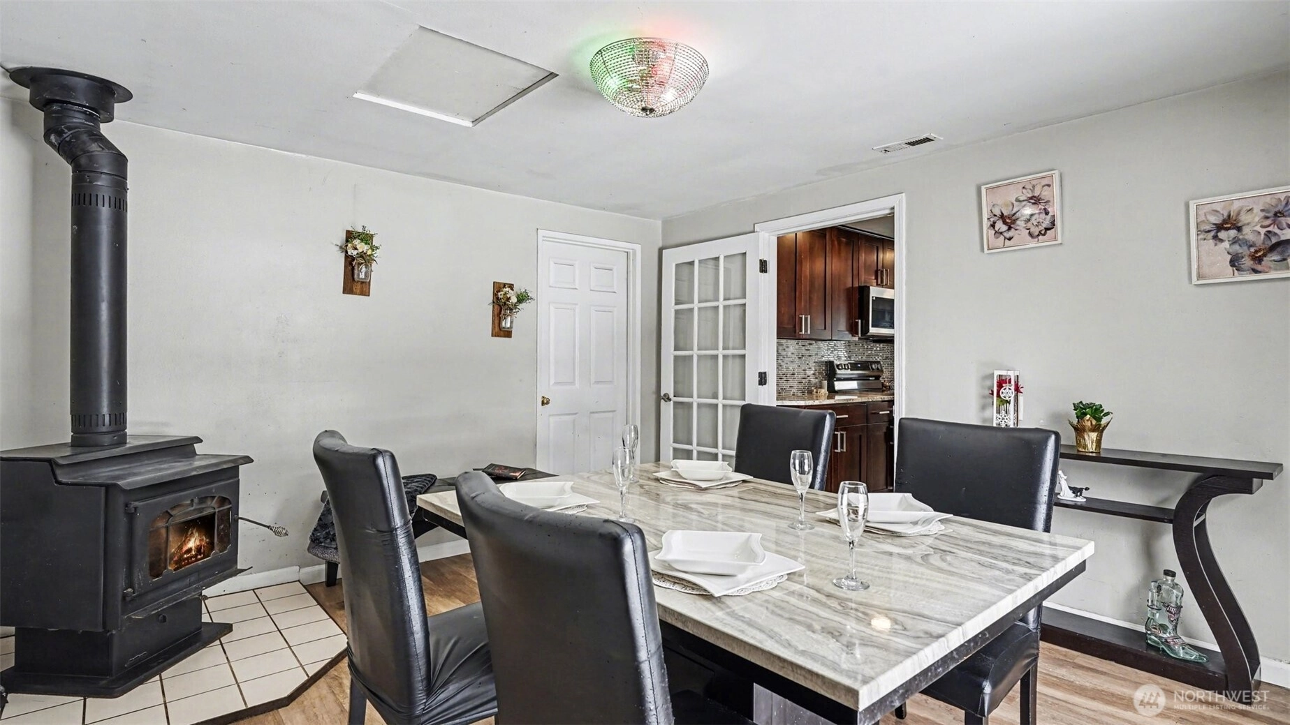 Welcome home to this charming property in SeaTac! This inviting residence features 3 bedrooms plus a den that could easily serve as a 4th bedroom. Enjoy a spacious family room with a cozy freestanding fireplace and durable laminate flooring throughout.The home offers both gas and electric heat and provides approximately 1,380 square feet of living space, situated on a desirable corner lot. Built in 1954, the home showcases unique character and charm, complemented by some fresh interior paint.A versatile multi-purpose room includes a sliding glass door and a warm wood stove, creating a comfortable space for relaxation or hobbies. The kitchen features Granite countertops and original wood cabinetry ready to be refinished to your taste.Additional highlights include a huge laundry room, a large, fenced backyard, and mature landscaping behind the property that provides added privacy.Conveniently located just minutes from the marina and Lumen Field, this home offers easy access to recreation, entertainment, and commuter routes.