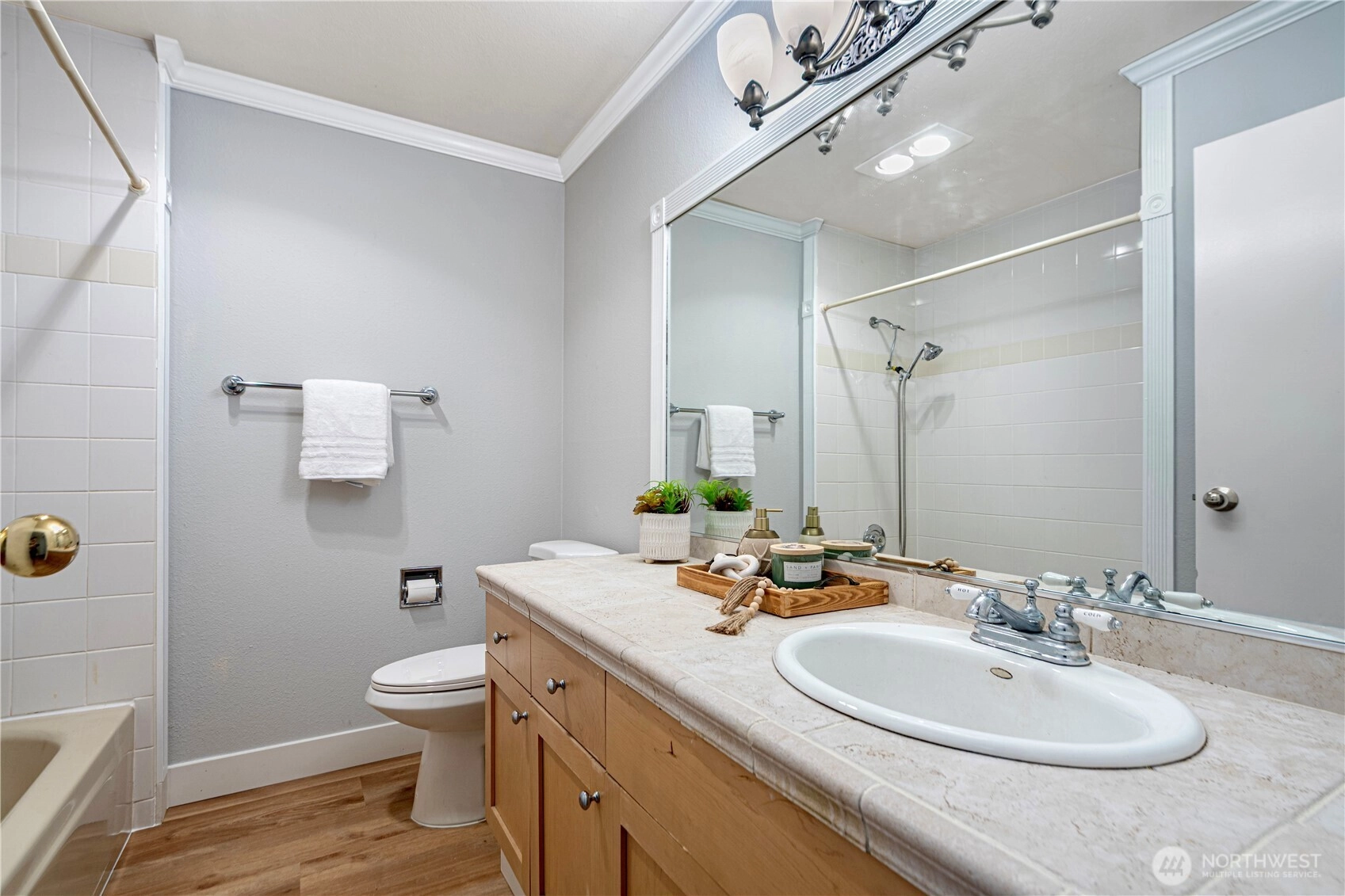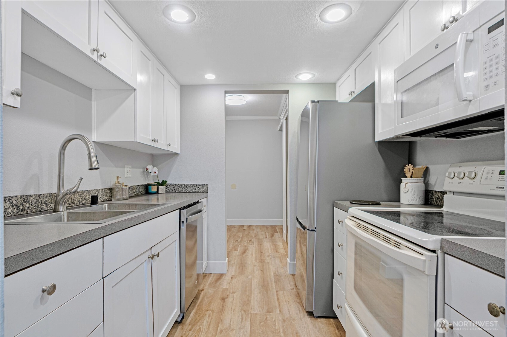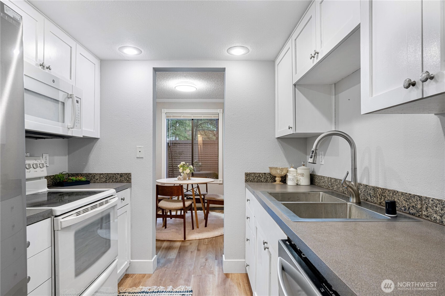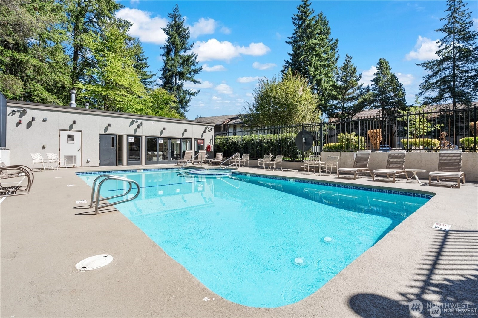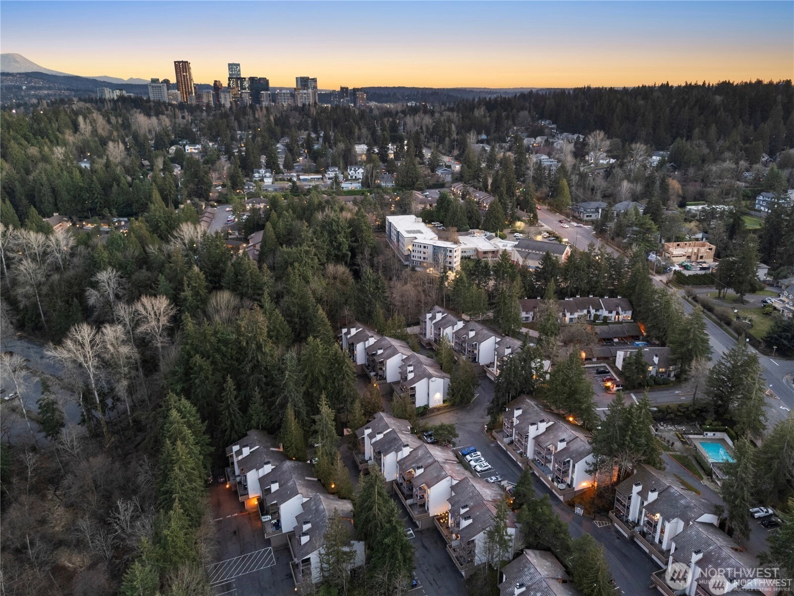 Welcome to The Ridge Bellevue. Updated 2 bed/1.75 bath, home features a modern kitchen w/white cabinetry, new stainless steel fridge and dishwasher;open pass through to the dining area. Enjoy the large covered deck, cozy fireplace, fresh interior paint/brand-new vinyl flooring throughout. The primary suite includes an en-suite shower. New in-unit washer /dryer. Two designated parking spaces (one near the entry and one covered carport space w/ large storage). Community amenities include a pool &cabana. No rental cap. No special assessment. Well-managed HOA.Convenient to Hwy 520, Bellevue Square, and major campuses. Clyde Hill Elementary, Chinook Mid School &Bellevue High. Move-in ready. Rare opportunity for top school living and investment.