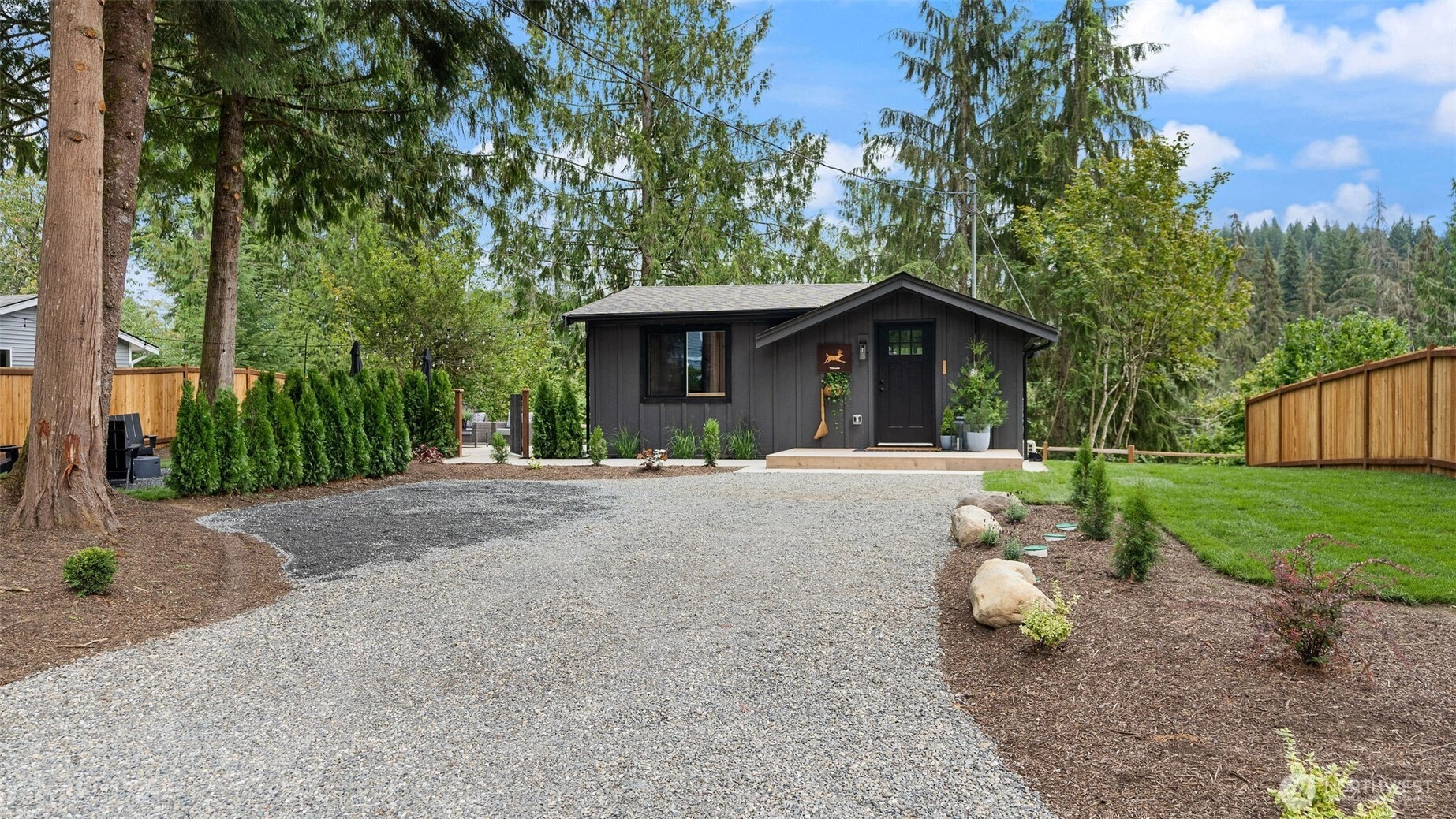 Charming 1-story home in the Beautiful Canyon Creek community of Granite Falls. This completely refurbished 1-bedroom, 1-bath home features an updated kitchen with black quartz countertops, new cabinets, and appliances, plus new LVP flooring throughout. The beautifully redone bathroom includes a walk-in shower, new vanity, and tile floors. Major improvements include a new roof, new ductless minisplit, siding, decks, and a recently upgraded 2-bedroom septic system. Outdoor space is perfect for relaxing with a cozy deck, fire pit area, and a gazebo covering a hot tub on a cement patio. Surrounded by lush evergreens with beautiful mountain views and just a short distance from the neighborhood’s private riverfront park along Canyon Creek. Conveniently located just minutes from downtown Granite Falls and the perfect getaway with ample amounts of activities close by like kayaking, fishing, hiking, climbing, and more.