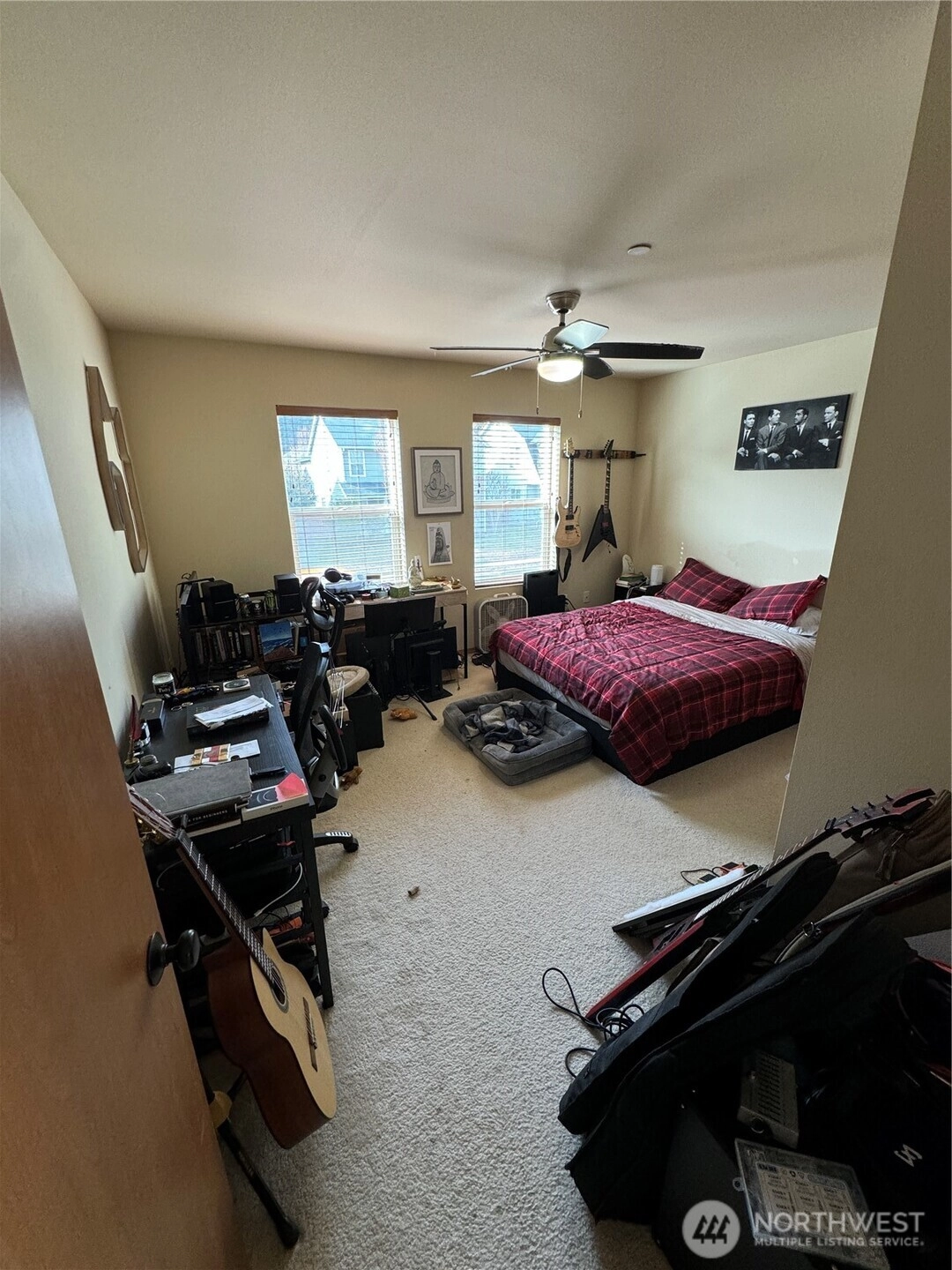 DuPont Home with great location facing private space / golf course. Front porch / sitting area leads you into the 2332 Sq Ft with 3 bed 2.5 bath with bonus loft. Separate living room / dining area. Open kitchen with island with seating area, stainless appliances with gas range! Opens up to family room with gas fireplace. Primary suite with 5 piece bath, soaker tub and large walk in closet. Additional features include A/C and large ceiling fans. Owner is in the process of repairing the siding.