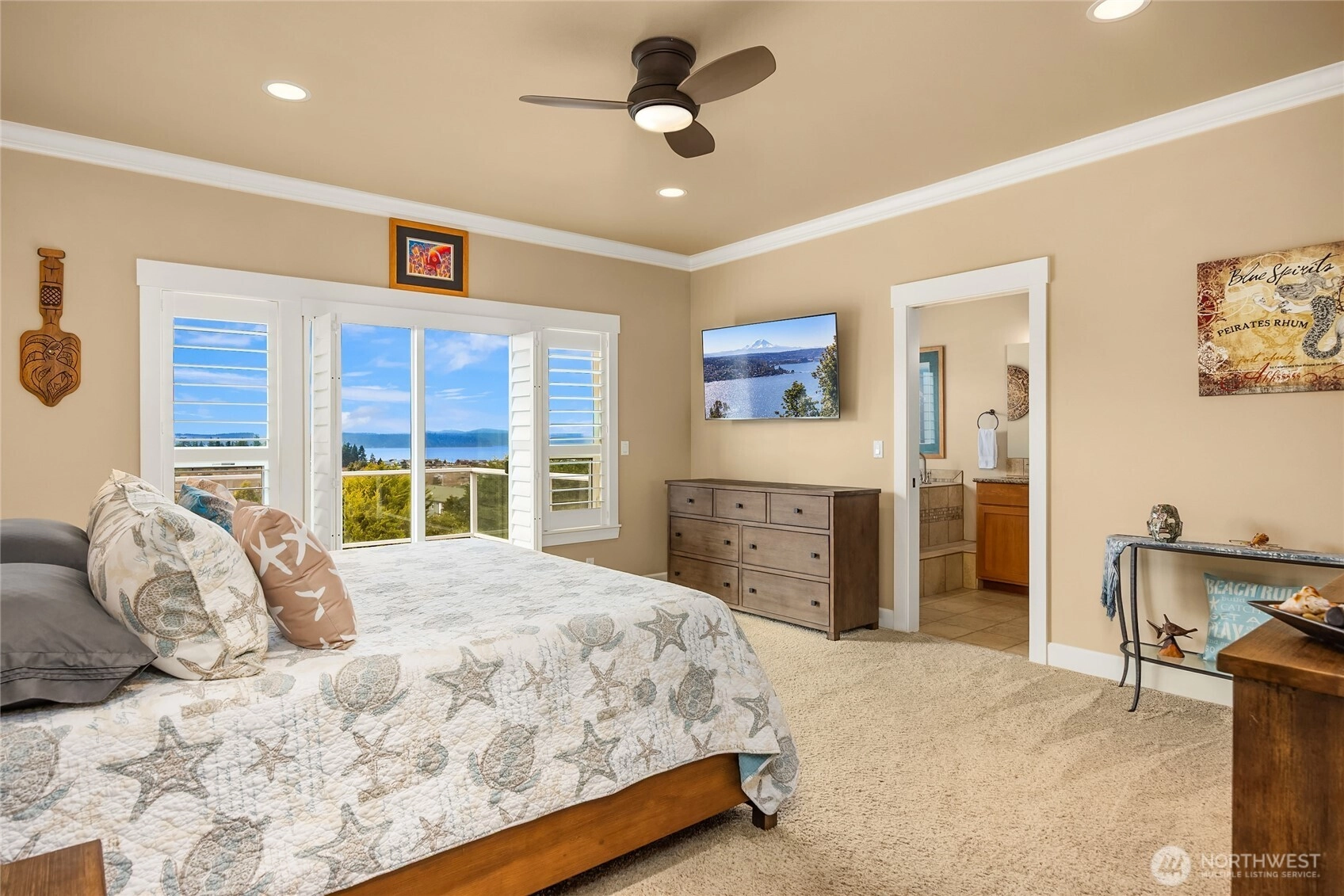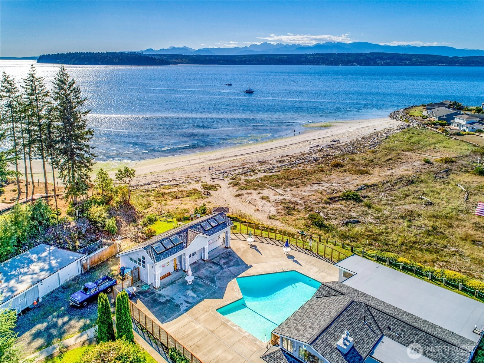 Sweeping west-facing Olympic Mountains and Hood Canal views set the stage for this custom-crafted home in the Driftwood Key community of Hansville. Designed to capture the scenery, the great room and dining area open to an expansive 576-sf deck with a motorized retractable awning, perfect for enjoying sunny afternoons and unforgettable sunsets. Quality finishes are found throughout, including cherry cabinetry and floors, granite countertops, detailed millwork, and custom built-ins. The well-appointed kitchen features a propane range, generous walk-in pantry, and excellent workspace for cooking and entertaining. The main-level primary suite offers a peaceful retreat with a luxurious bath. A fully finished daylight lower level provides exceptional flexibility with a spacious family room and additional rooms ideal for guests, hobbies, or multi-generational living. Located near Hansville Greenway trails and just moments from Driftwood Key’s marina, beach, clubhouse, pool, and other sought-after community amenities. Experience the natural beauty and relaxed coastal lifestyle that make Hansville so special.
