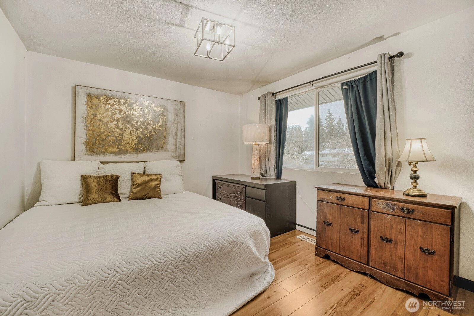 Multi-generational home in a corner lot located in the Milton area. 2 kitchens, 2 laundry areas, 2 water heaters, make this property unique. 2023 new roof. The open concept in the upper level offers ample kitchen with plenty cabinets, custom backsplash, sleek countertops, newer stove, high-end finishes plus room to entertain your guests, giving you access to the upper back deck. Main suite with walking closet and private full bathroom and 2 more bedrooms. MIL apartment in the lower level with its own laundry room, 1 bedroom with a huge closet, 3/4-bathroom, newer floors and water heather. 2 car garage plus almost 8 more parking or ARV parking. Shed for extra storage. Huge and fenced back yard.