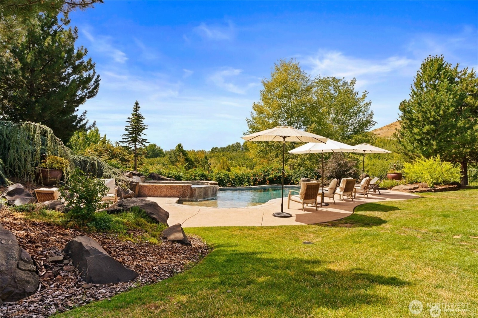 Welcome to an extraordinary luxury EQUESTRIAN estate. Nestled on 8.2 pristine acres surrounded by sunshine, orchards, and commanding views of Mt Adams. Vineyards and fine dining nearby. You will appreciate local artisan craftsmanship throughout the home, chef's kitchen w/butlers pantry, southern pecan floors & Montana stone accents. Start your day enjoying coffee in the east facing screened sun porch and end it gazing at the sunset overlooking the pool and Mt view. The pristine 6 stall barn with runs, heated tack room, wash area, and approx. 1400sf ADU are a delight for both you and your horses. The lighted, approx. 160x120 sand arena w/sprinklers is big enough for any discipline. Irrigated pastures allow for grazing spring through fall.