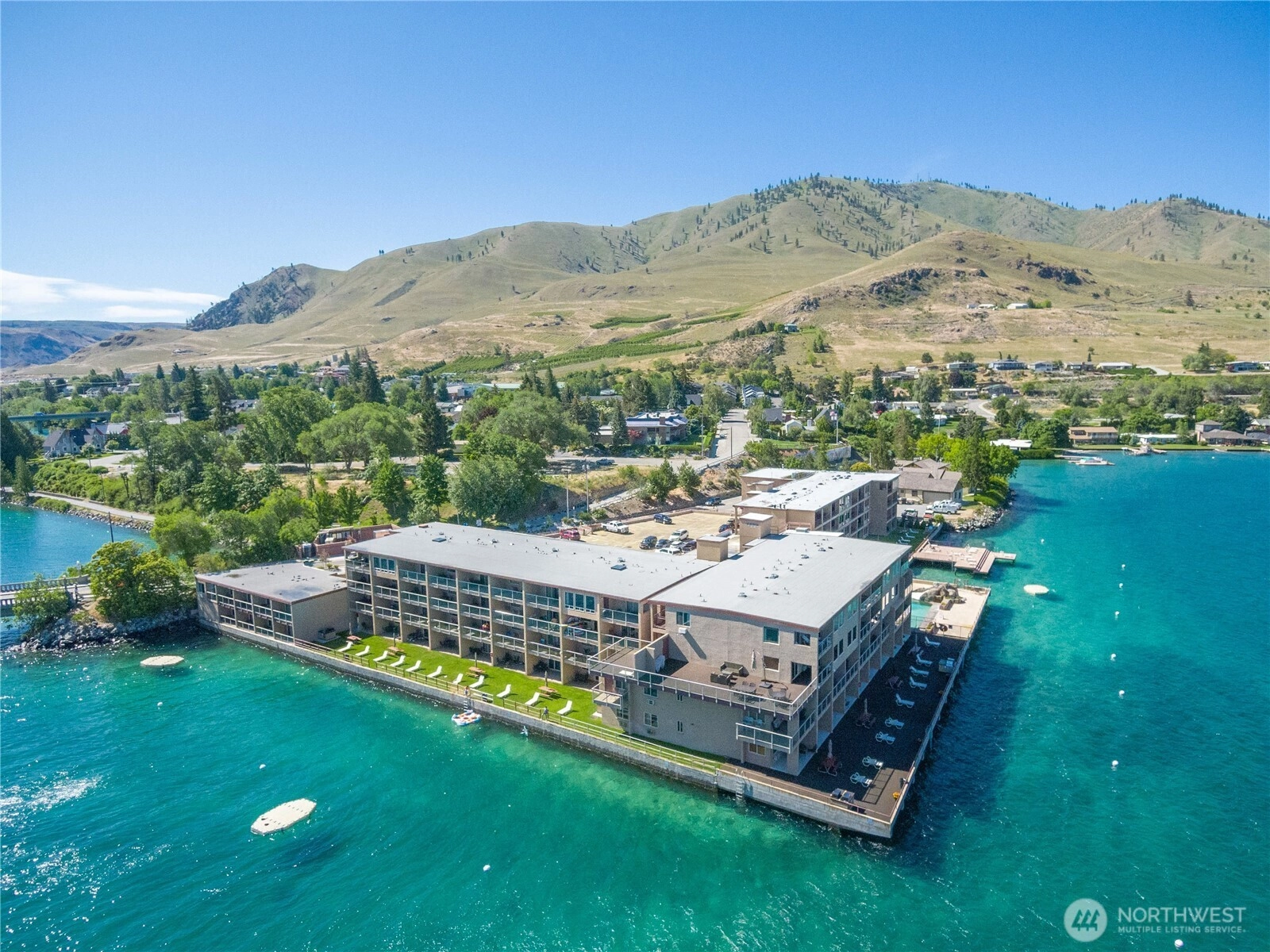 Experience the pinnacle of turnkey lakefront investing with this high-performing Lake Chelan retreat, a proven asset generating $43,000 in annual gross revenue as a self-managed short-term rental. As the largest one-bedroom floor plan in the complex, this meticulously maintained and fully furnished unit maximizes income potential by comfortably sleeping six guests thanks to a brand-new Murphy bed and sleeper sofa mattress. Recent premium upgrades—including luxury vinyl plank flooring, fresh interior paint, and a new refrigerator and curtains—ensure a modern, low-maintenance experience for owners and guests alike. The lifestyle appeal is unmatched, offering "walk-out" convenience where your private living space opens directly onto a sprawling lakeside lawn just steps from the water’s edge. This investment is primed for immediate equity growth, as three years of capital assessments have been fully paid to secure robust building reserves and fund an upcoming, value-boosting rooftop bar. Residents enjoy world-class amenities including a pool, spa, bistro, and private swim dock with guest buoys, all while benefiting from the ease of available on-site management. Perfectly situated within walking distance to downtown Chelan’s premier wineries and shops—and located directly on the new Chelan Trolley route—this premier unit represents a rare opportunity to own a high-yield, high-demand piece of the Lake Chelan shoreline.